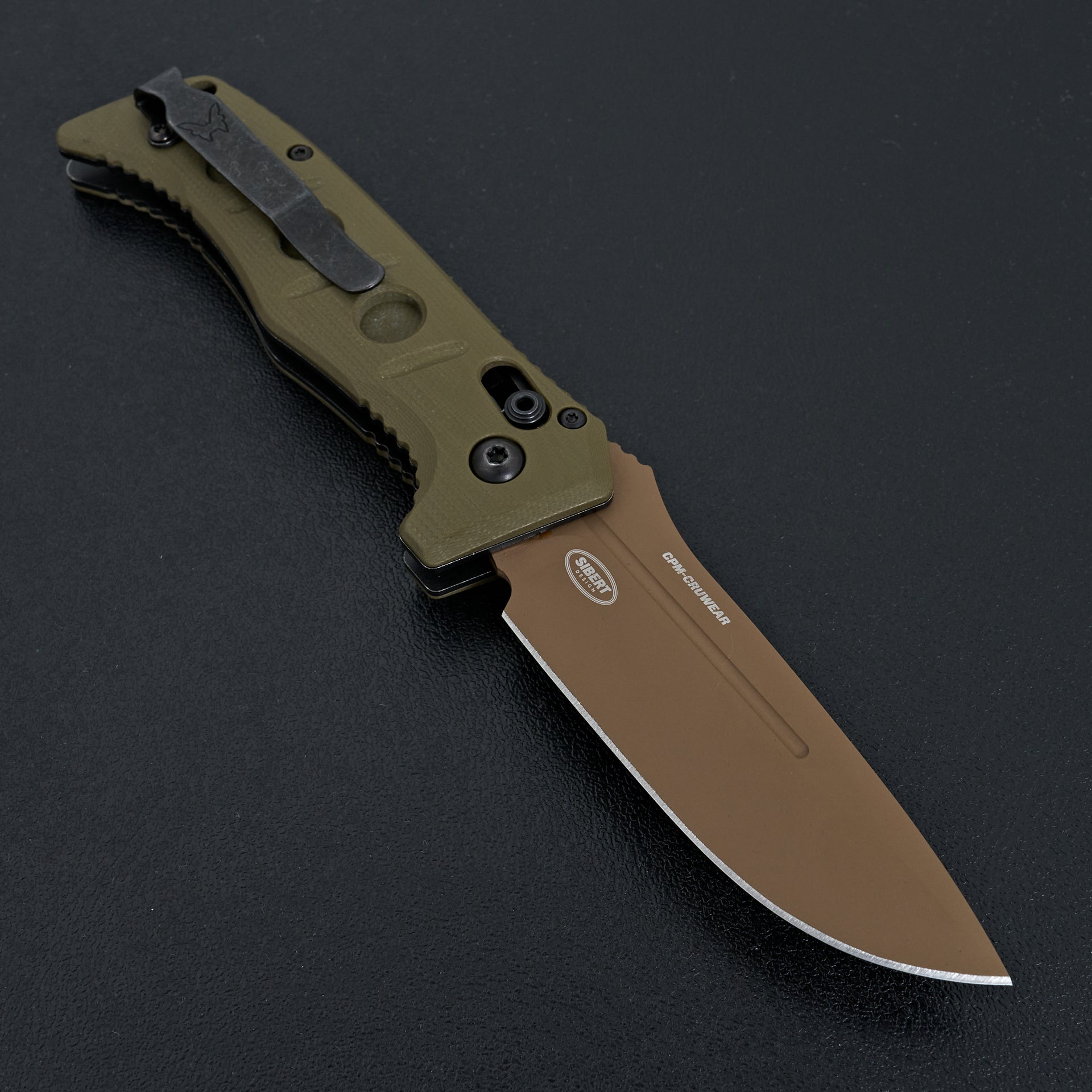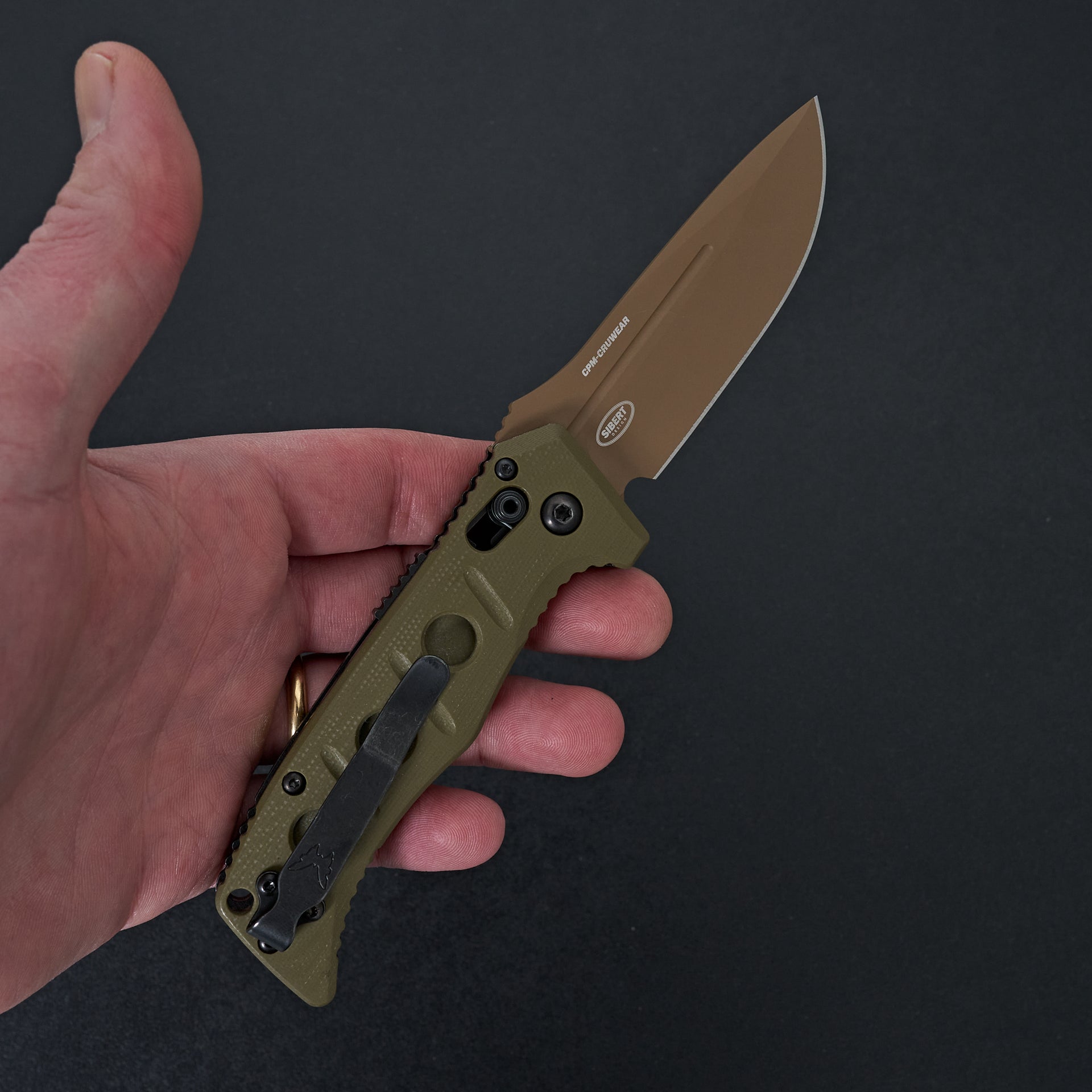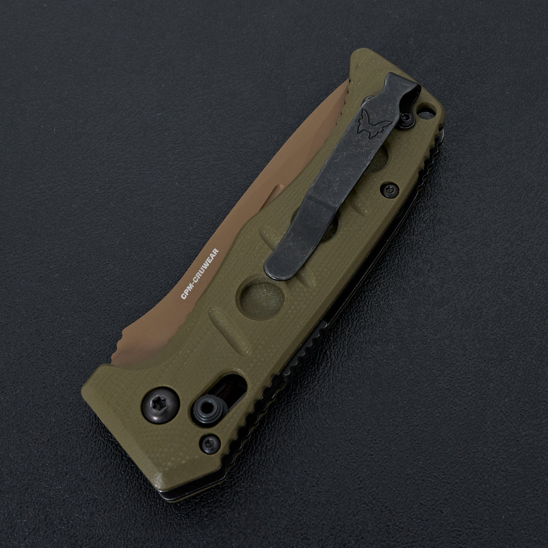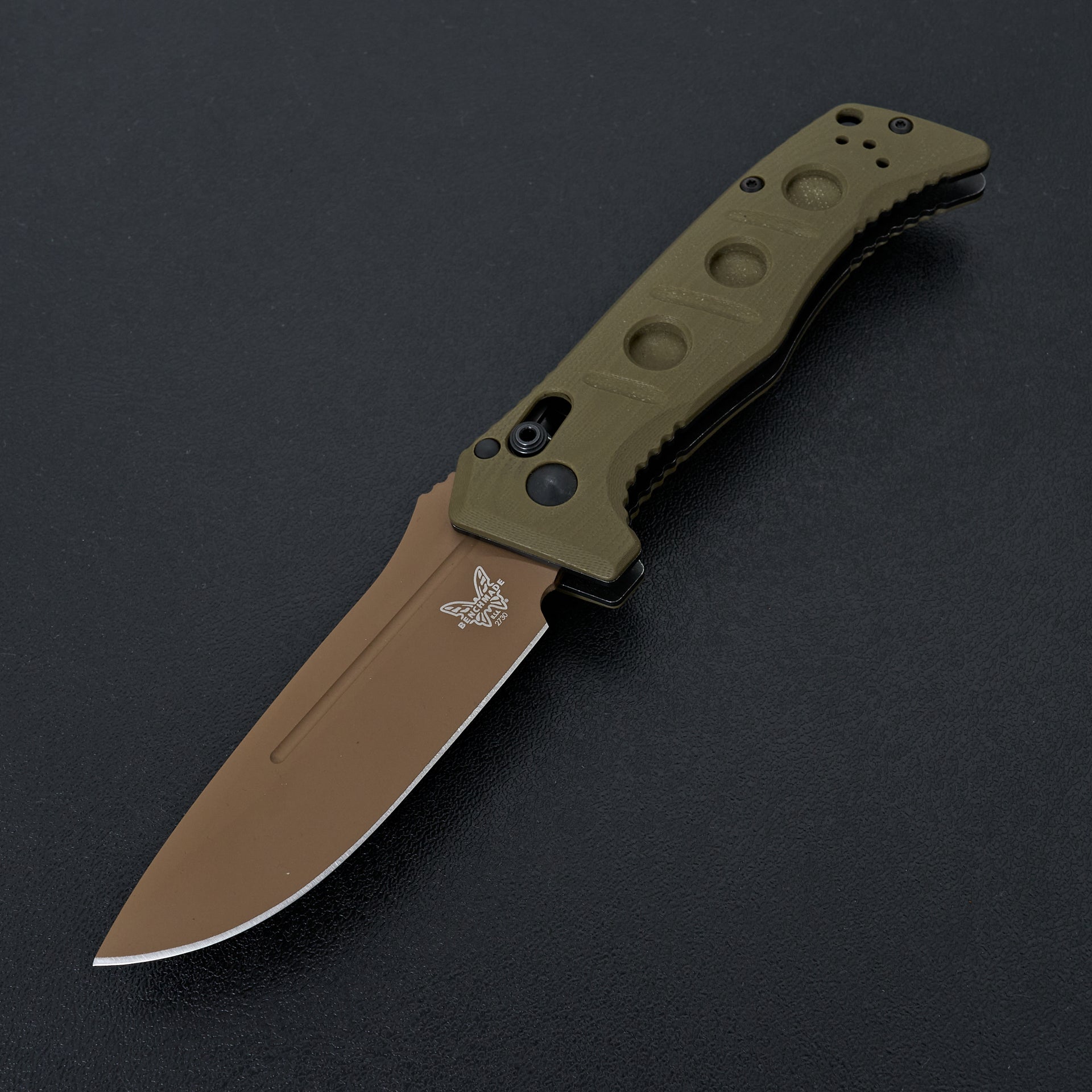 "Tank-like construction, mini form, and auto AXIS® lock. We felt like the wildly popular Adamas® Family needed an even smaller, lightweight variant of the versatile automatic workhorse — so we built one. With the same AXIS® Automatic mechanism and feel-it-in-your-palm firepower as its bigger brother, the 2730FE and 2730GY-01 Mini Auto Adamas® features a stout 3.10” drop-point blade in super-tough CPM-CruWear® steel. With a lightweight G10 handle in two different colorways — and able to fit in far more pockets for everyday carry than its full-size predecessor — this Mini Auto Adamas® is as mighty as mini gets."