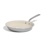 Designed for everyday cooking, our multi-purpose CeramiClad™ Frying Pans are compatible with electric, gas, and induction cooktops. With solid-but-light construction, and wall curvature, they’re workhorses for everything from sautéed vegetables to crisp-skinned seared fish, over-easy fried eggs, stacks of pancakes, and beyond. Unlike cheaper alternatives, they’re safe up to 550 degrees and feature a Stay Cool Handle™—ideal for dishes that start on the stove and get finished in the oven.