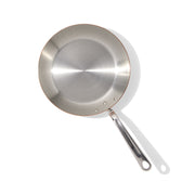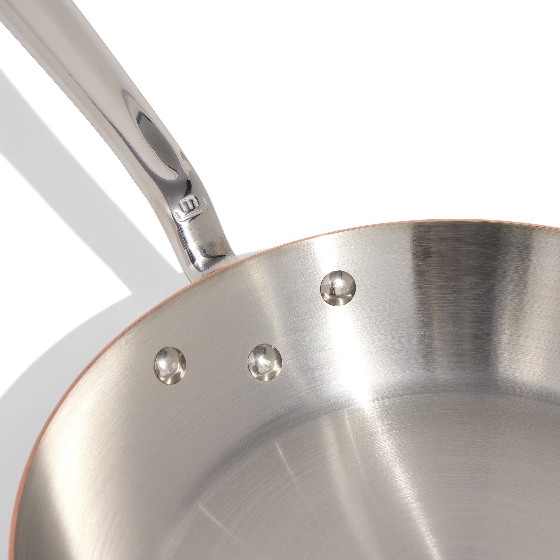 Ours is crafted in France and modernized with a Stainless Steel interior. Standard tin linings can’t tolerate high heat and require periodic retinning, but non-reactive Stainless Steel lasts indefinitely and can withstand temperatures twice as high. Thanks to this unique construction and the Frying Pan’s flared edge design, conductivity is at an all-time high—steam and moisture evaporate immediately, leading to perfectly even golden brown sears.