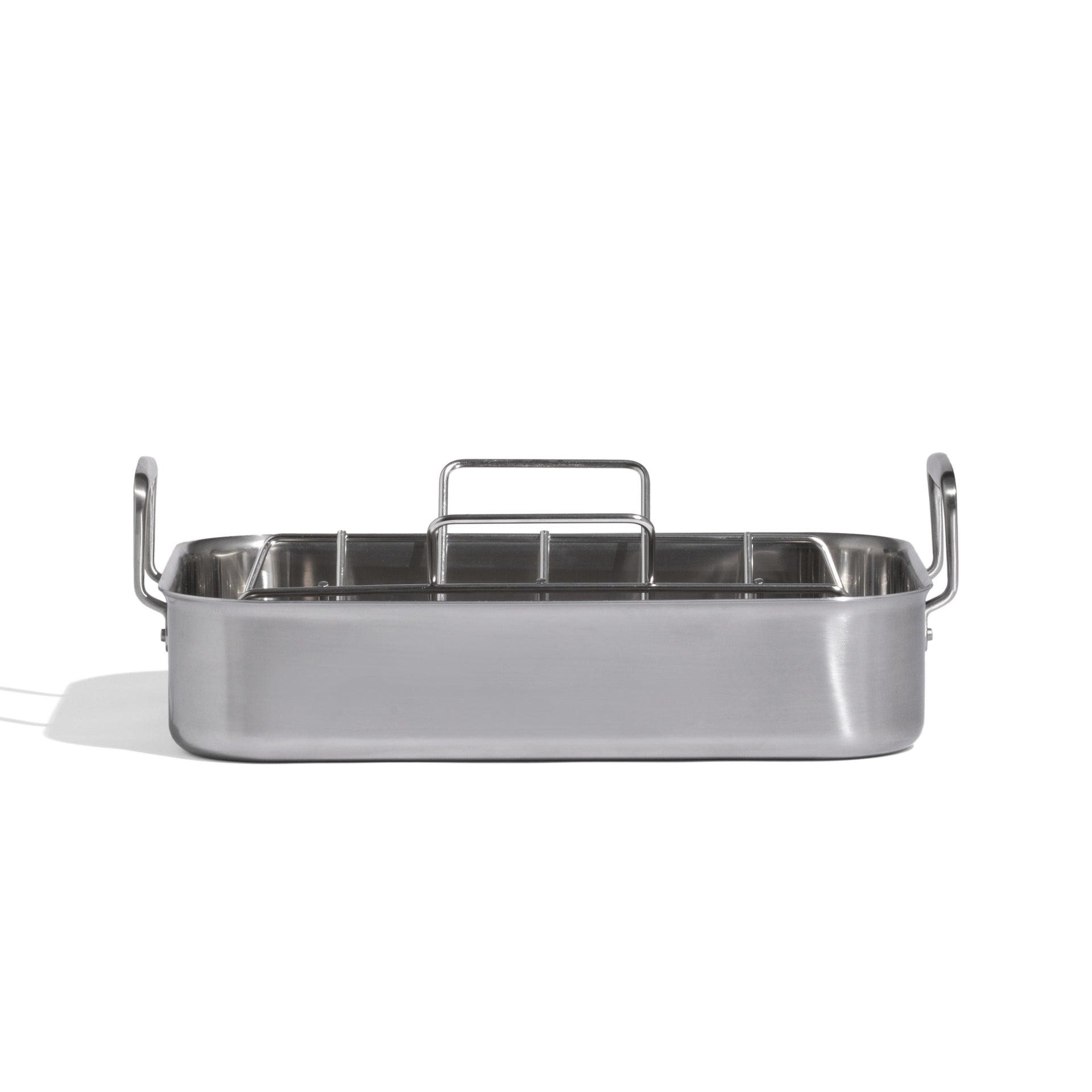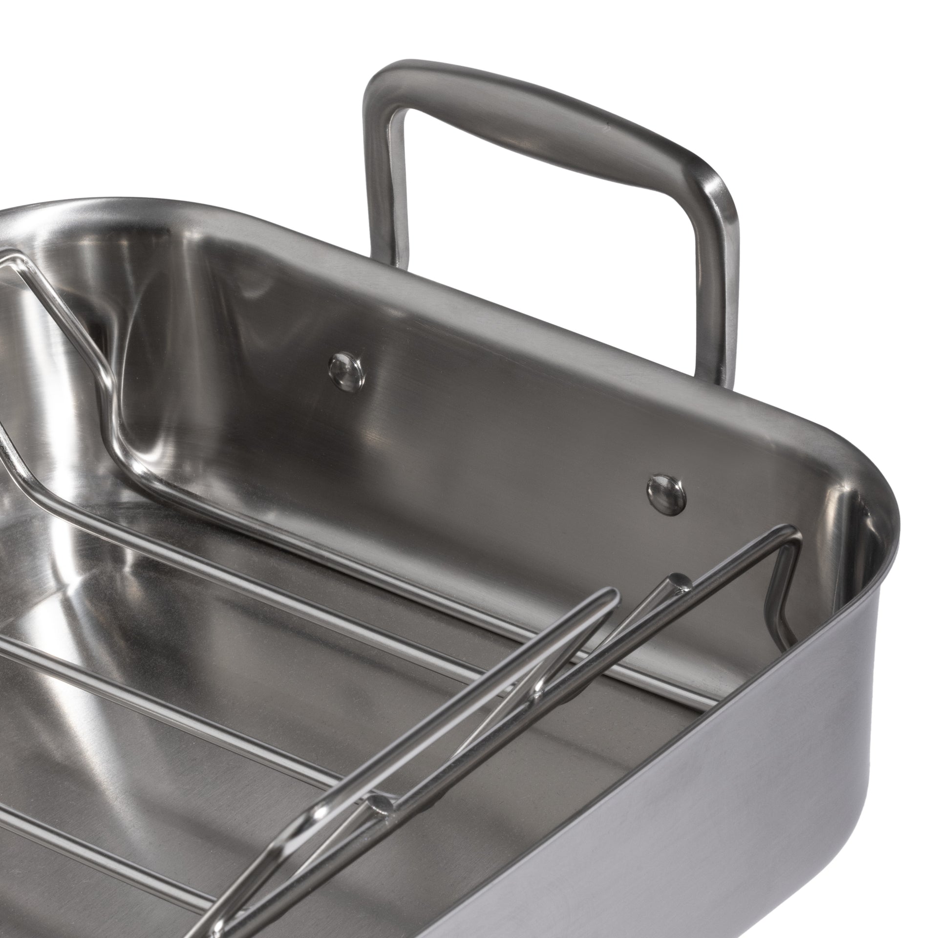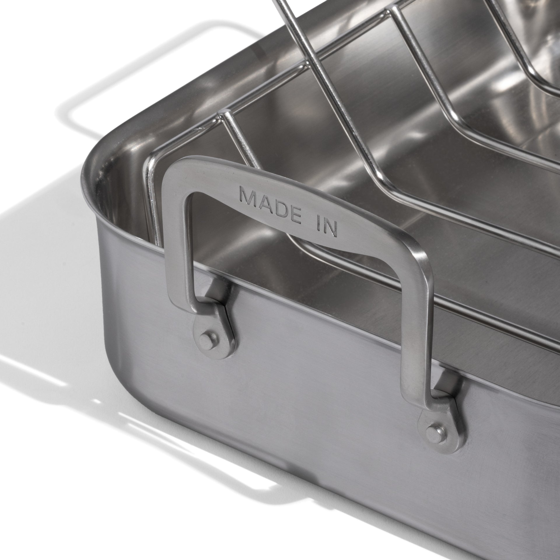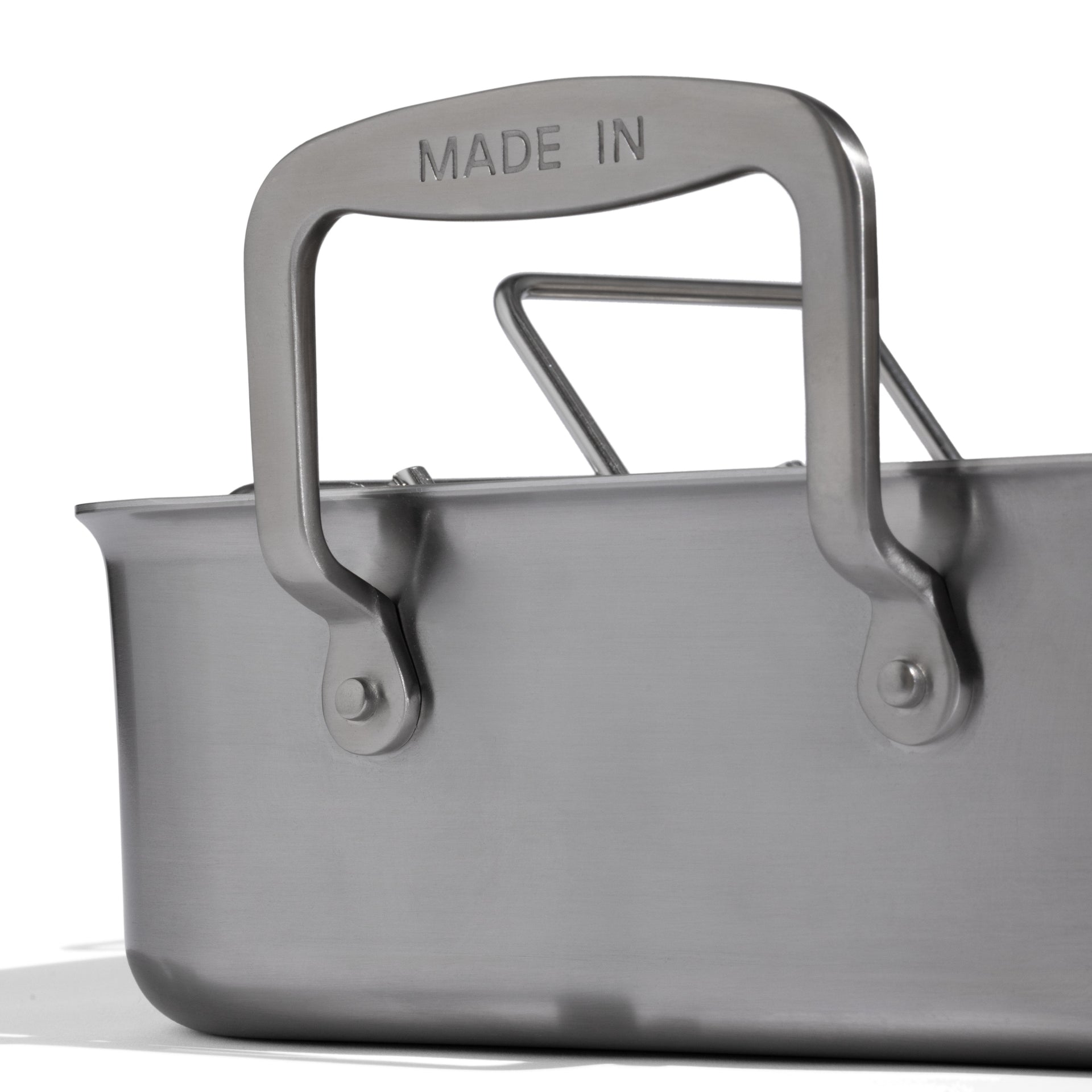 Made from super-conductive Stainless Clad, the Roasting Pan yields juicy, perfectly cooked proteins with evenly golden brown crusts. With a more lightweight 3-ply construction, the pan is also easier to carry from oven to table—even while holding an entire 24lb turkey.