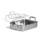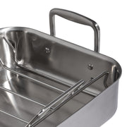 Designed to eliminate the most common turkey-roasting pitfalls, the Roasting Pan comes with a Stainless Steel Rack to elevate your bird or other protein, preventing it from getting soggy. A nonreactive, warp-resistant stainless steel interior is perfect for building sauces and gravies directly in the Roasting Pan, while specially designed handles allow the pan to be completely sealed with aluminum foil.