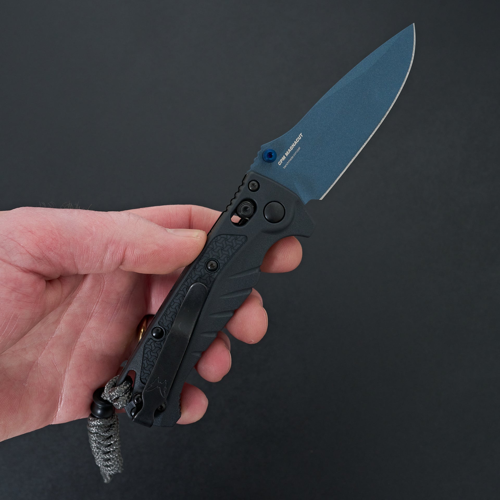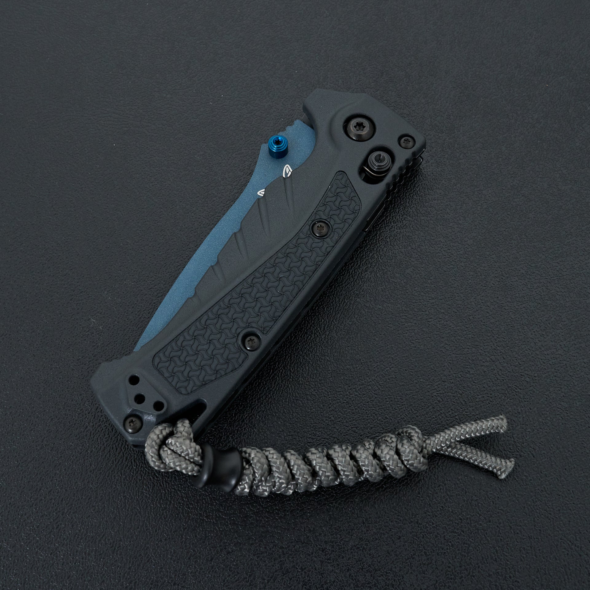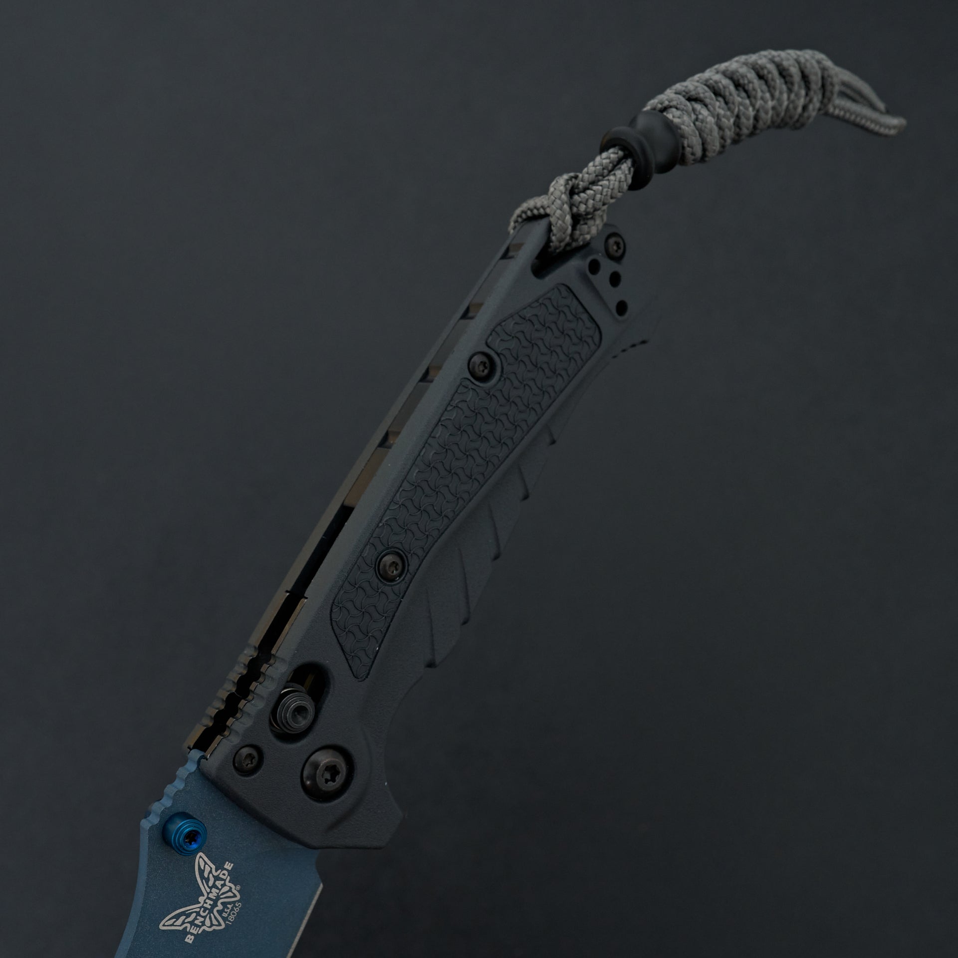 "Our hard-use, aquatic EDC known as the “angler's favorite folder” just got a refresh. Meet the 18065BT-01 Mini Adira™, a stealthier variant of the original, built for tasks on deck and off. Donning an understated tempest gray Grivory® handle paired with a pop of sapphire blue PVD on the thumbstud, the 18065BT-01 Mini Adira™ sports a nimble 3.0” drop-point blade made of CPM-MagnaCut stainless steel, now with an updated Cerakote® blue titanium blade finish. The charcoal gray paracord lanyard with black nylon bead provides a surface for faster drawing out of your pocket. Built with the same corrosion resistant AXIS® lock mechanism with stainless steel springs as the original, the new 18065BT-01 Mini Adira™ might be the coolest looking tool on the boat."
