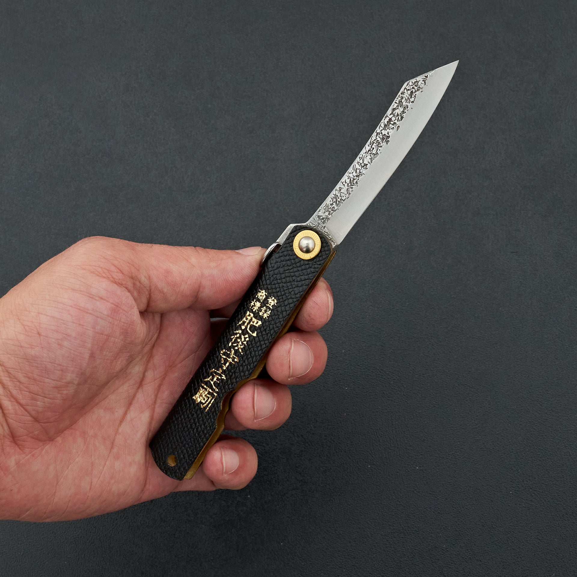 Higonokami VG10 Folding Knife Large Brass Handle (Leather)