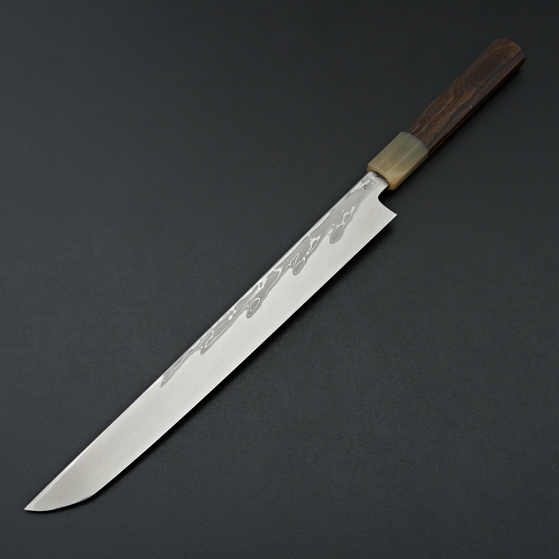 Hitohira Kikuchiyo Mosuke Kikko Blue #1 Yanagi Sakimaru 300mm Ziricote Handle (Saya) (Discounted)