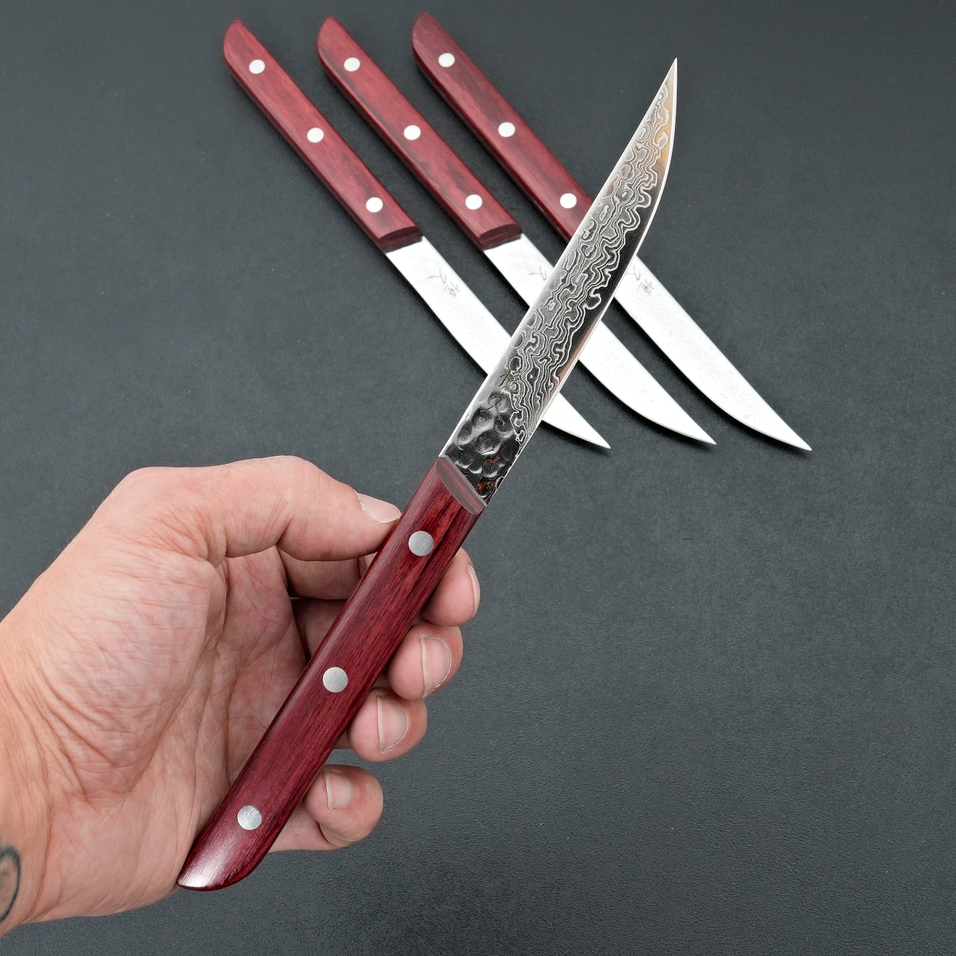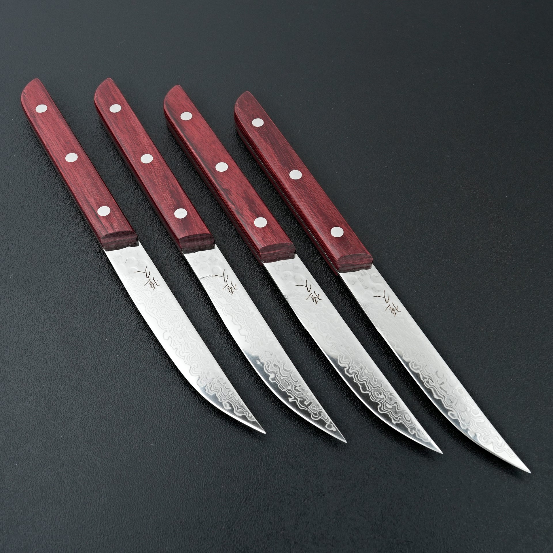 Tsunehisa AUS10 Damascus Steak Knives Red Handle