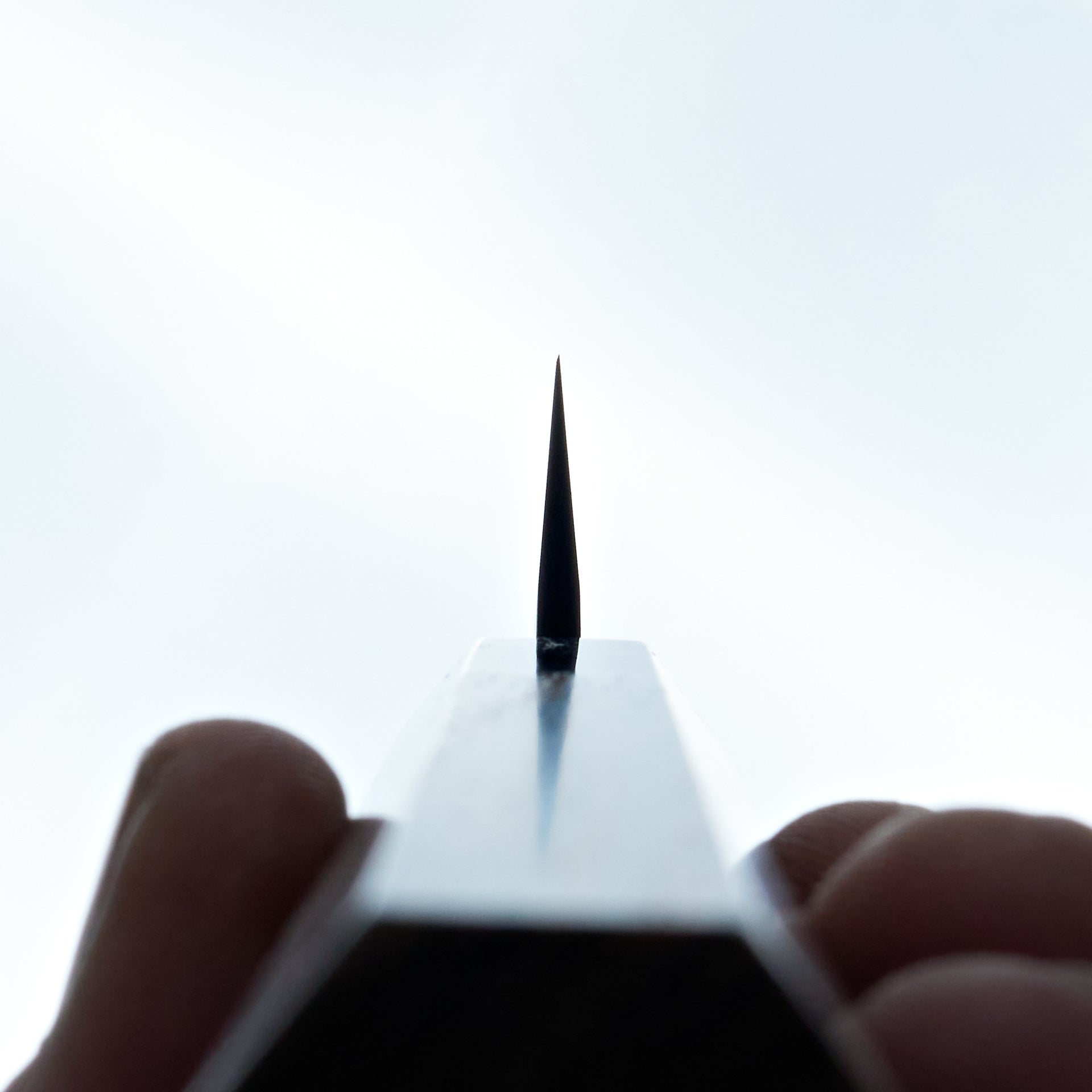 This series is hand forged from SLD semi stainless tool steel, laminated in a soft stainless cladding. SLD, though considered semi stainless, is quite easy to care for and very comparable to stainless in terms of upkeep. It has a high carbon content and high hardness (~64hrc) comparable to that of purer carbon steels. SLD is praised for great edge retention and good durability despite its hardness. The blade face is finished black with hammered tsuchime patterns. These come fitted with octagonal bocote and horn ferrule handles.