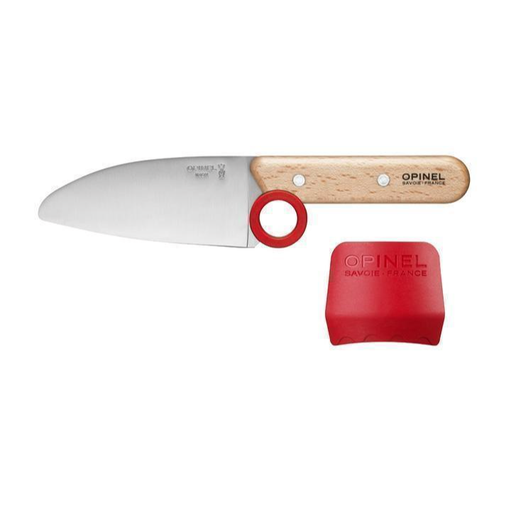 Ideal for curious young chefs eager to help in the kitchen, the Le Petit Chef collection is a beginner knife set designed to safely teach kids cutting and peeling skills they’ll use their whole lives! This duo keeps safety top of mind for little hands with a knife that features a rounded tip and educational ring to help position the fingers and prevent the hand from slipping onto the blade and a polymer finger guard to protect small fingers. The knife features a stainless steel blade and comfortable beech wood handle with a red polymer finger ring. These real kitchen tools are sharp - adult supervision is recommended when using the Le Petit Chef products. Made in Portugal.