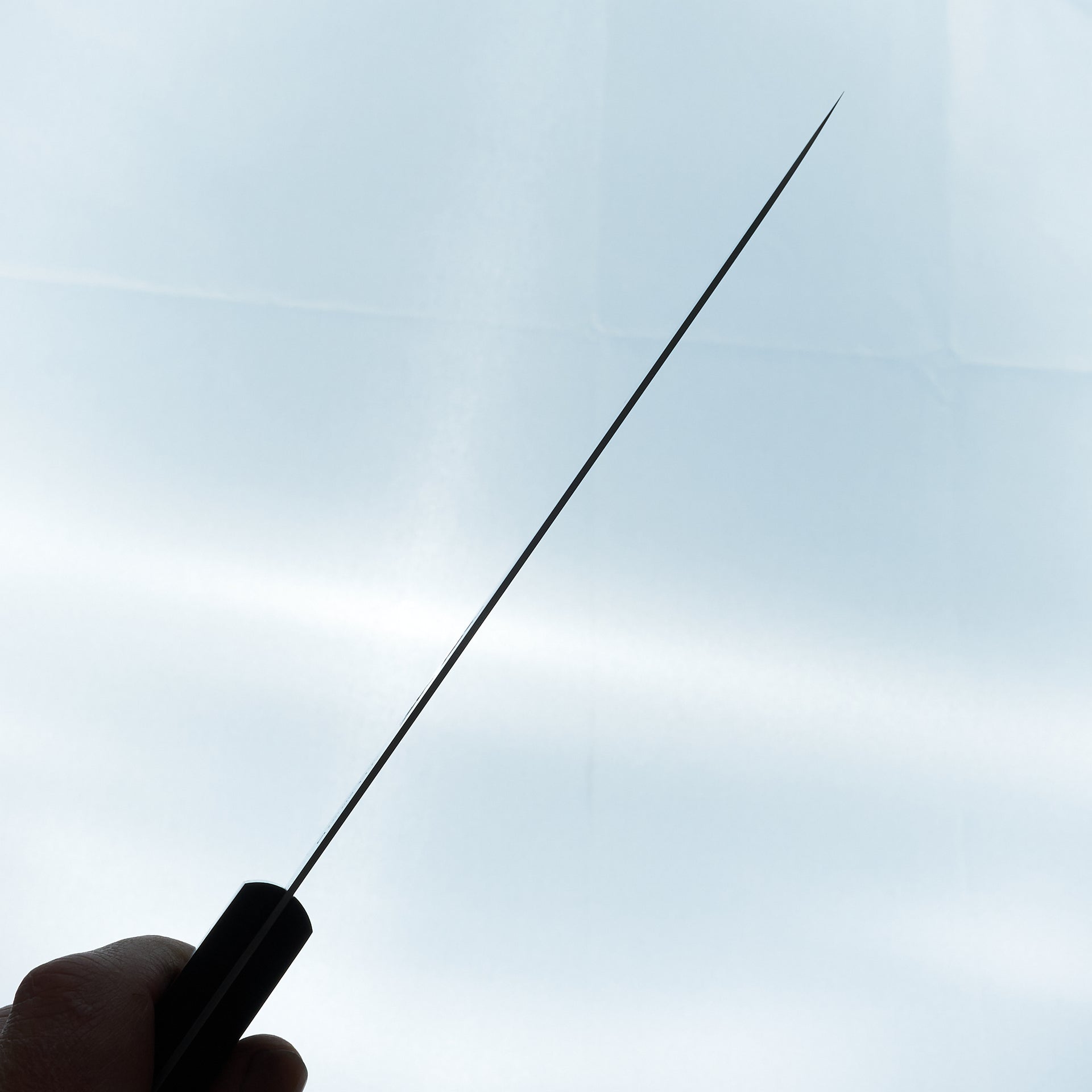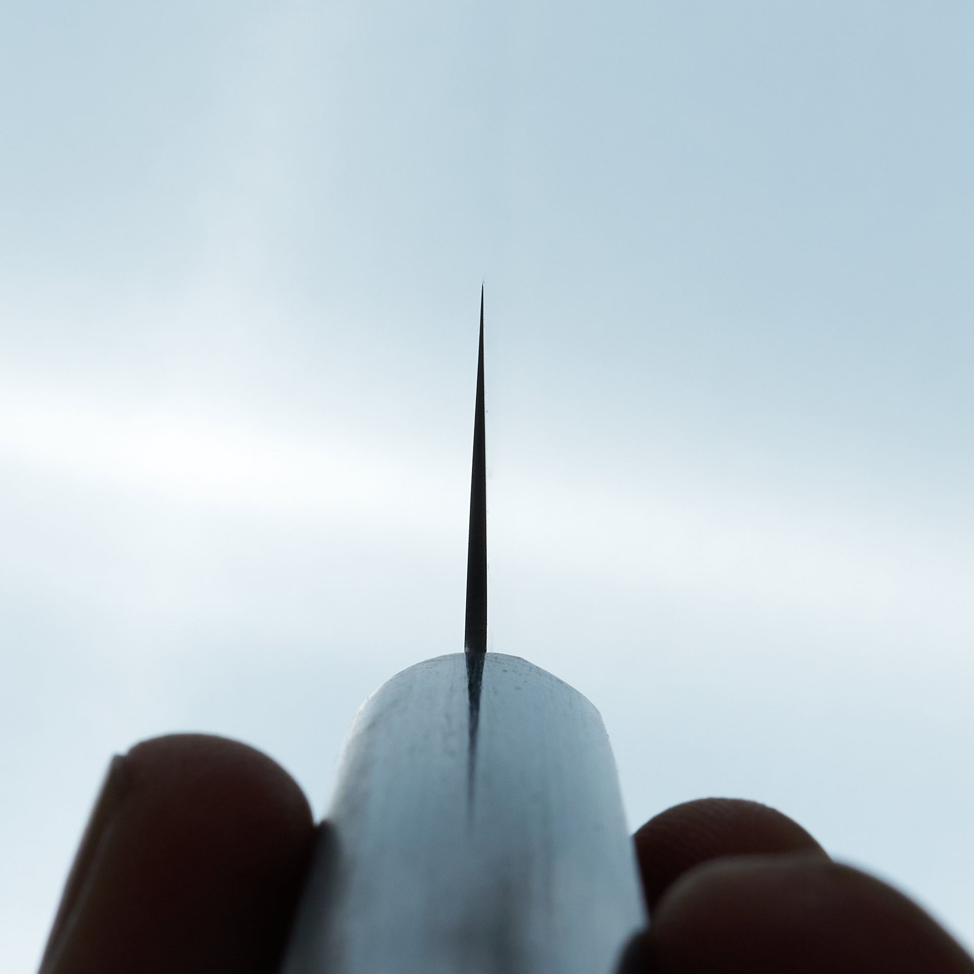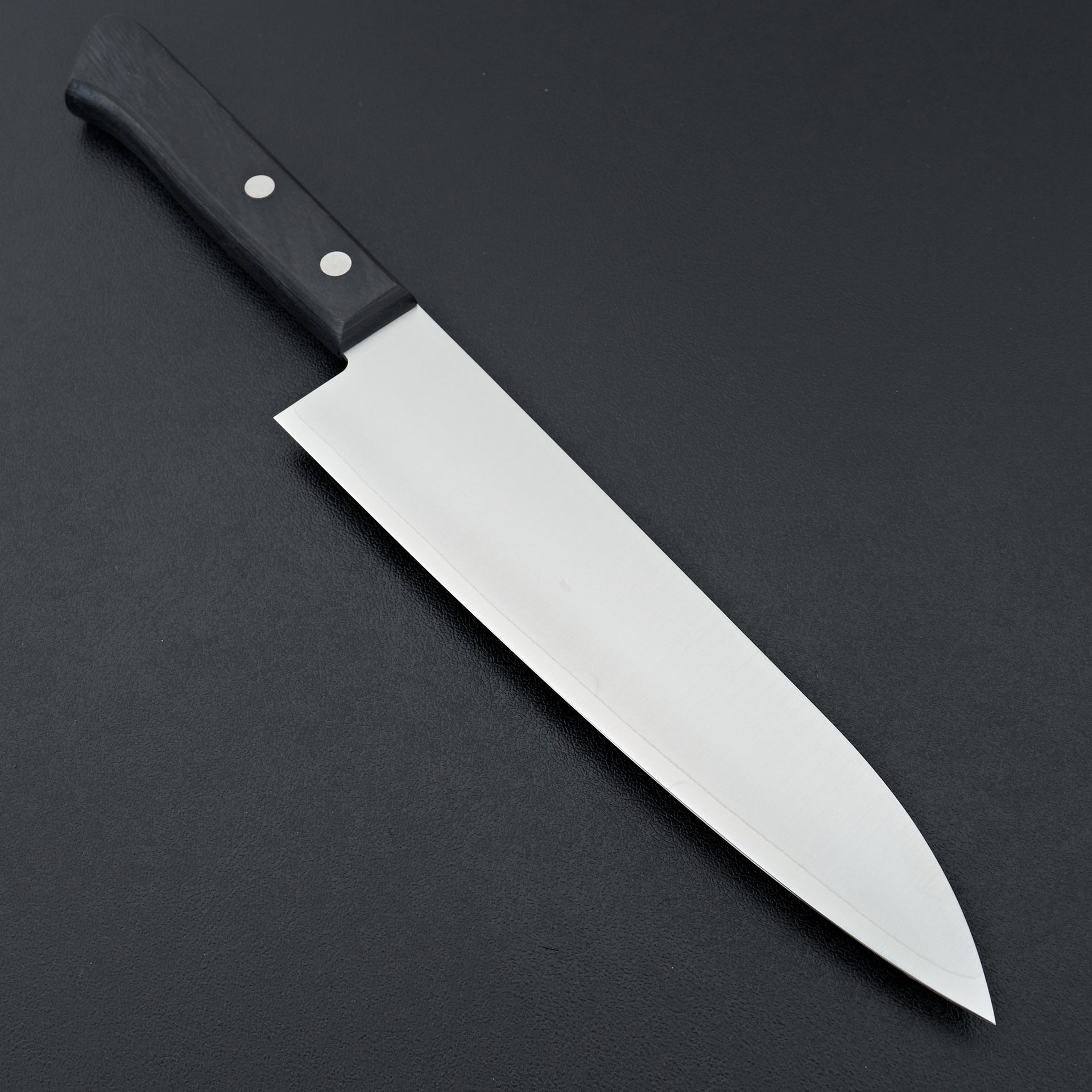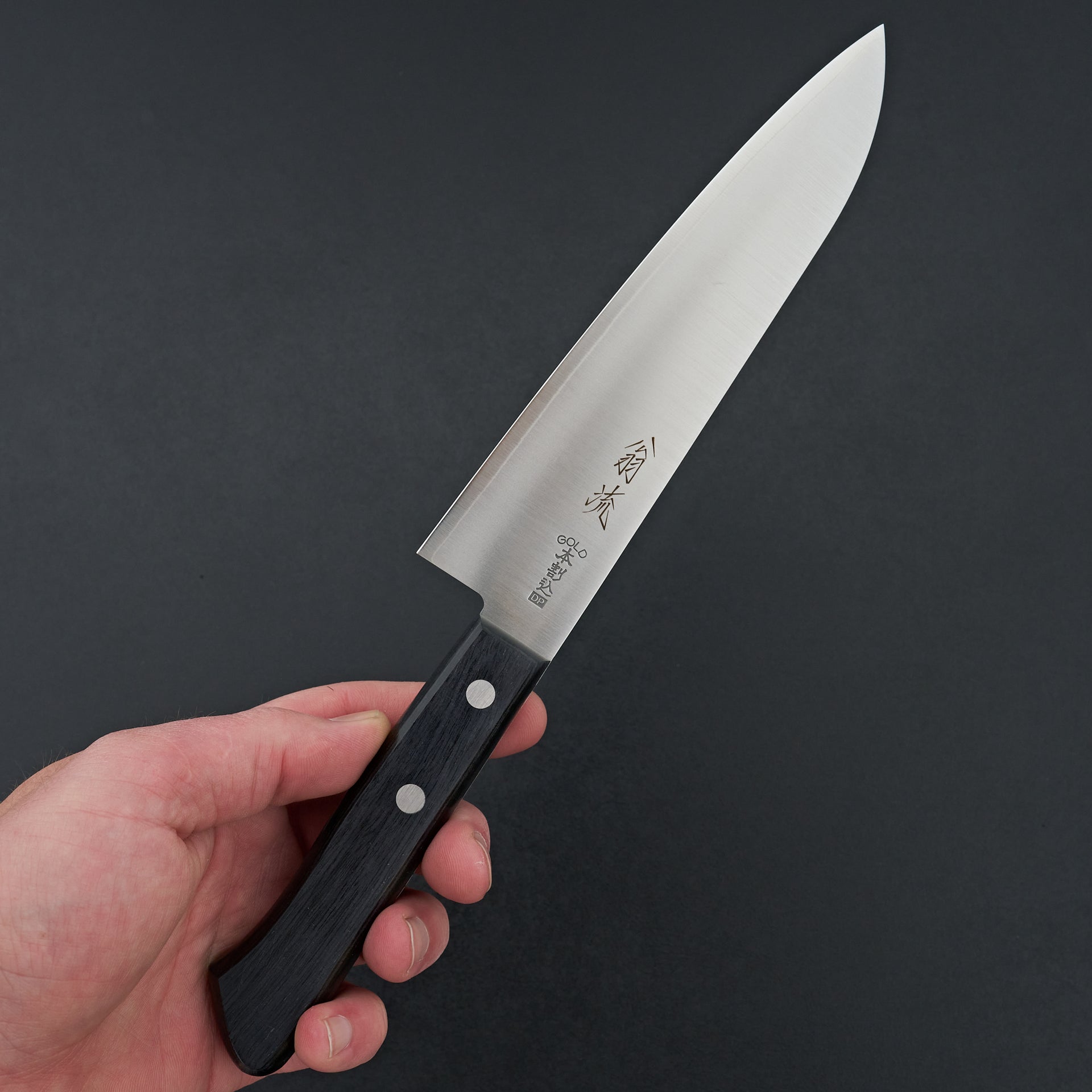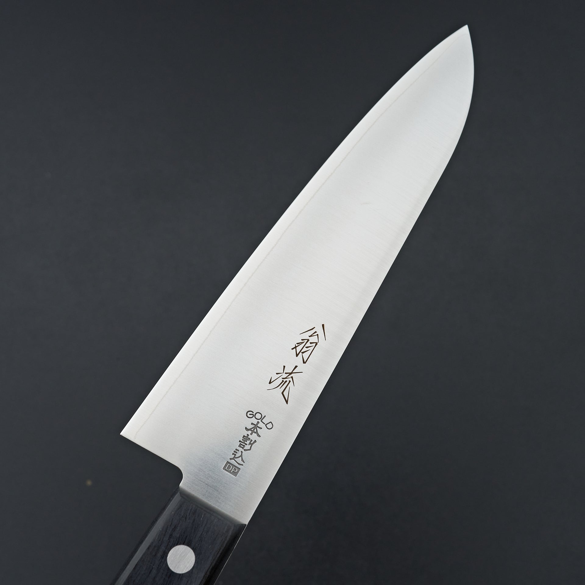 From Sakai OUL, this knife is made from VG1 stainless steel laminated in soft stainless. This is a super fun, practical every day knife with clean thin grinds. Perfect for someone wanting an easy to care for knife that has excellent performance. Bolsterless handle is made from pakka wood.
