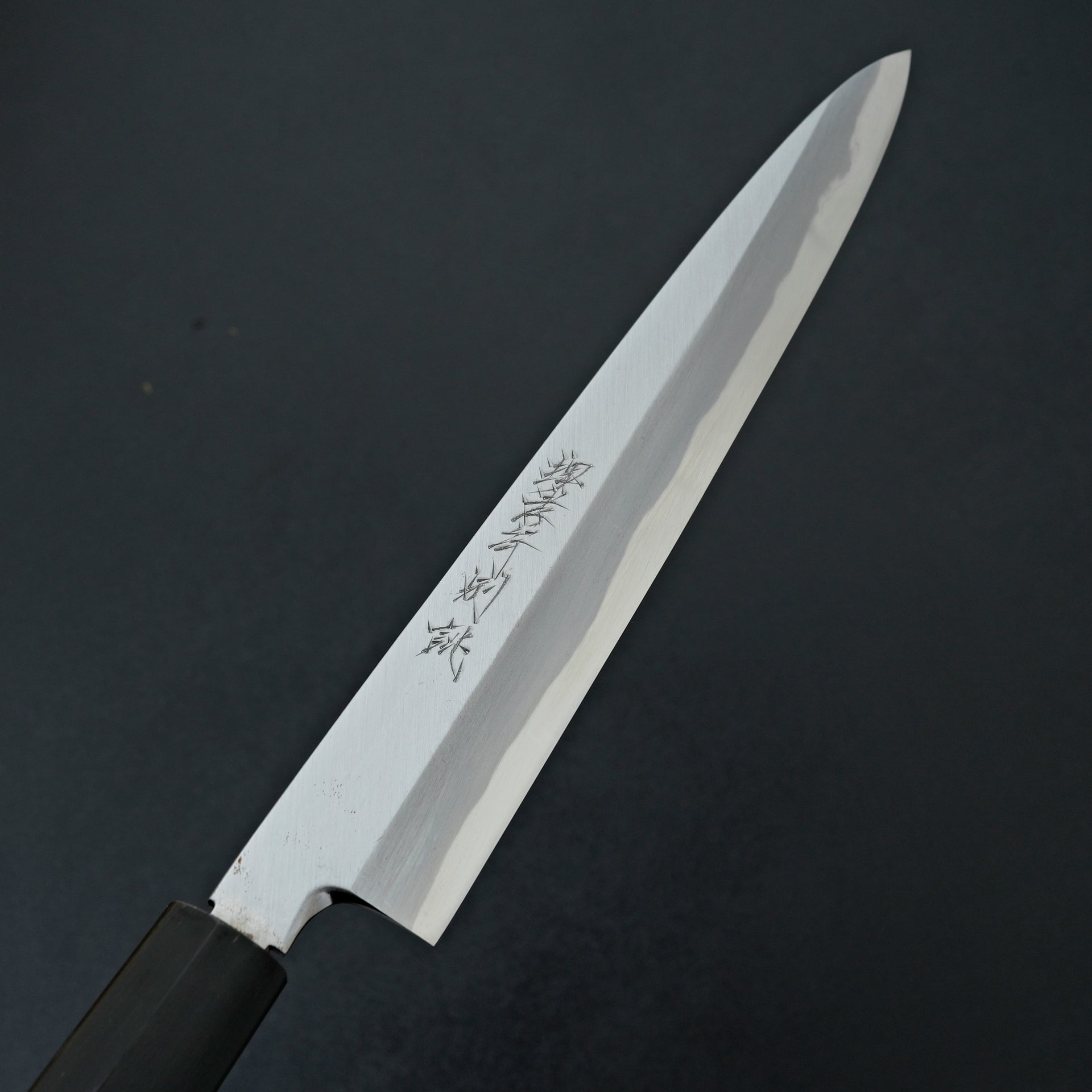 The Tokujou line is hand forged by Kenji Togashi out of Yasuki White Steel (Shirogami) #2 Steel. This is a great example of Sakai's single bevel quality. High level fit and finish on spine and choil. Very consistent grinds with minimal to no low spots that are generally found in other single bevels at this price range. Fitted with a d-shape hoo wood and buffalo horn handle.