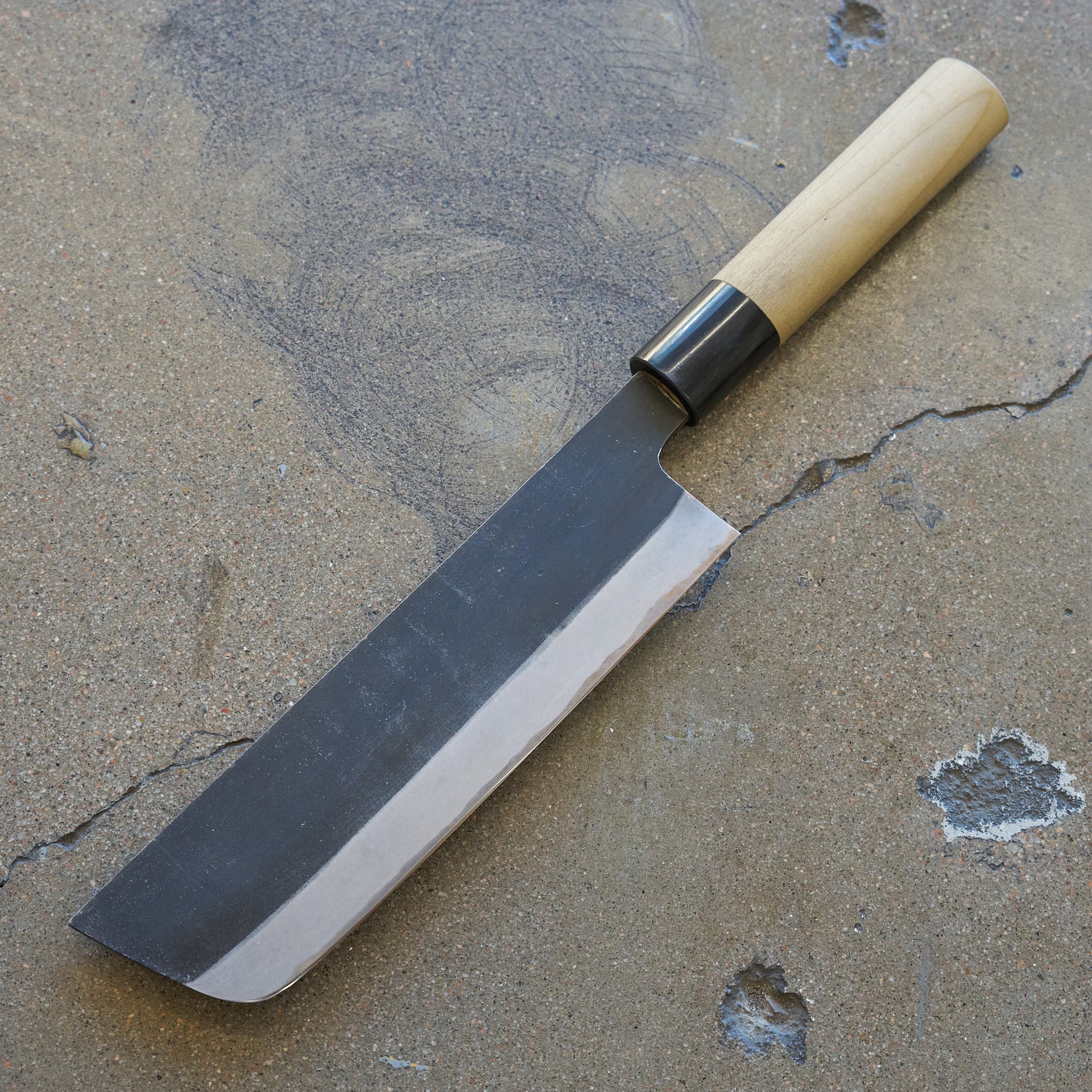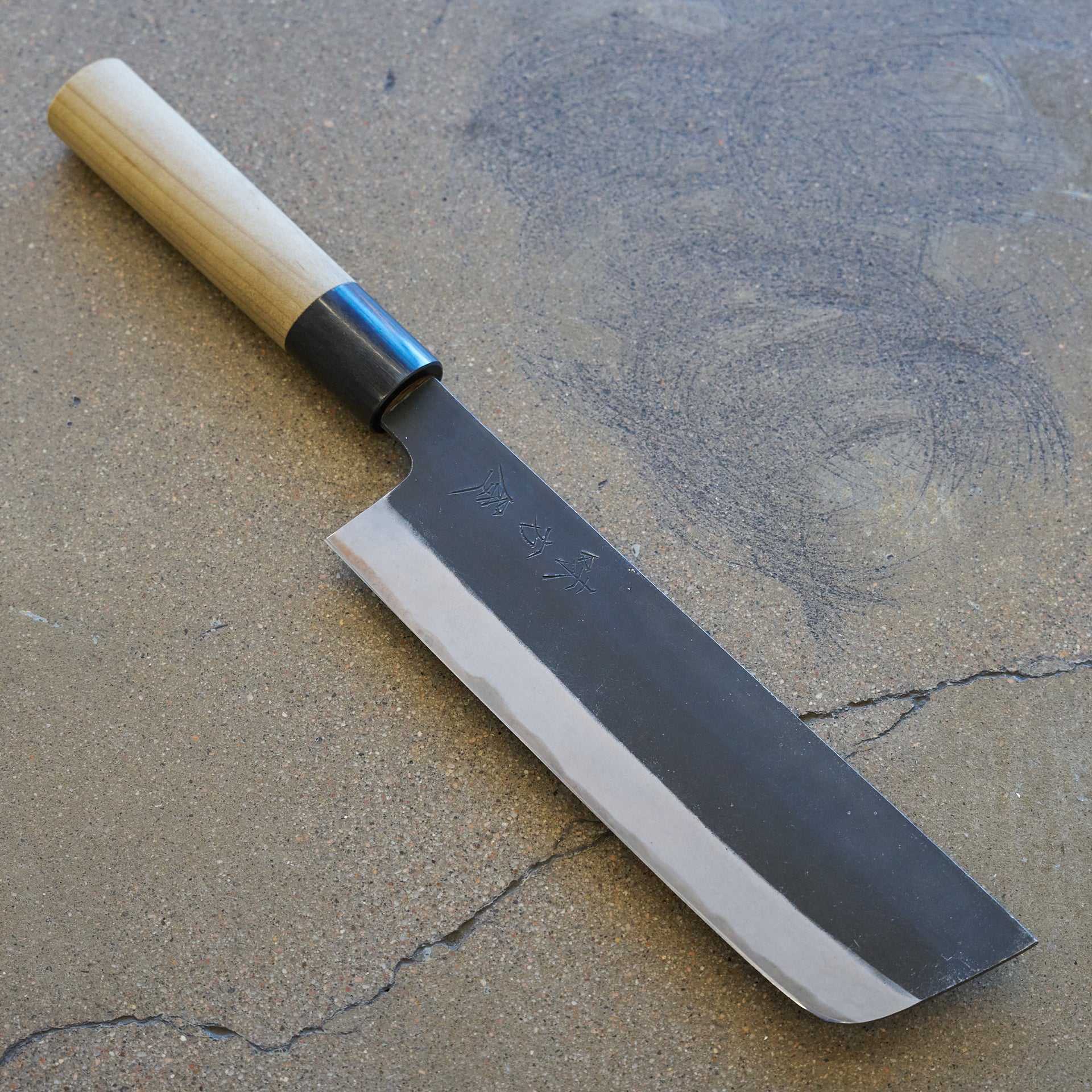 Hinoura Ajikataya is produced mainly by Mutsumi Hinoura, with help of his father Tsukasa Hinoura. Their family owned workshop is located in Sanjo Niigata. Hinoura knives and tools are world renowned for their traditional craftsmanship and amazing heat treatment. This series is made from shirogami (white) #2 steel and cladded in iron. The blade has a kurouchi finish with kasumi finished bevels. We have always found the grinds to be very consistent which makes transitioning to stones very easy. Fitted with high quality oval magnolia and buffalo horn handles.