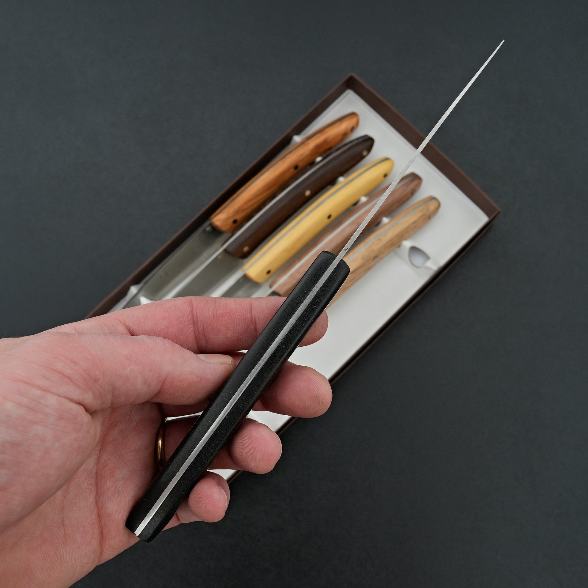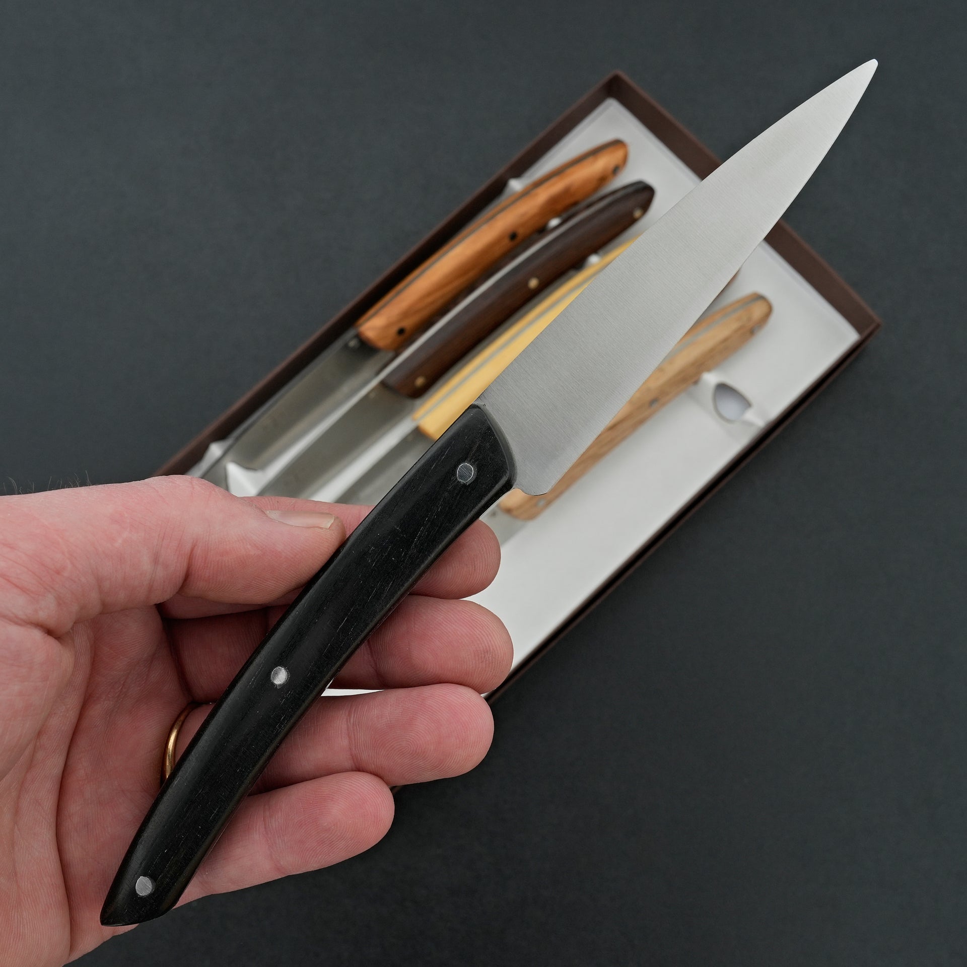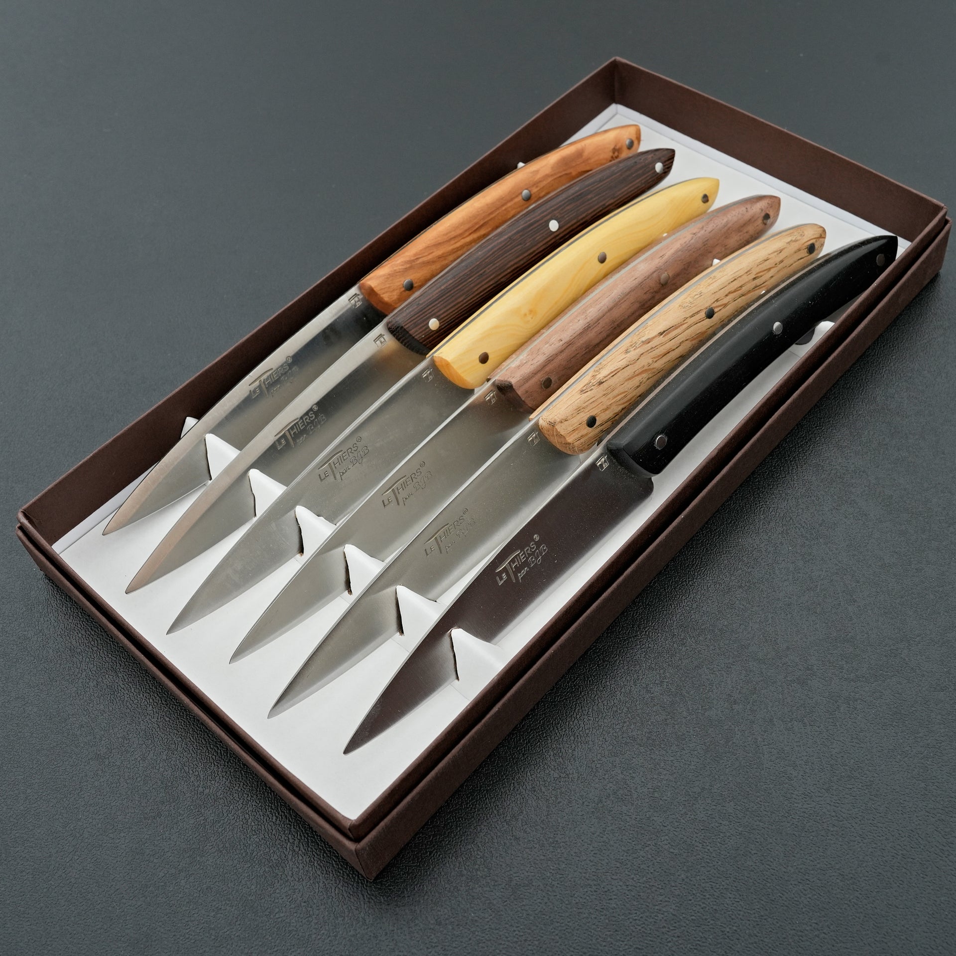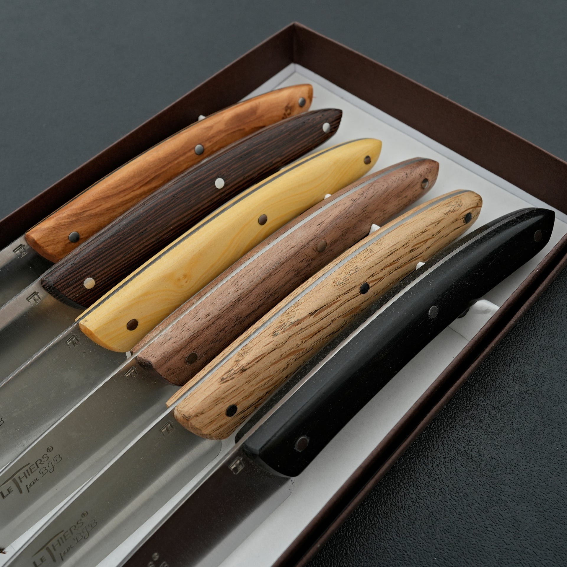 Handle in 6 different Woods: Olive Wood, Juniper, Rose Wood, Ebony, Kingwood, Box Wood.