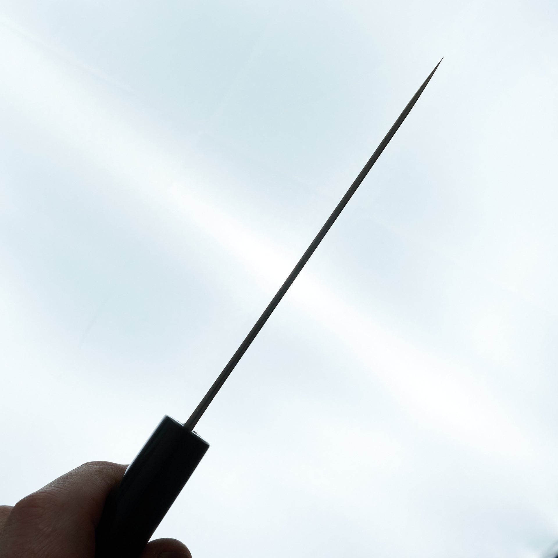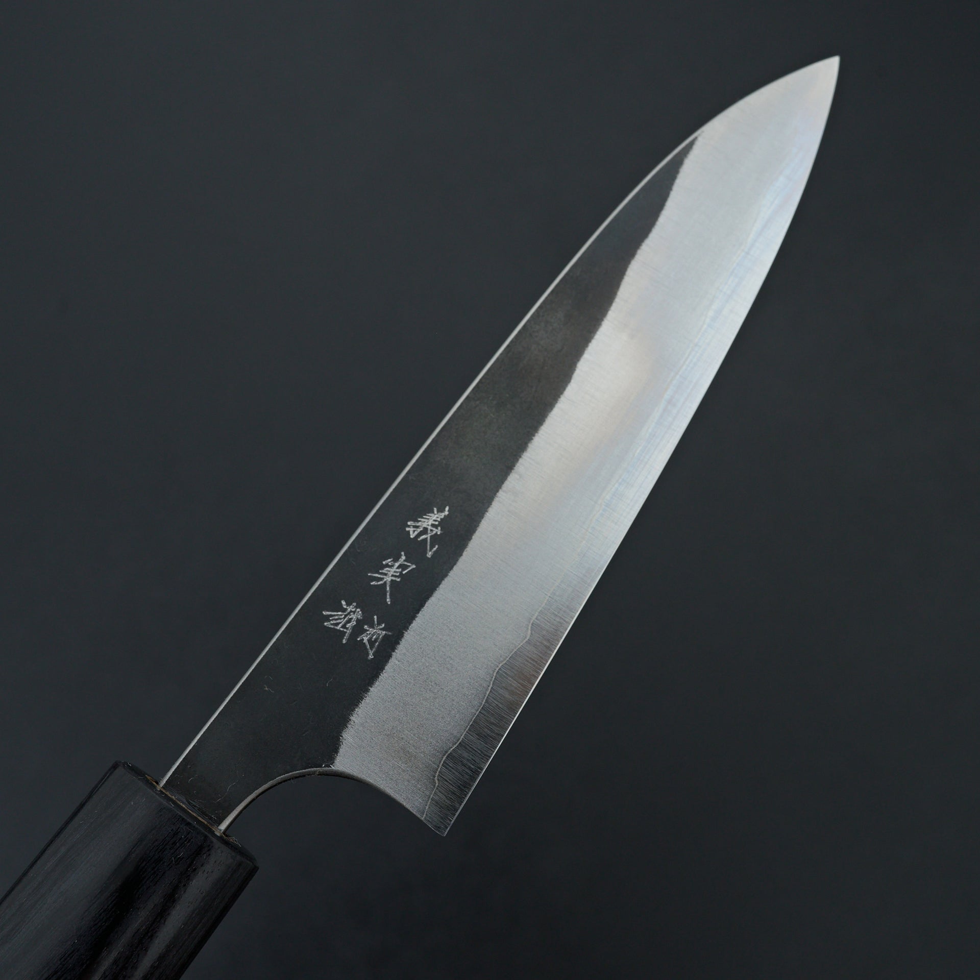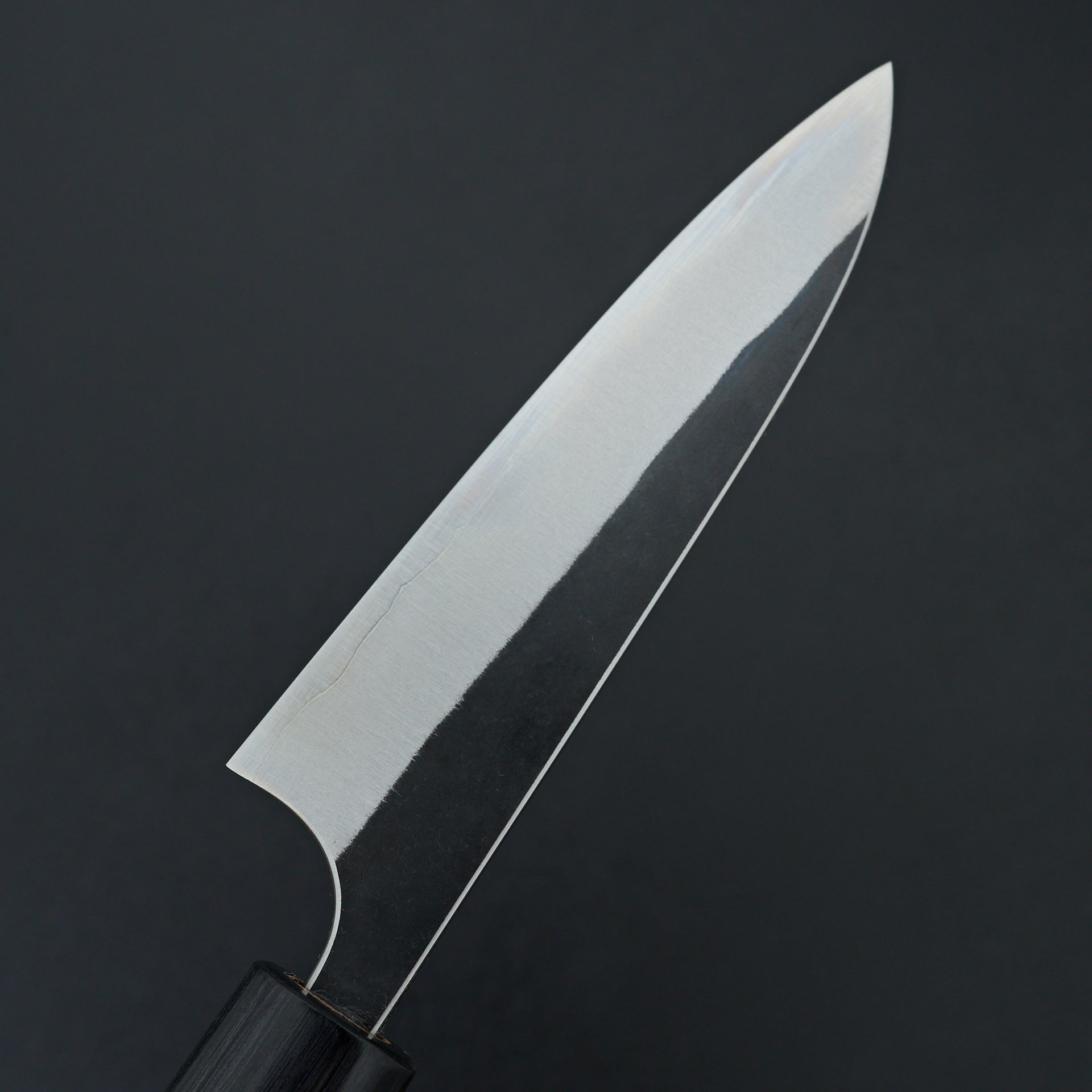 This series is made from aogami super steel (blue super) steel treated to 63-64 HRC and cladded in stainless with a kurouchi finish. This knife is very thin behind the edge and has excellent edge retention. The handle is made from oval rosewood.