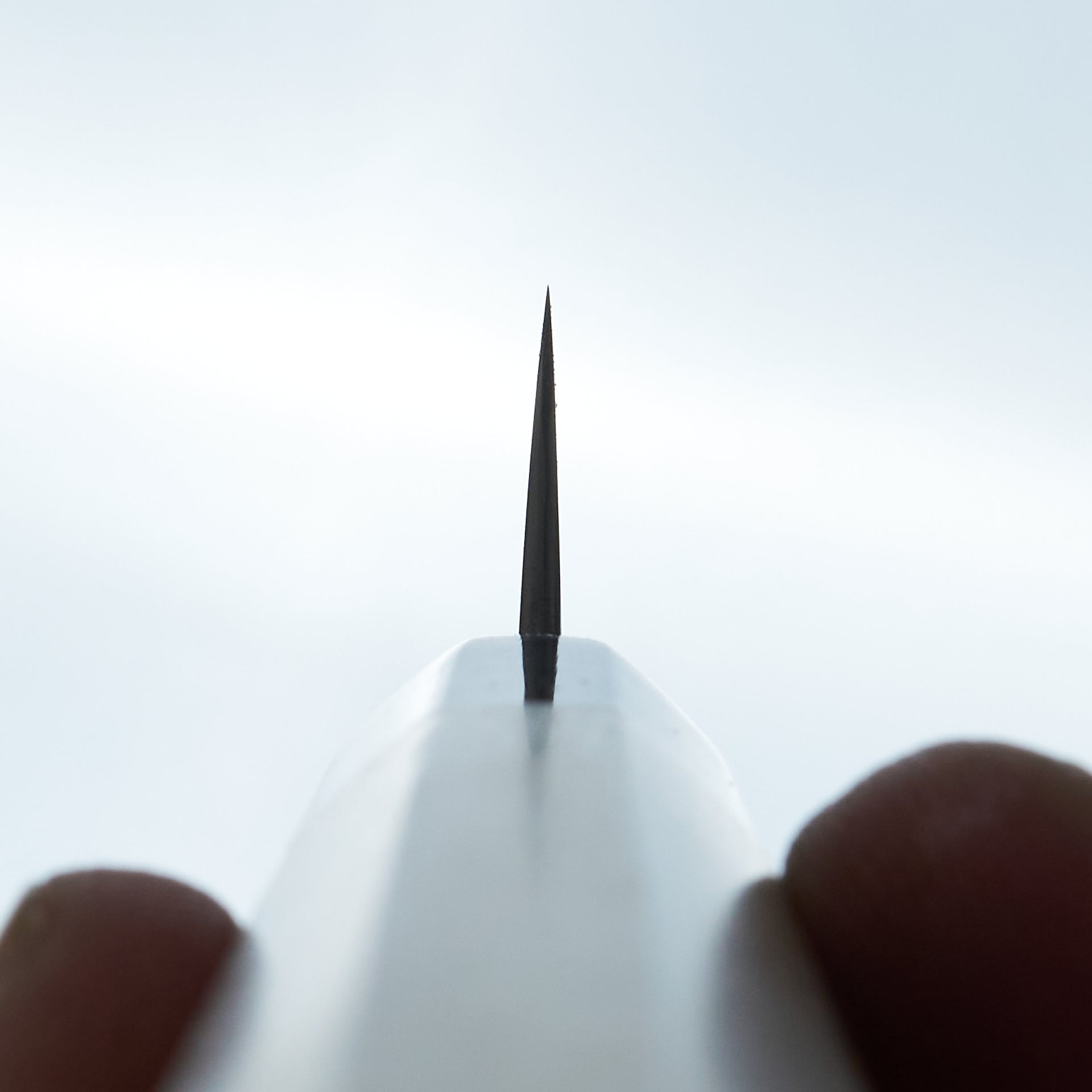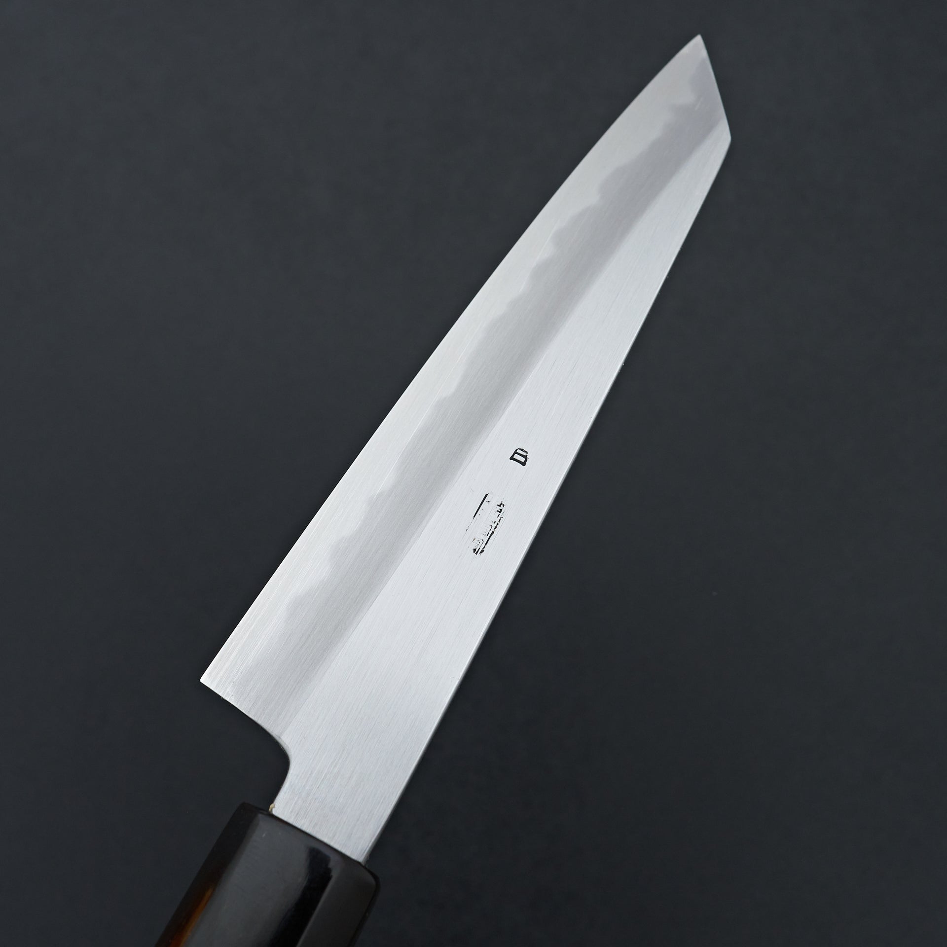 Kawamura Hamono was founded in 1926 in Sakai. Kikumori is praised for their beautiful craftsmanship utilizing traditional techniques specific to their region. Sakai Kikumori Kikuzuki is made from Shirogami #2 steel core and cladded in iron. The blade is hand finished with a smooth migaki finish running lengthwise and a kasumi finish to distinguish the separation between steels. The handle is octagonal hoo wood with horn ferrule.
