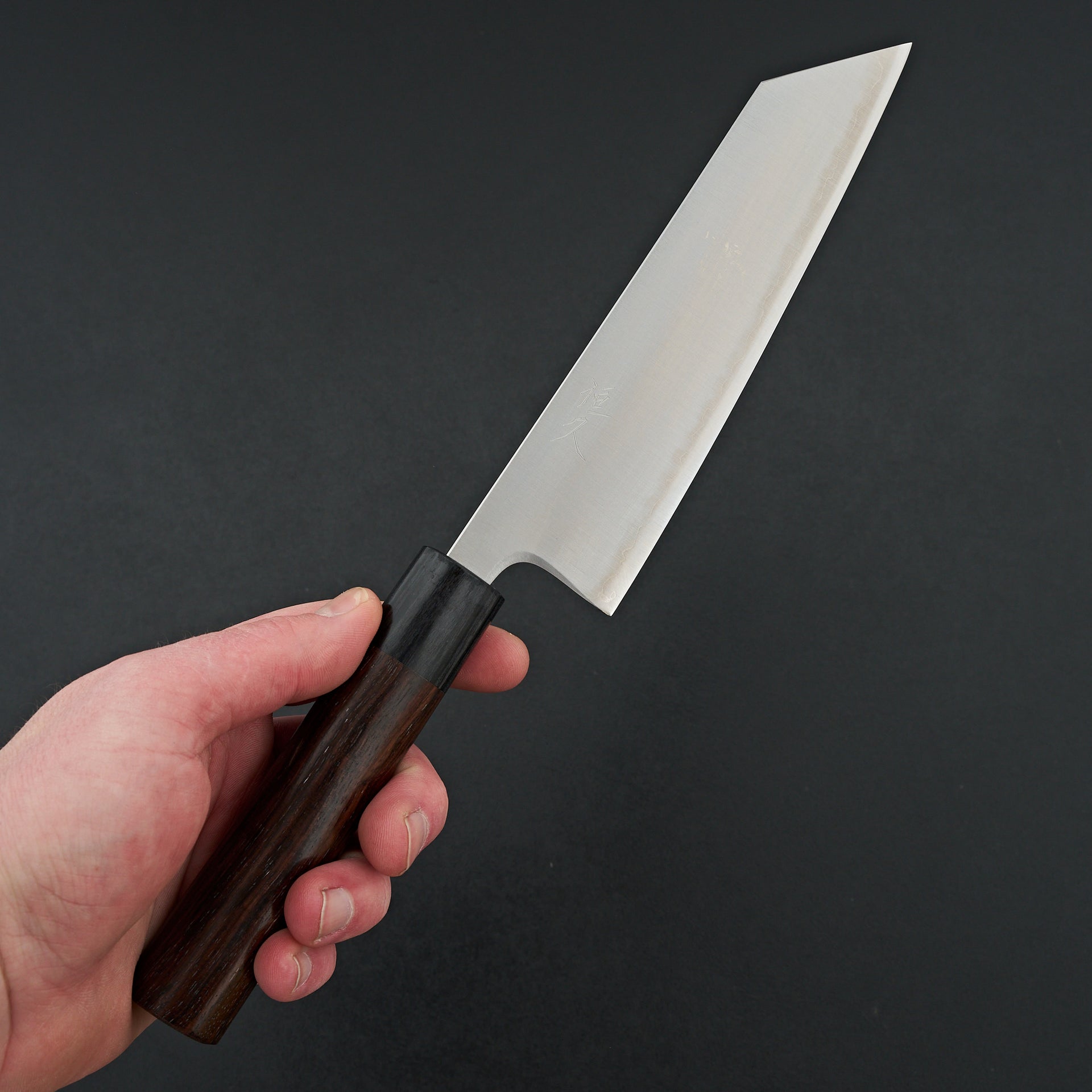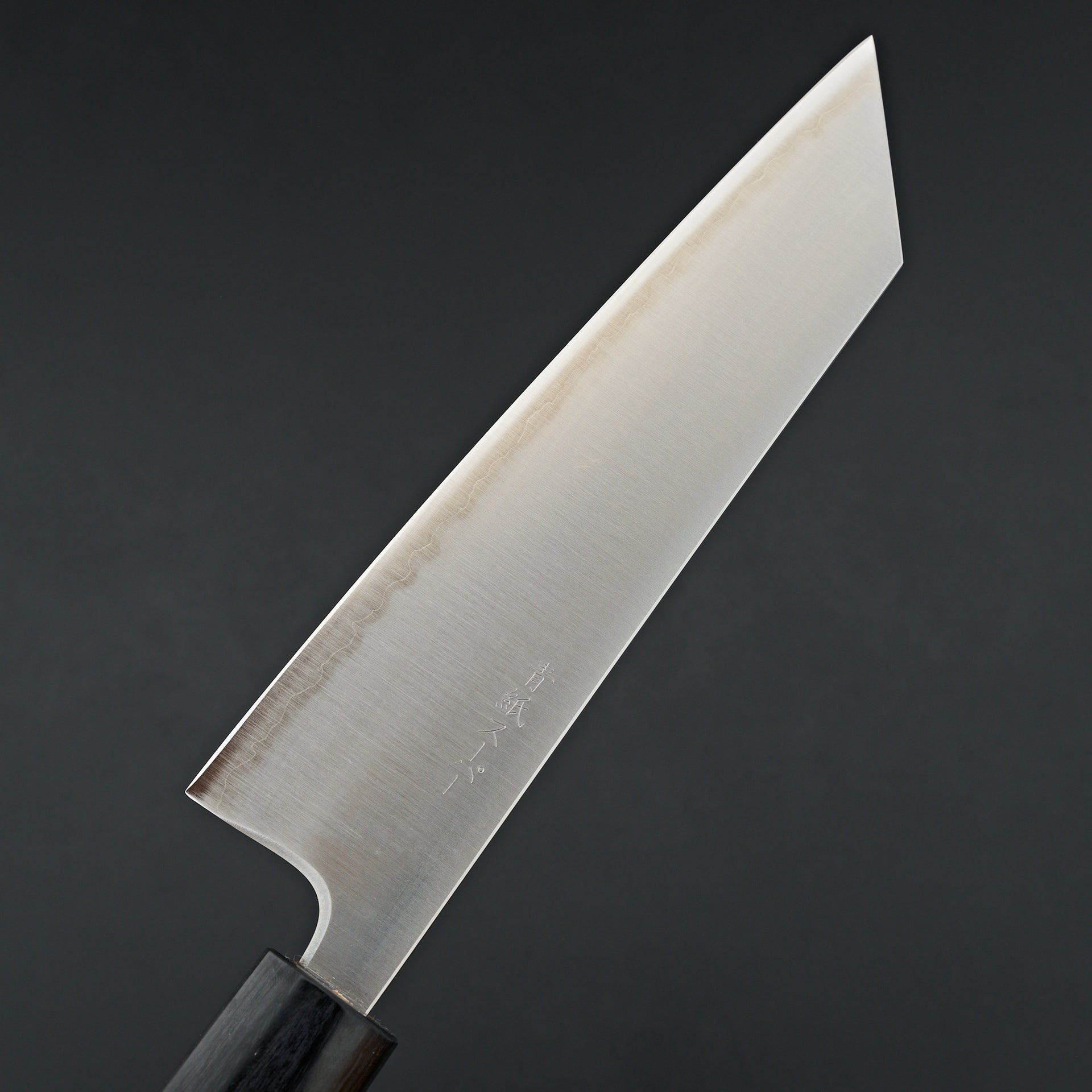 Tsunehisa AS line is forged from Aogami super steel and cladded in stainless. Hardness rating is ~63hrc. These knives have great edge retention and sharpenability. The blade is satin finished very beautifully. These have nice thin grinds but still feel very confident and durable. They are fitted with oval rosewood handles.