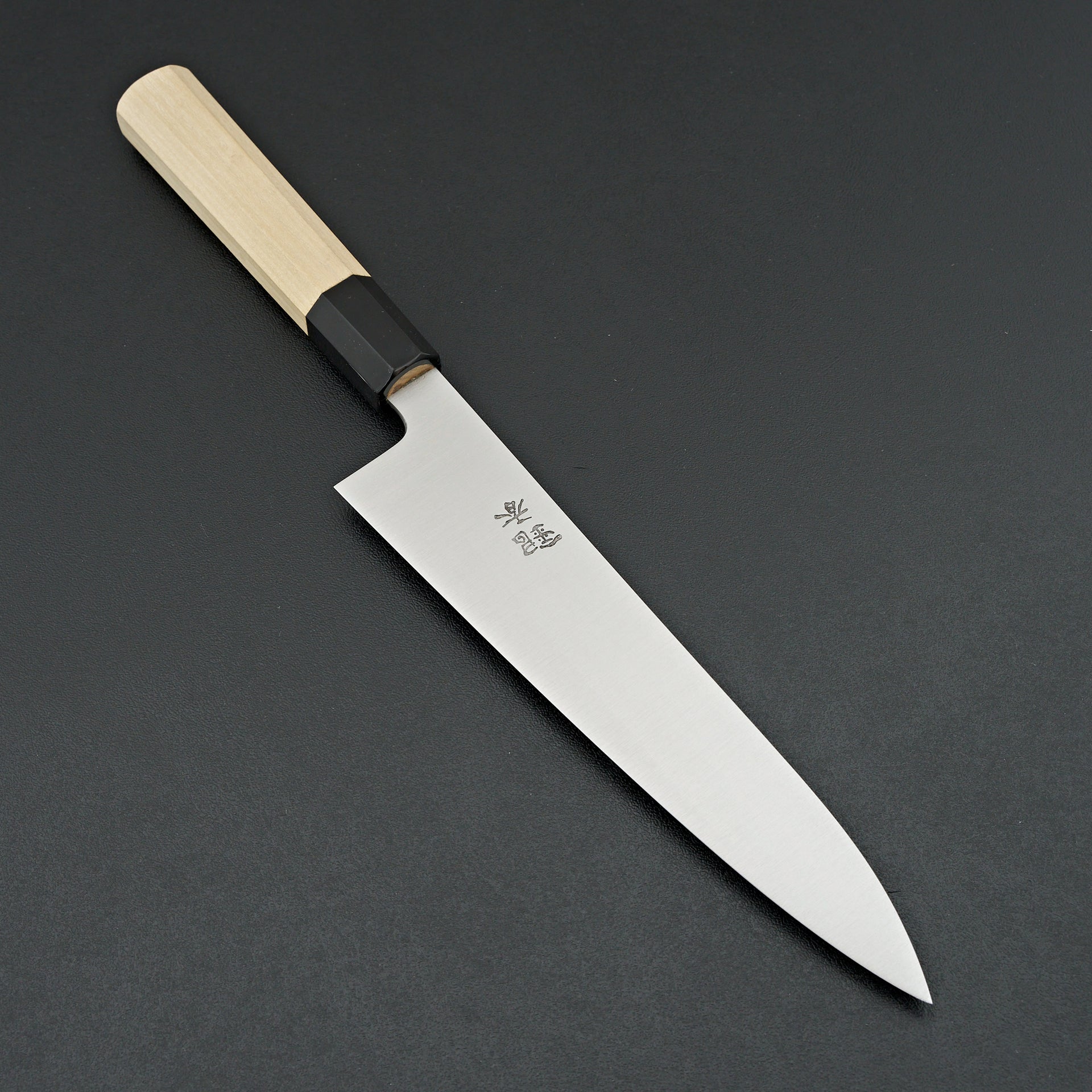 Ashi Hamono makes incredibly high performance knives out of Sakai, Japan. Their knives and known for thinness and superb geometry. These blades have a slight convexity making the cutting feel very enjoyable. Quality control is very important to Ashi. They make their blades, handles, sayas all in house.