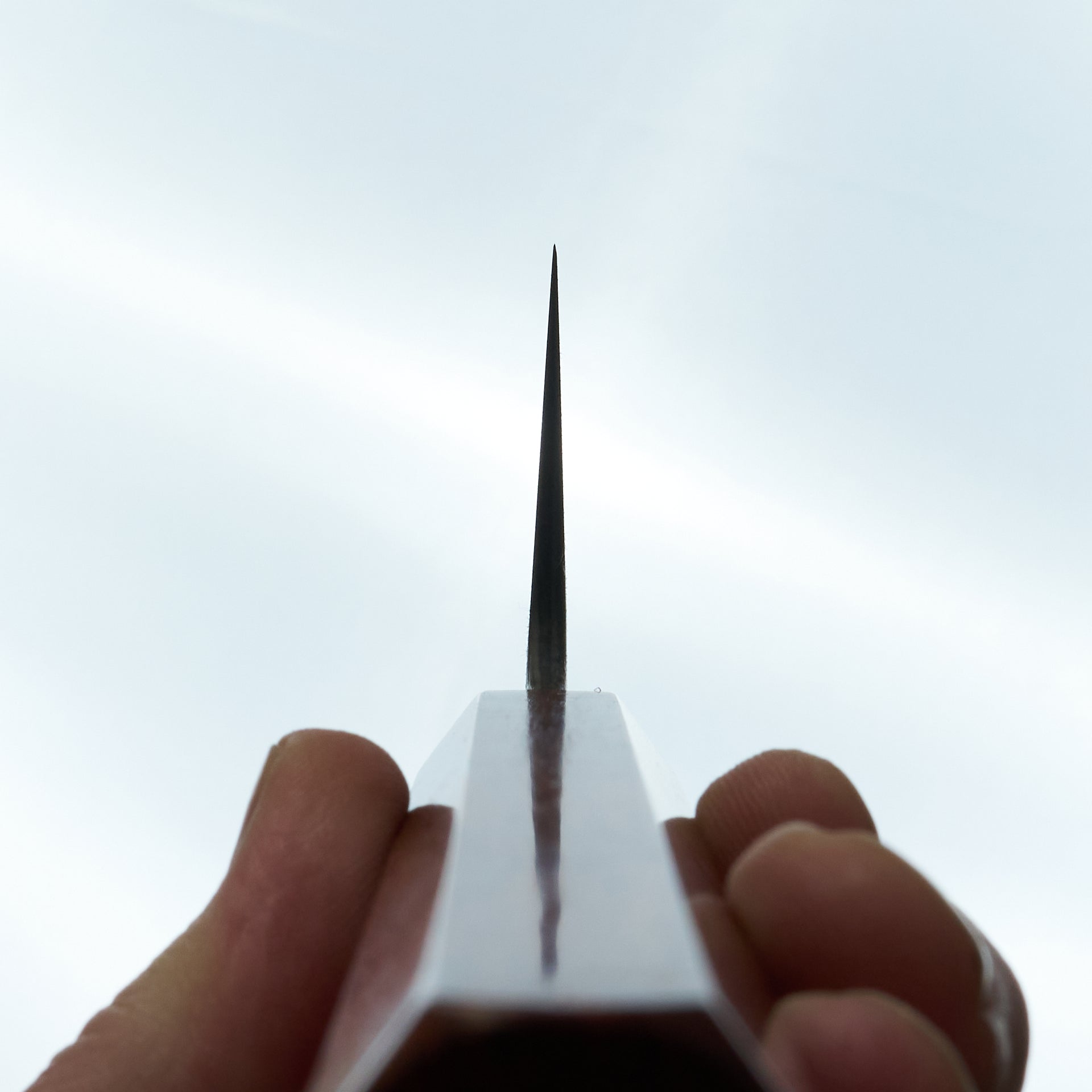 Manaka Hamono is a 5th generation blacksmith, now located in Sanjo Niigata. He spent many years practicing a hand laminating technique and never uses hand laminated materials. This way he can control the temperature of the steel during the laminating process and retain the best qualities in the steel.