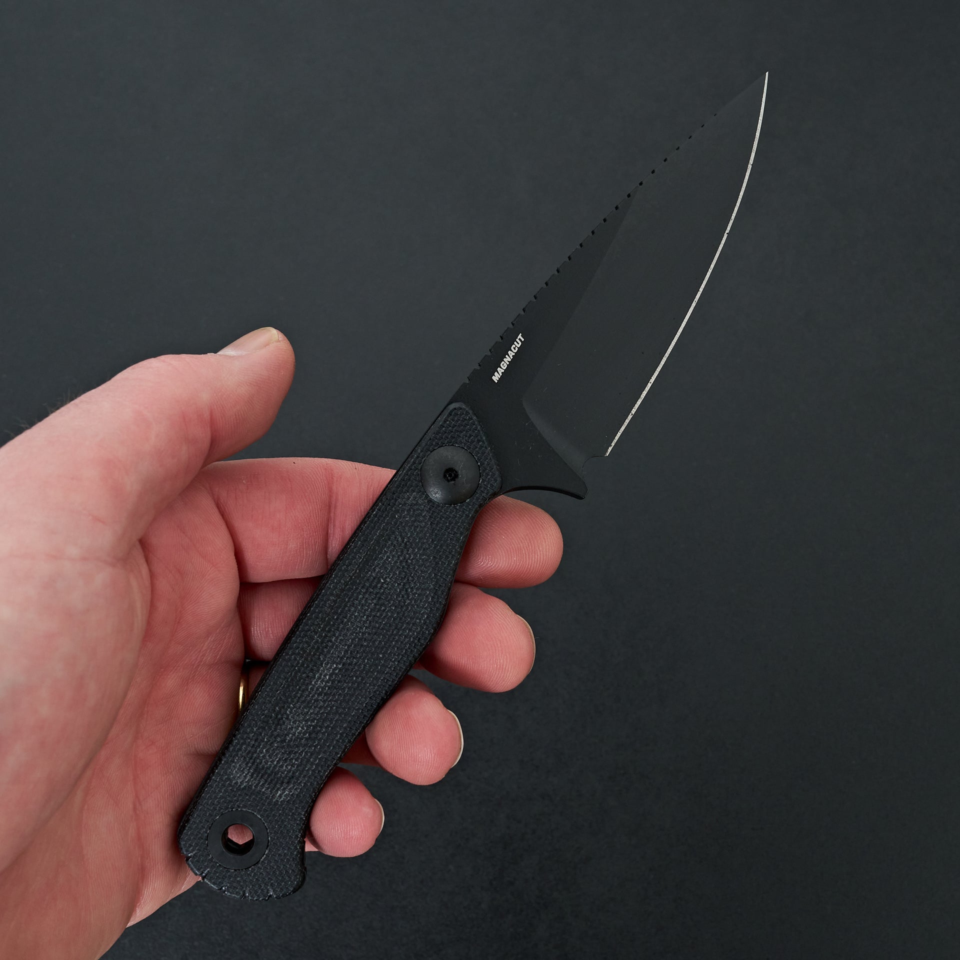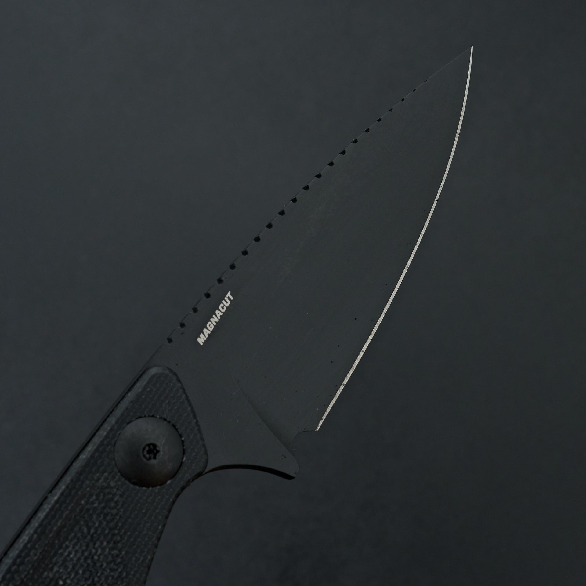 "For the daily carry fan who prefers an all-purpose fixed-blade knife to a folder, the 203 Dacian™ is designed to be your perfectly sized companion for general-purpose utility, outdoor recreation, or EDC. Featuring a blend of a super tough, corrosion resistant MagnaCut blade steel with a spear point profile and high grind for maximum sliceability. The durable Denim Micarta handle is constructed with deep finger grooves for extreme comfort in multiple grip positions, the 203 Dacian™ includes a molded sheath with a high retention clip for easy access from the belt, pocket, or waistband."