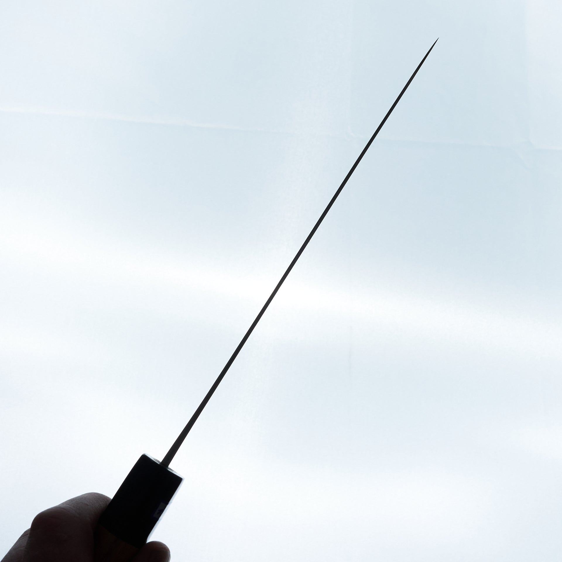 Gihei Hamono is located in Sanjo, Niigata and is run by Atsushi and Takashi Hosokawa. Gihei hamono not only works in traditional Hitachi steels but also works with newer  high performance steels such as HAP40 and SLD tool steels. Gihei are always praised for their excellent heat treatment and ability to hold and edge. 50/50 ground with exposed wide bevel, thin at the edge but low enough grind to provide very nice food release.