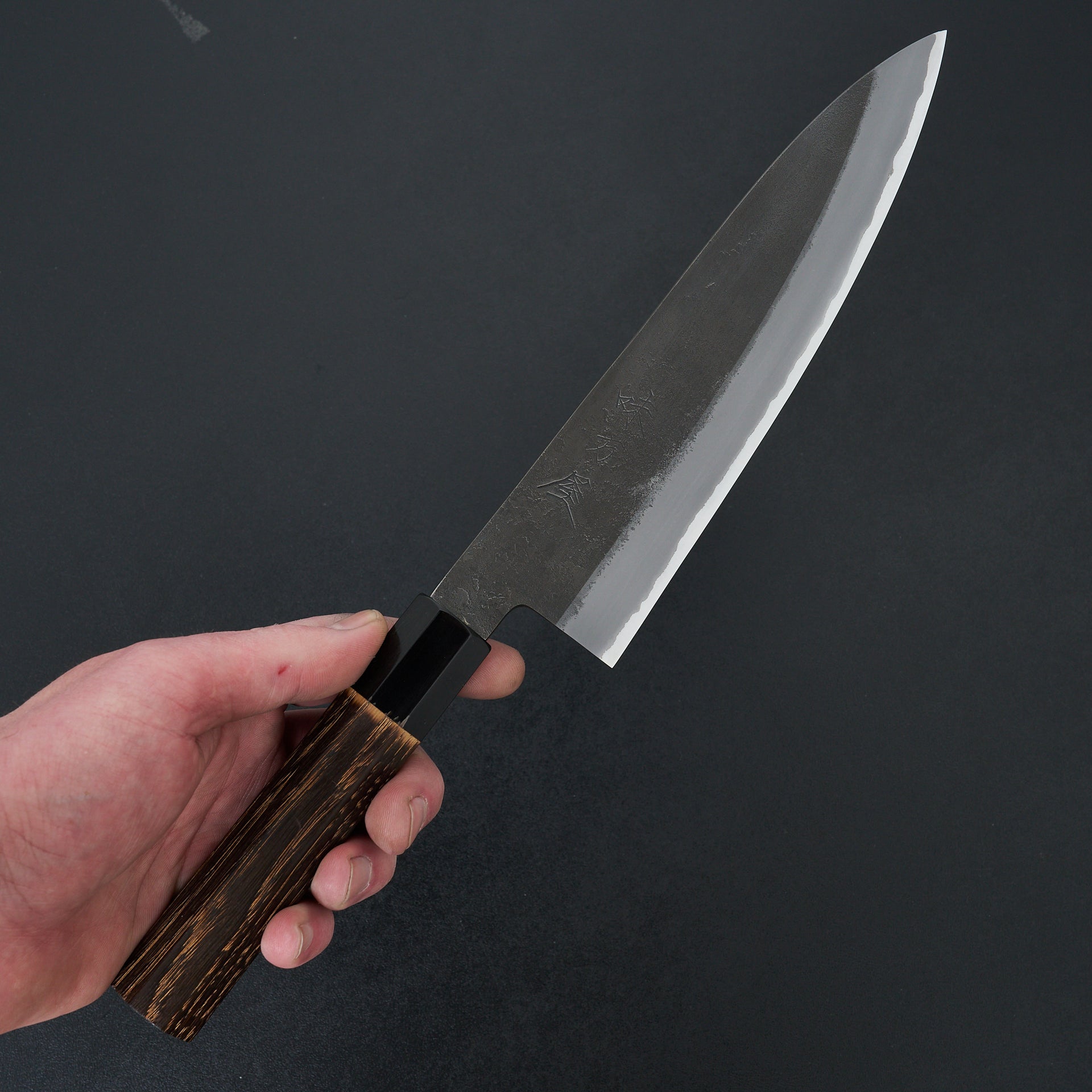 Hinoura Ajikataya is produced by 3rd generation blacksmith Mutsumi Hinoura in their family owned workshop is located in Sanjo Niigata. Hinoura knives and tools are world renowned for their traditional craftsmanship and amazing heat treatment. This series is made from shirogami (white) #2 steel and cladded in stainless steel. The blade has a nashiji finish. We have always found the grinds to be very consistent which makes transitioning to stones very easy. Fitted with high quality octagonal burnt chestnut and buffalo horn ferrule.