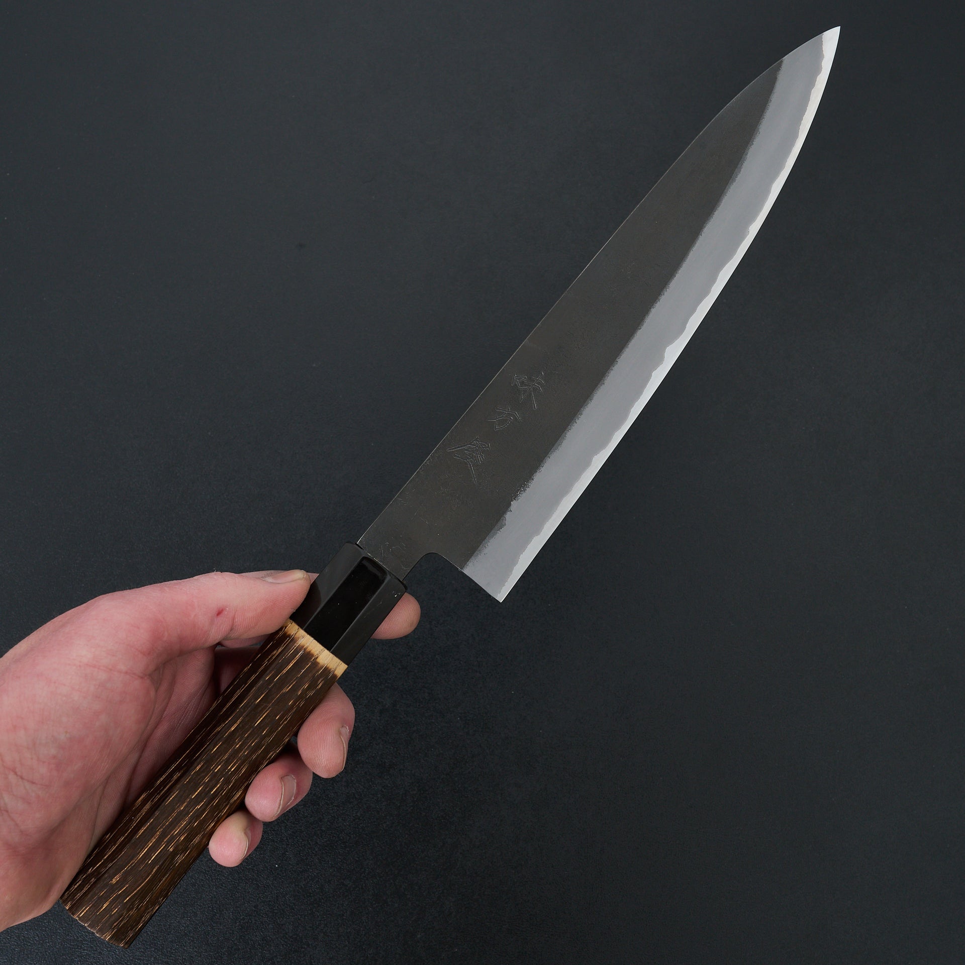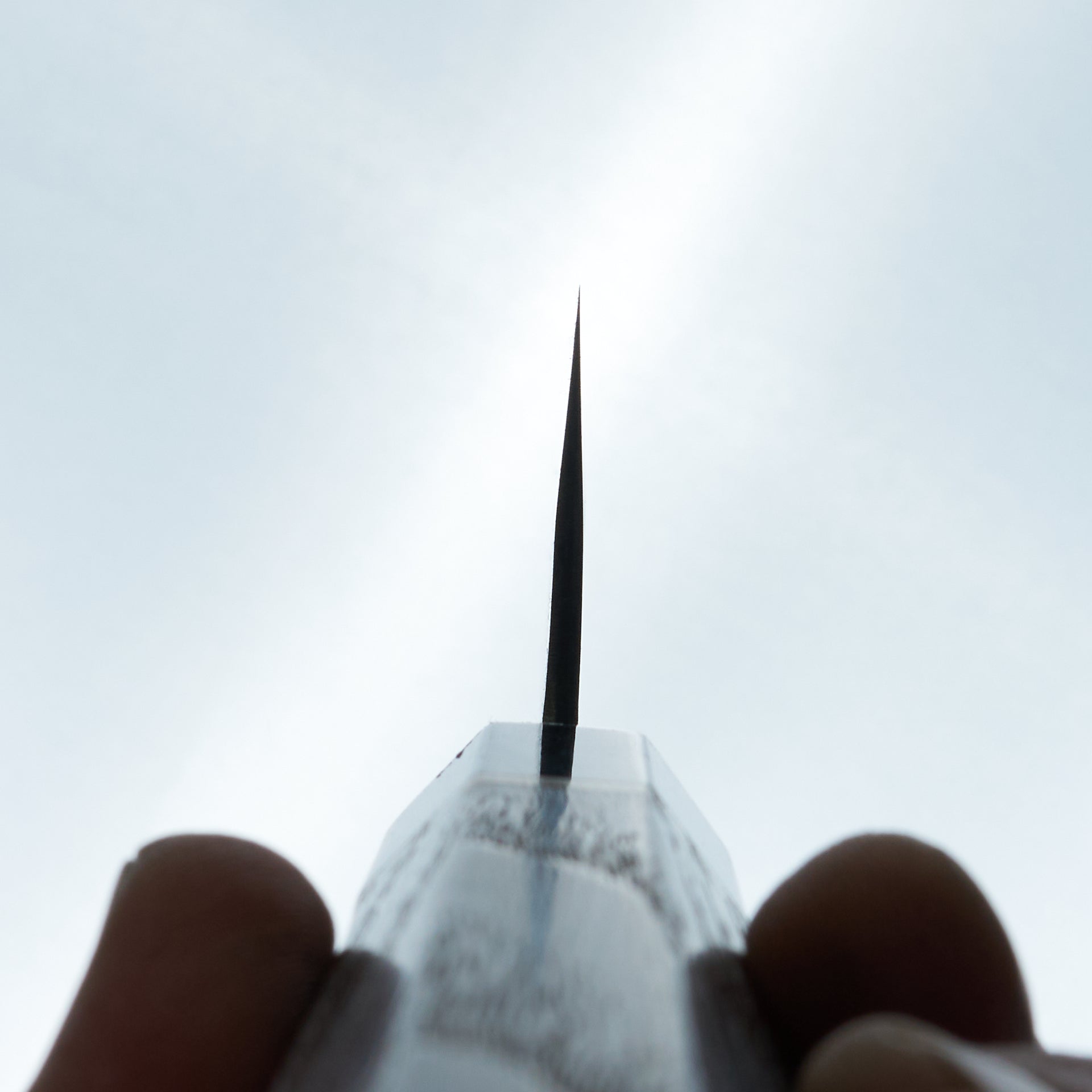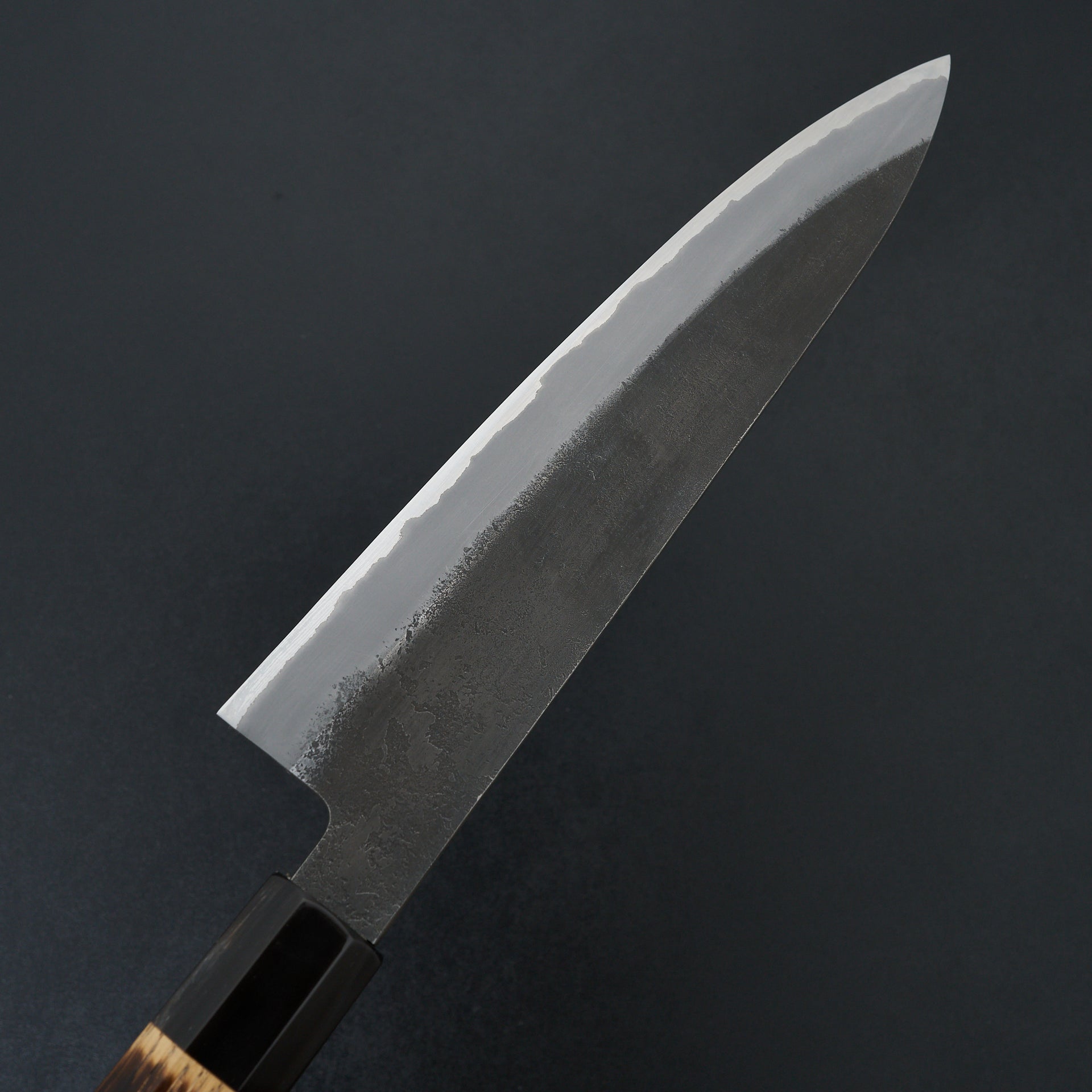 Hinoura Ajikataya is produced by 3rd generation blacksmith Mutsumi Hinoura in their family owned workshop is located in Sanjo Niigata. Hinoura knives and tools are world renowned for their traditional craftsmanship and amazing heat treatment. This series is made from shirogami (white) #2 steel and cladded in stainless steel. The blade has a nashiji finish. We have always found the grinds to be very consistent which makes transitioning to stones very easy. Fitted with high quality octagonal burnt chestnut and buffalo horn ferrule.