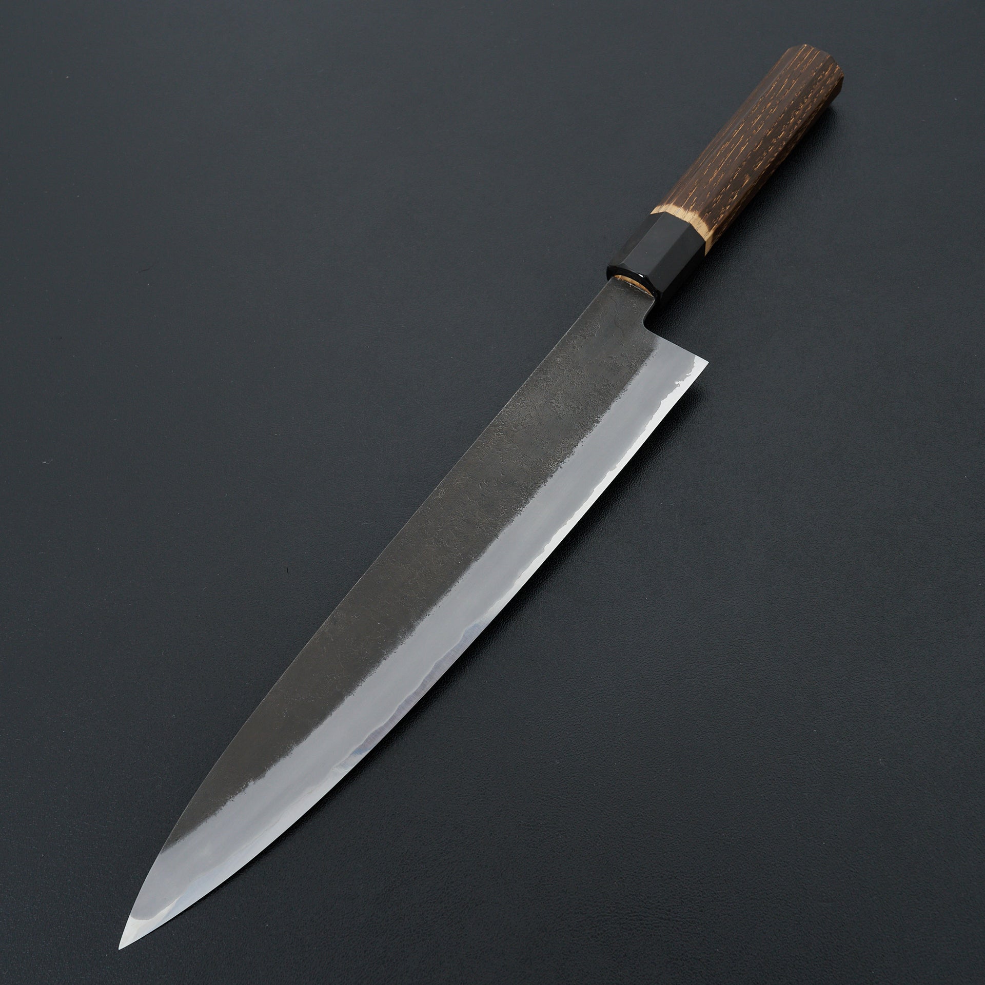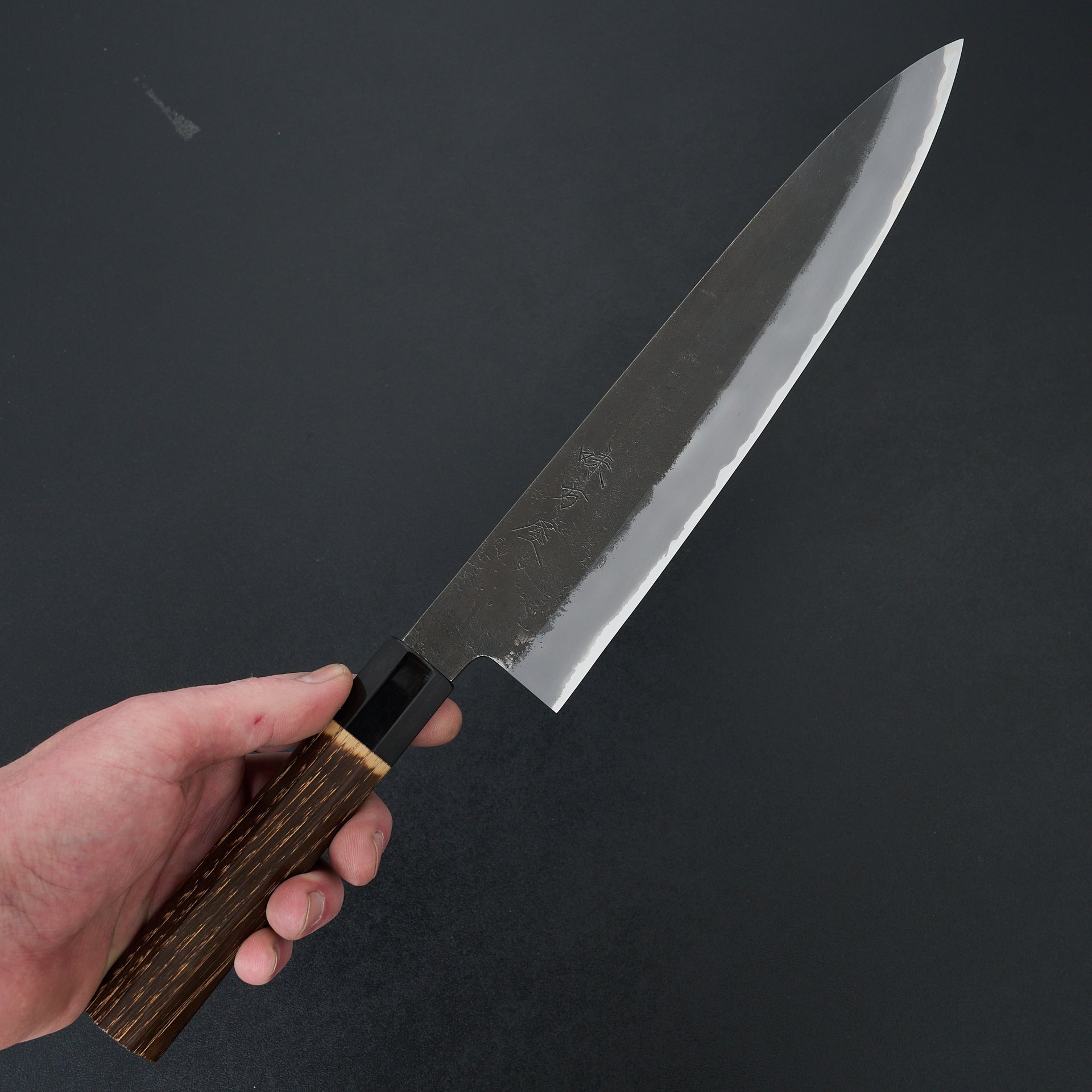 Hinoura Ajikataya is produced by 3rd generation blacksmith Mutsumi Hinoura in their family owned workshop is located in Sanjo Niigata. Hinoura knives and tools are world renowned for their traditional craftsmanship and amazing heat treatment. This series is made from shirogami (white) #2 steel and cladded in stainless steel. The blade has a nashiji finish. We have always found the grinds to be very consistent which makes transitioning to stones very easy. Fitted with high quality octagonal burnt chestnut and buffalo horn ferrule.