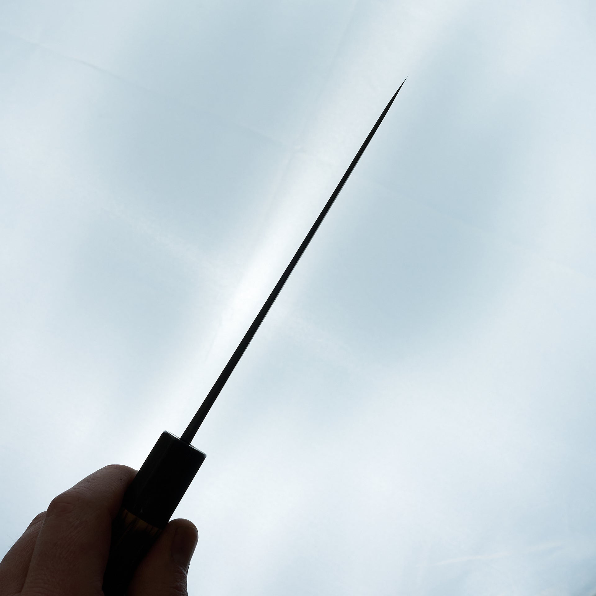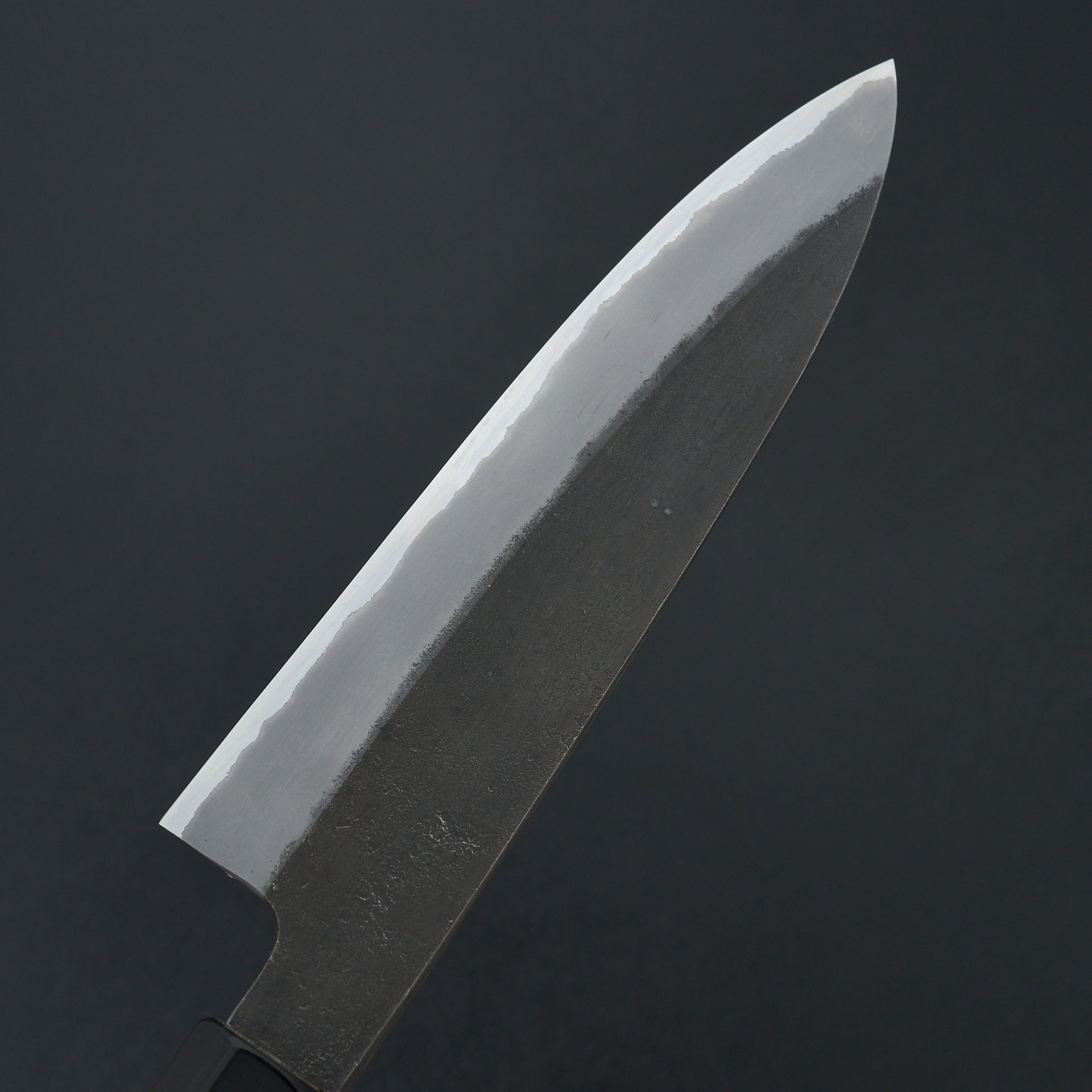 Hinoura Ajikataya is produced by 3rd generation blacksmith Mutsumi Hinoura in their family owned workshop is located in Sanjo Niigata. Hinoura knives and tools are world renowned for their traditional craftsmanship and amazing heat treatment. This series is made from shirogami (white) #2 steel and cladded in stainless steel. The blade has a nashiji finish. We have always found the grinds to be very consistent which makes transitioning to stones very easy. Fitted with high quality octagonal burnt chestnut and buffalo horn ferrule.