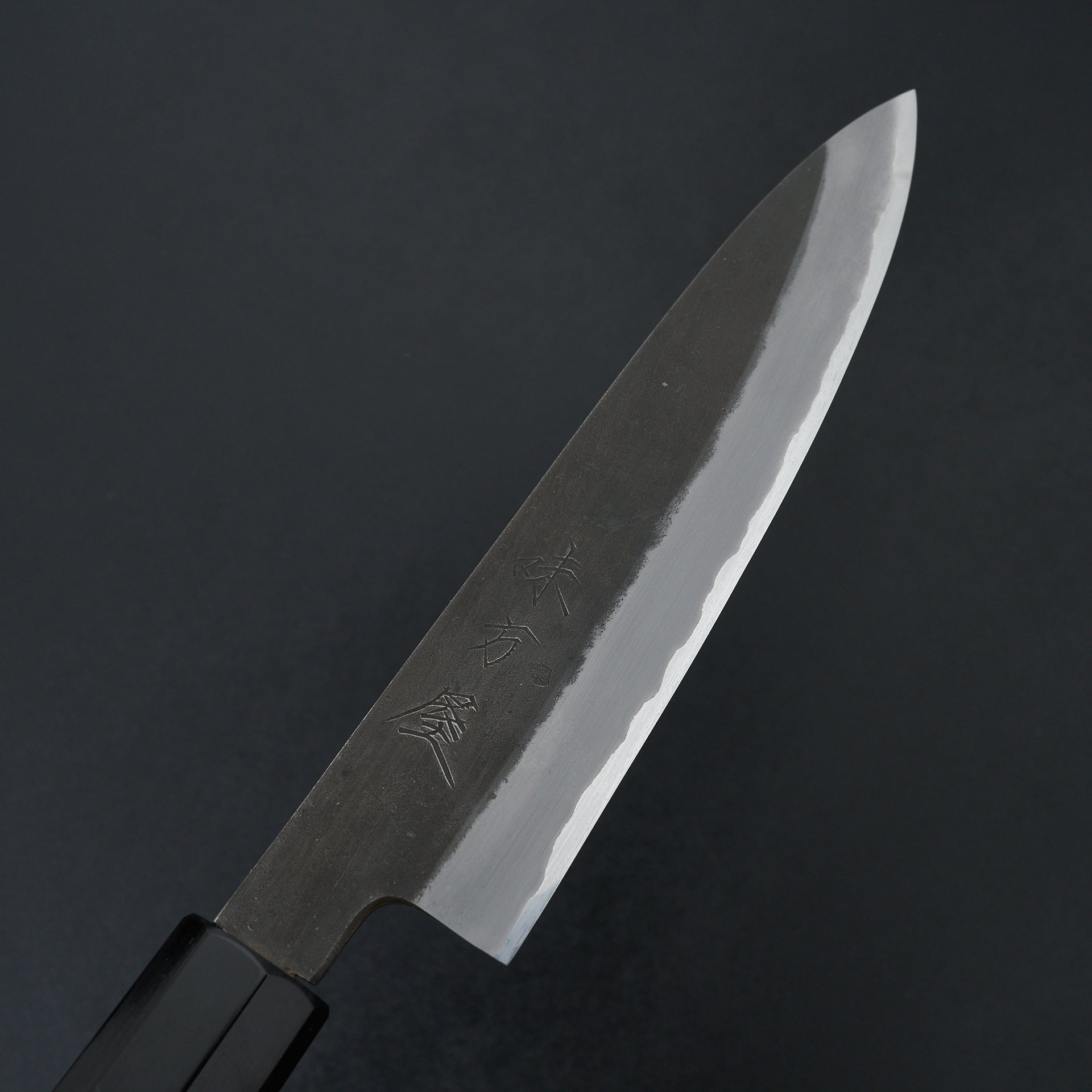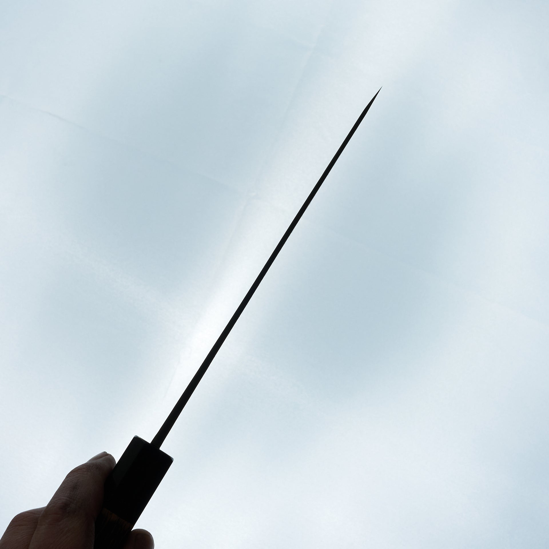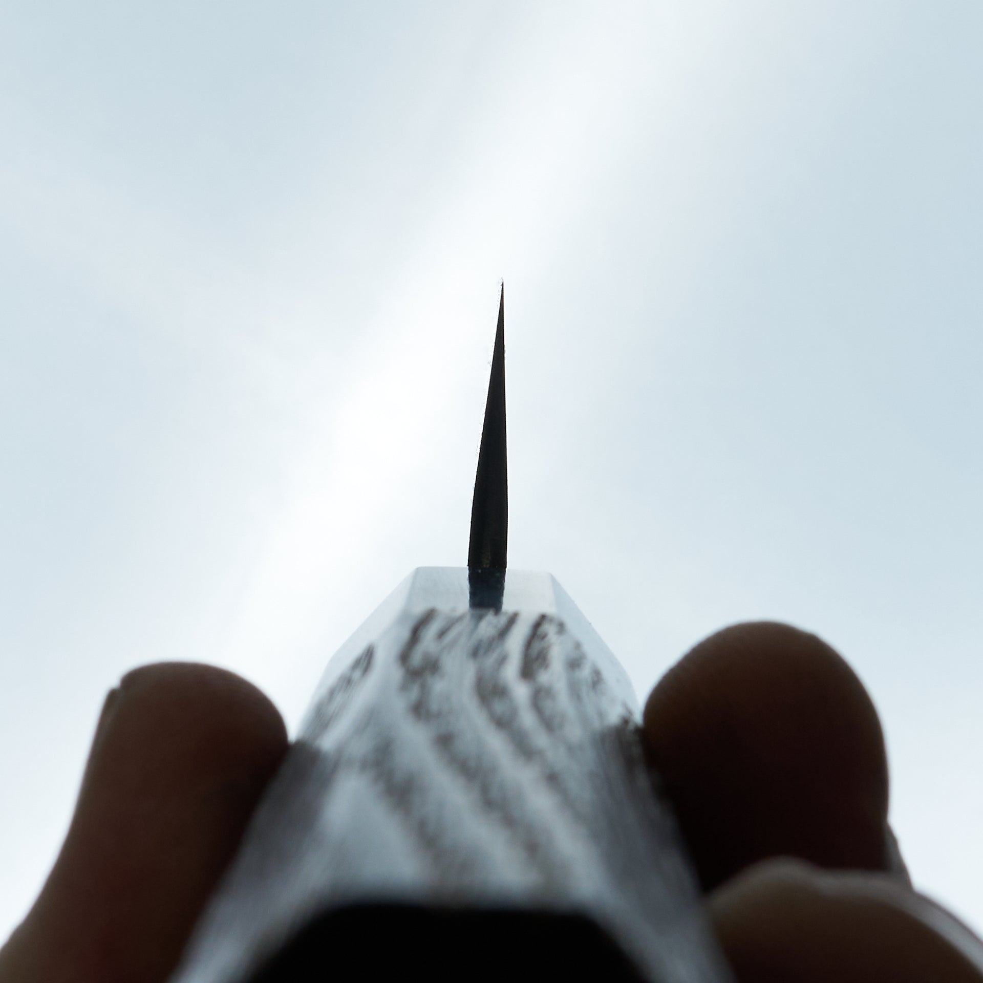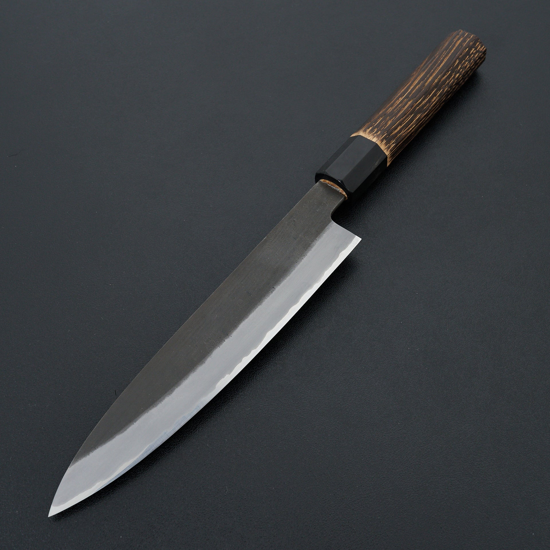 Hinoura Ajikataya is produced by 3rd generation blacksmith Mutsumi Hinoura in their family owned workshop is located in Sanjo Niigata. Hinoura knives and tools are world renowned for their traditional craftsmanship and amazing heat treatment. This series is made from shirogami (white) #2 steel and cladded in stainless steel. The blade has a nashiji finish. We have always found the grinds to be very consistent which makes transitioning to stones very easy. Fitted with high quality octagonal burnt chestnut and buffalo horn ferrule.