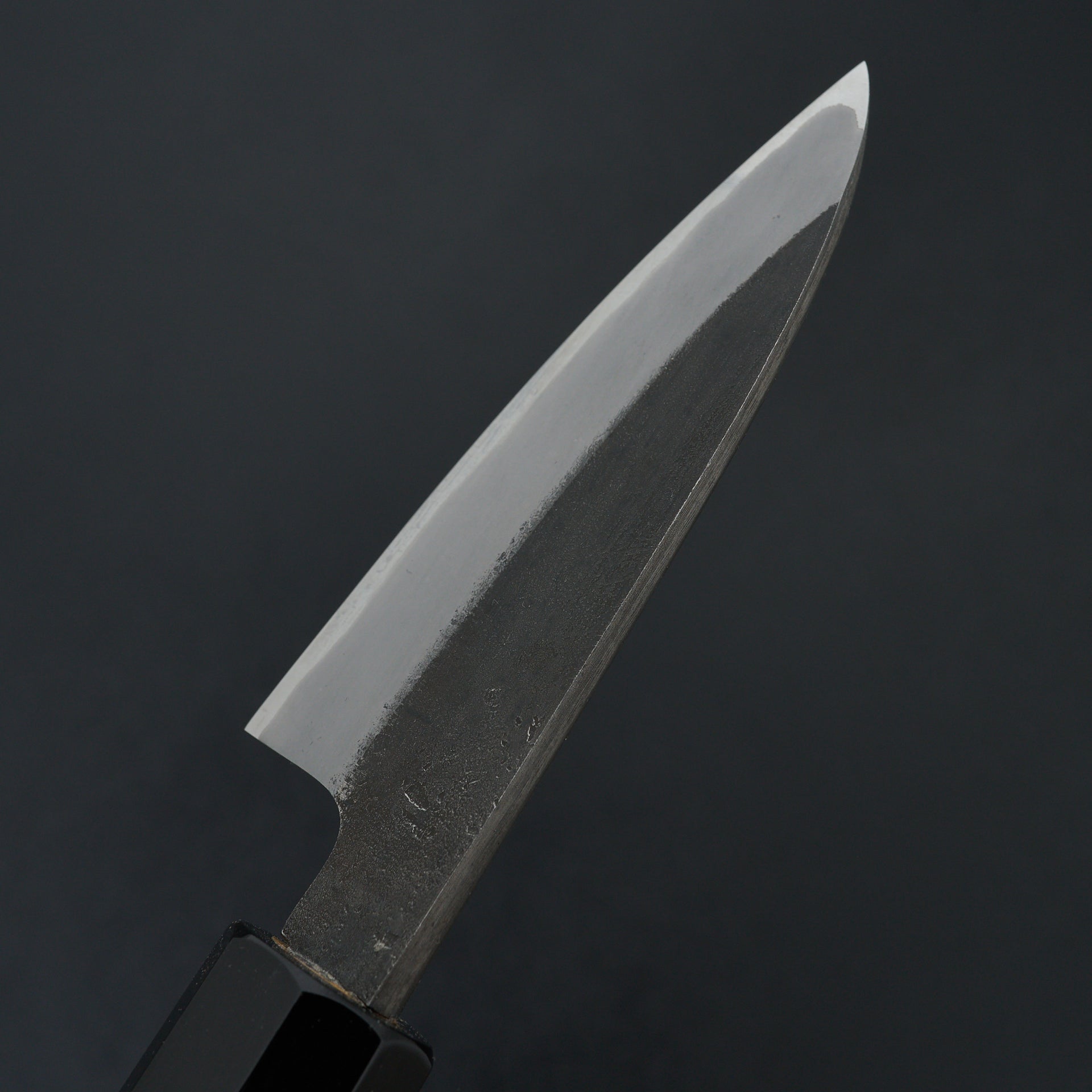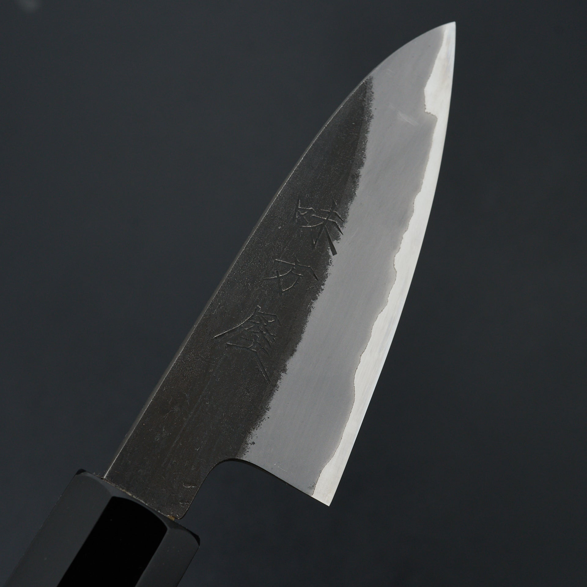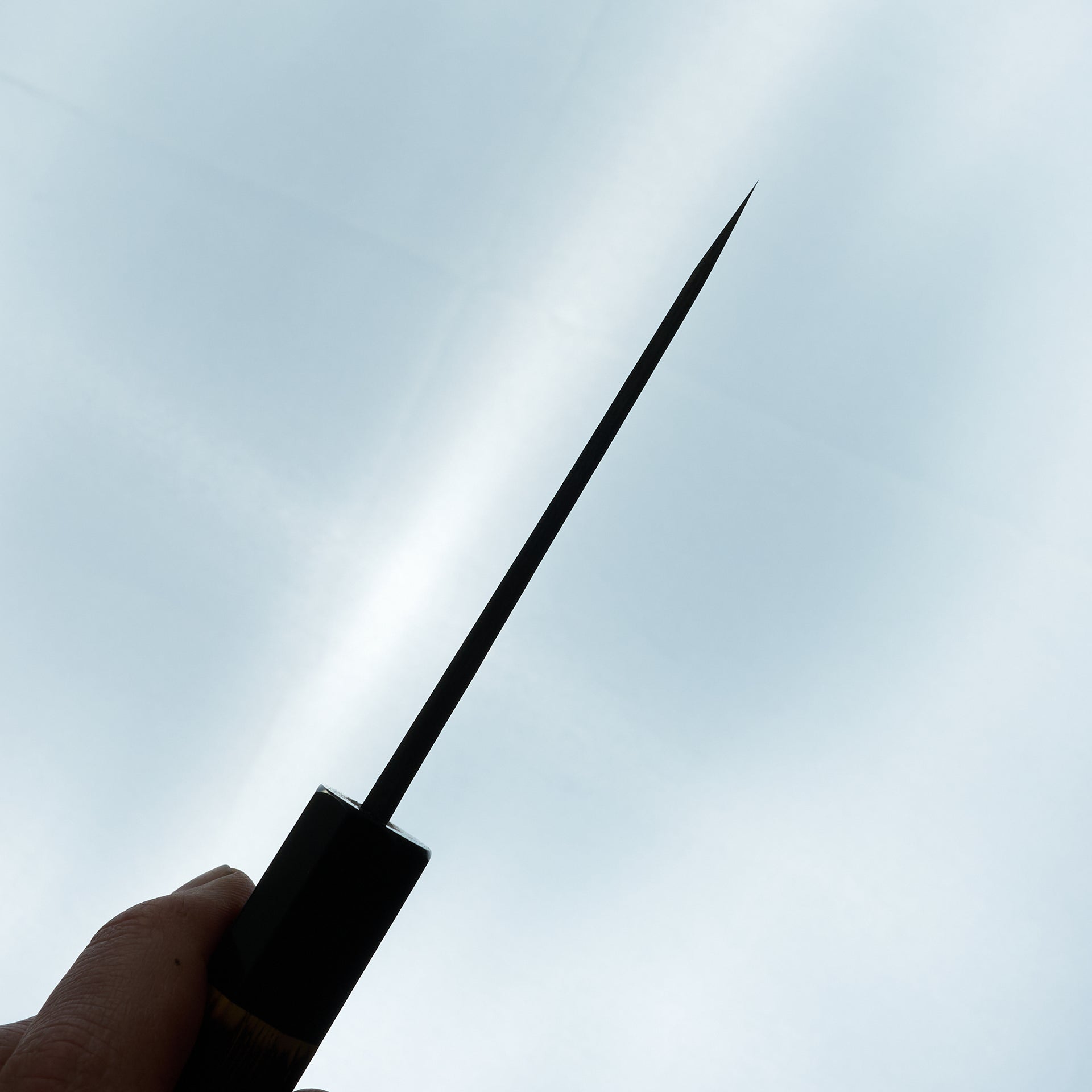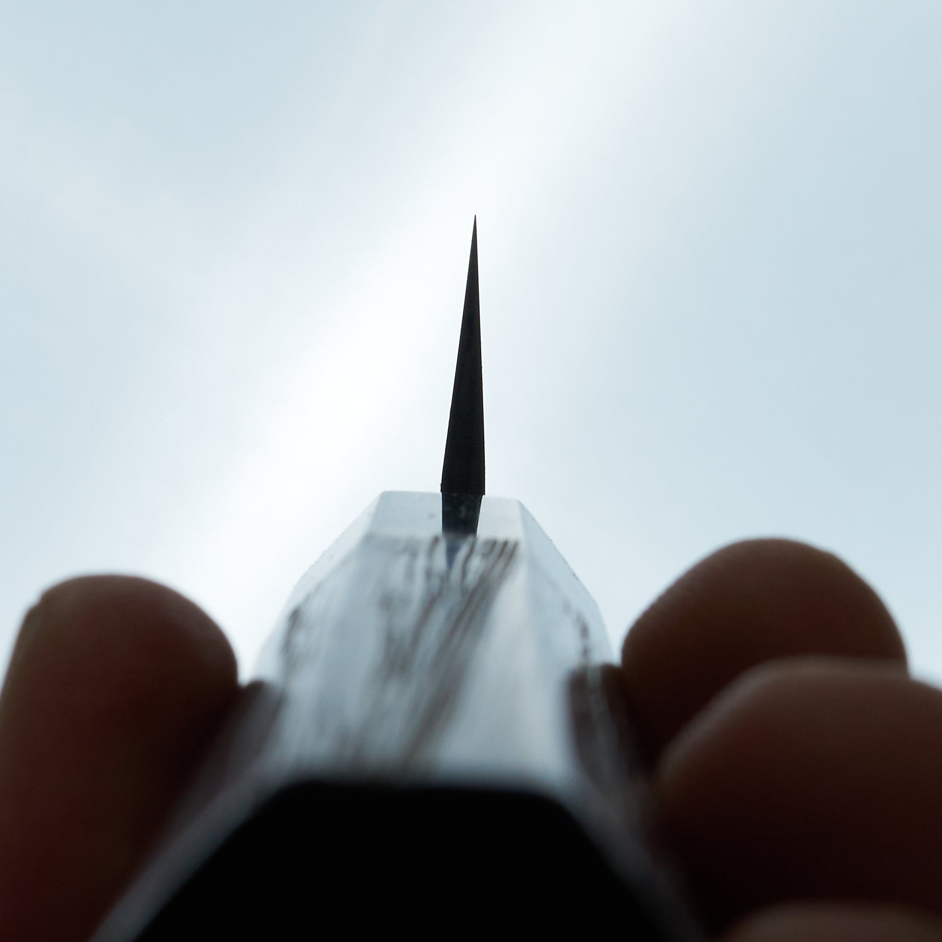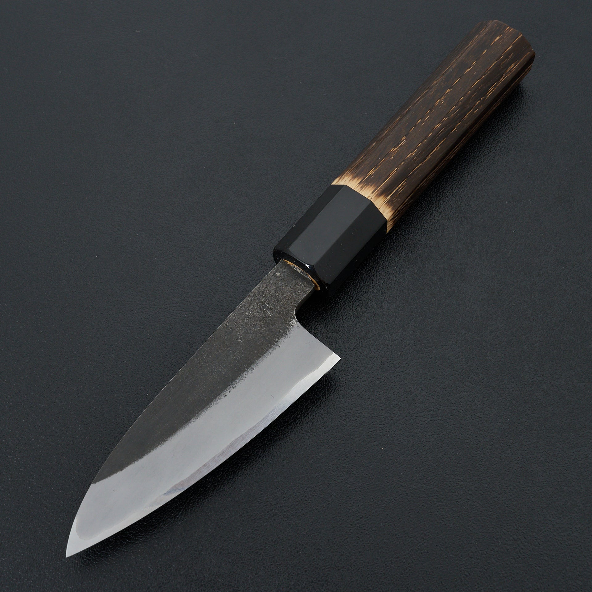 Hinoura Ajikataya is produced by 3rd generation blacksmith Mutsumi Hinoura in their family owned workshop is located in Sanjo Niigata. Hinoura knives and tools are world renowned for their traditional craftsmanship and amazing heat treatment. This series is made from shirogami (white) #2 steel and cladded in stainless steel. The blade has a nashiji finish. We have always found the grinds to be very consistent which makes transitioning to stones very easy. Fitted with high quality octagonal burnt chestnut and buffalo horn ferrule.