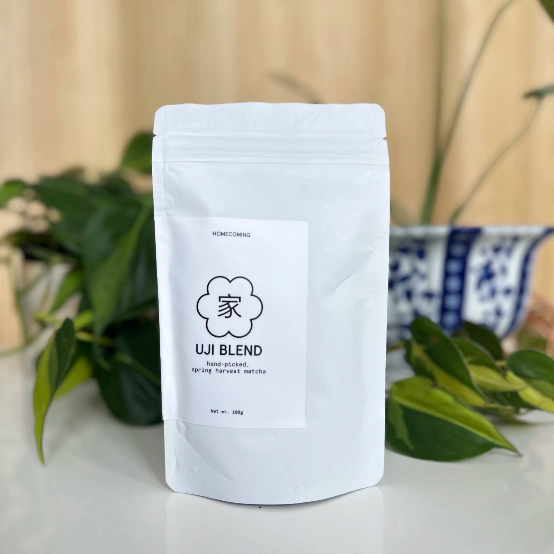 Homecoming Matcha's Uji Blend is an ode to the birthplace of Japanese matcha, and a celebration of their incredible partner, a heritage 10th-generation tea farm in the heart of the matcha capital! This matcha blend comes from hand-picked (tezumi 手摘み) leaves during the spring harvest, and is crafted to have robust depth and umami in mind to shine through milk and sweetener. A bulk bag for daily enjoyment, Uji Blend is their house favorite and go-to for lattes and creations!