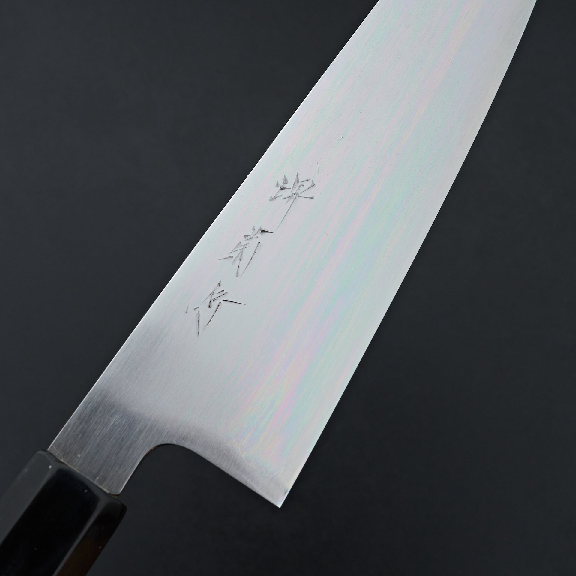 Kawamura Hamono was founded in 1926 in Sakai. Kikumori is praised for their beautiful craftsmanship utilizing traditional techniques specific to their region. Sakai Kikumori Gokujou series is forged from Shirogami 2 steel cladded in soft iron by Master Yoshikazu Tanaka. The blade has a hairline migaki finish that is simple, functional and easy to restore after use. This is a great example of a Traditional Sakai made knife with excellent fit and finish. Comes fitted with octagonal hoo wood and buffalo horn ferrule.