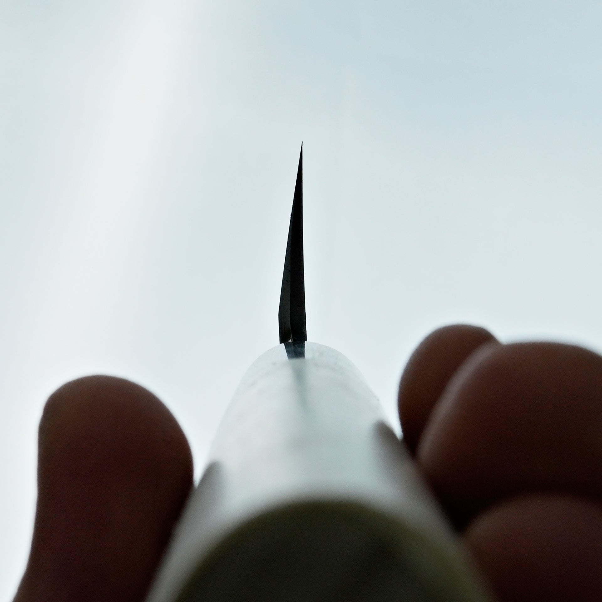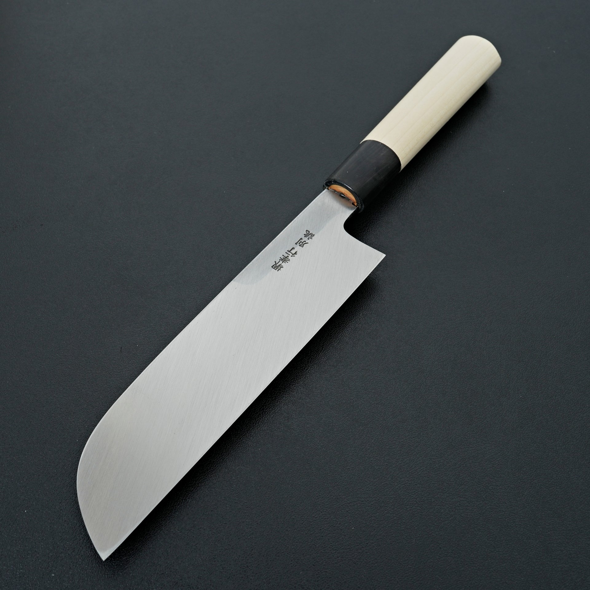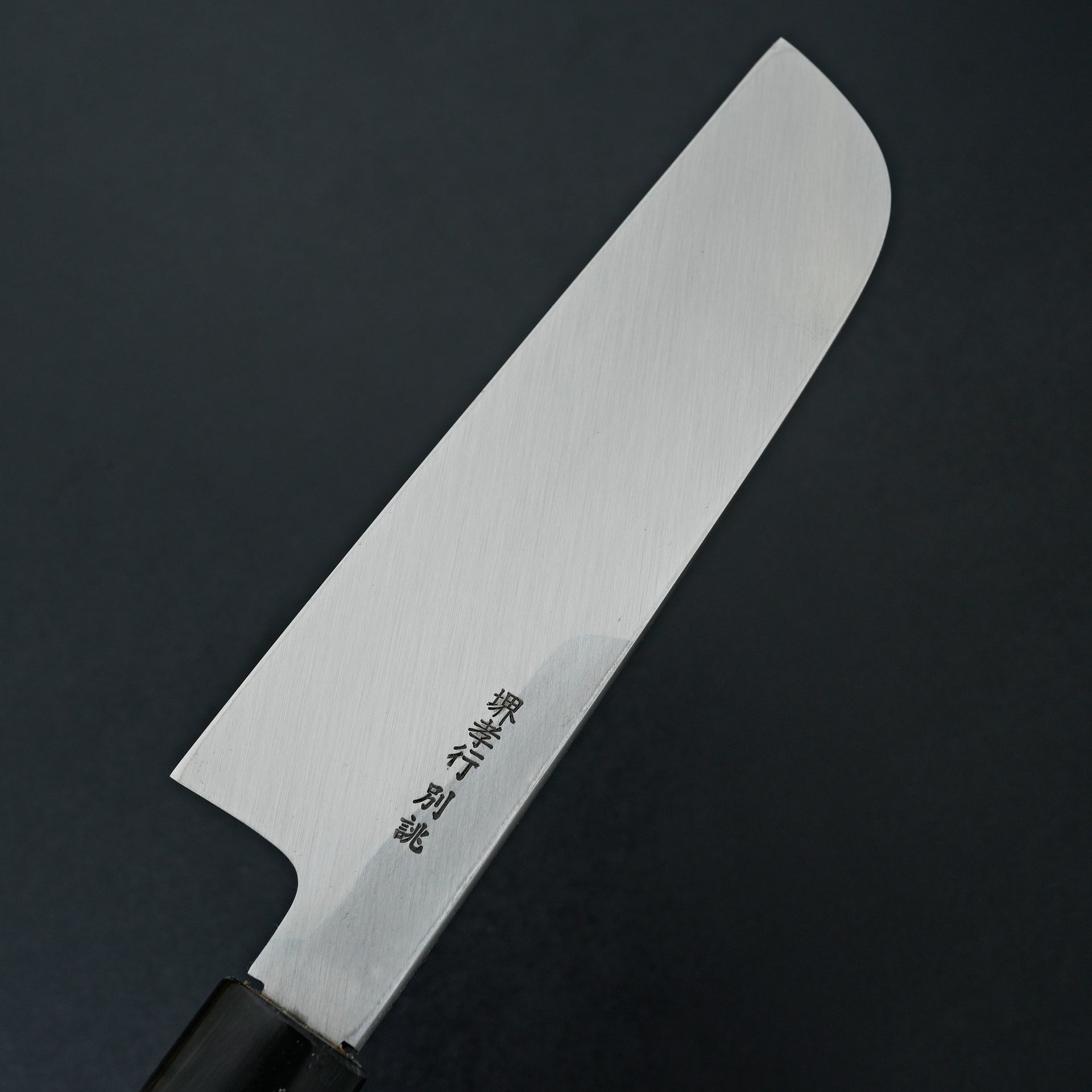 The Tokujou line is hand forged by Kenji Togashi out of Yasuki White Steel (Shirogami) #2 Steel. This is a great example of Sakai's single bevel quality. High level fit and finish on spine and choil. Very consistent grinds with minimal to no low spots that are generally found in other single bevels at this price range. Fitted with a d-shape hoo wood and buffalo horn handle.