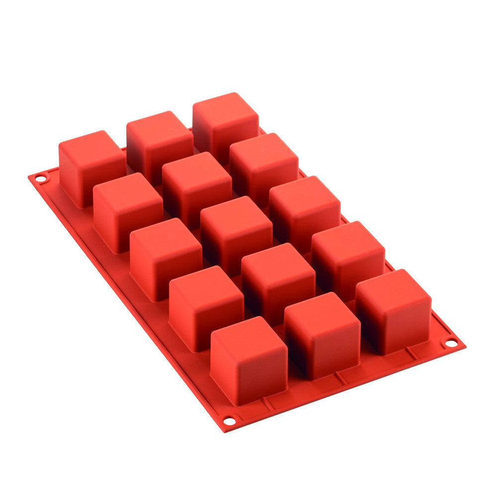 Silikomart Flexible Silicone Cube Molds features 15 baking cavities, each measuring 1.38 inches by 1.38 inches, standing 1.38 inches tall, with a 1.4 Ounce capacity Silikomart products are made of high quality liquid food-safe LSR liquid silicone, for a non-stick finish that easily releases even the stickiest of foods