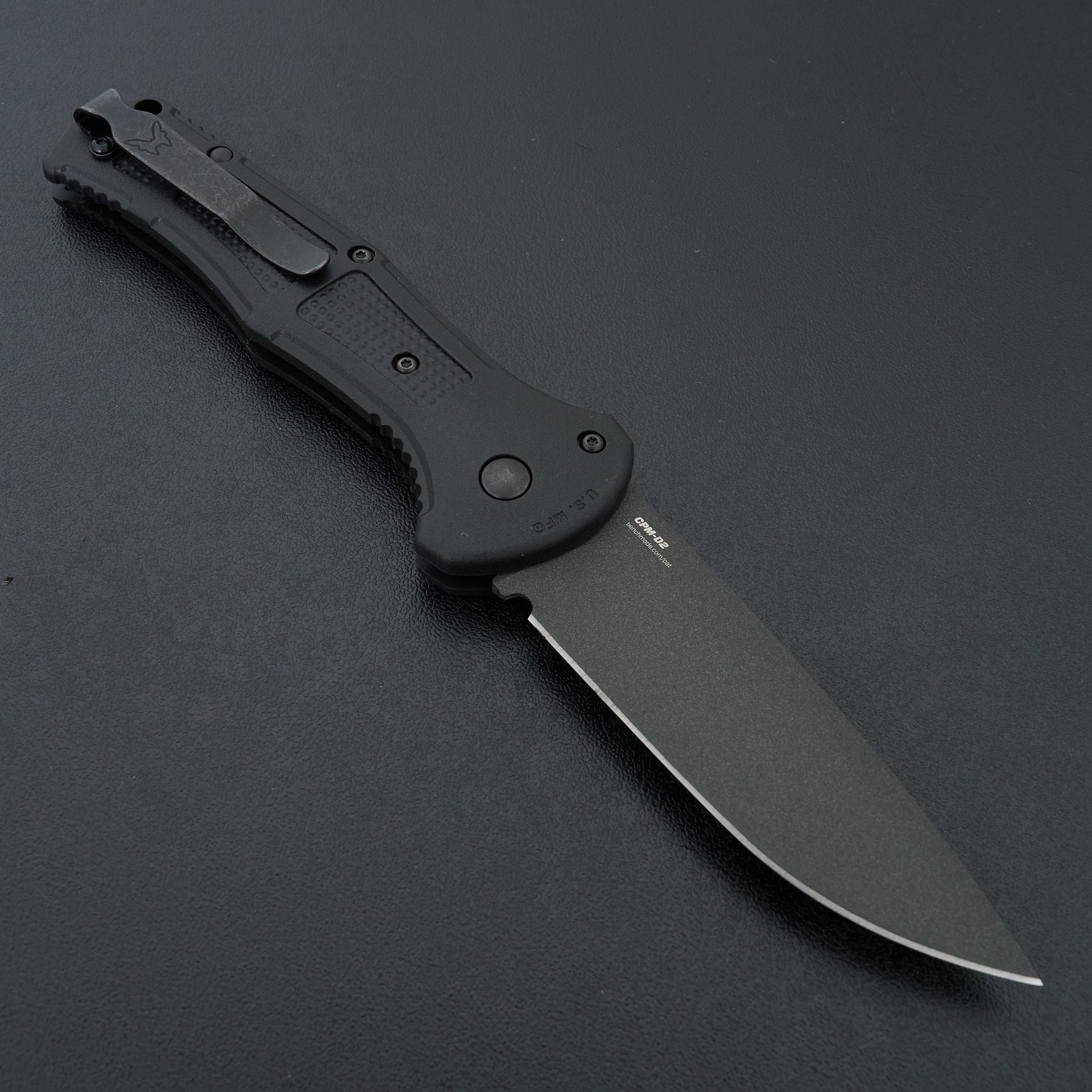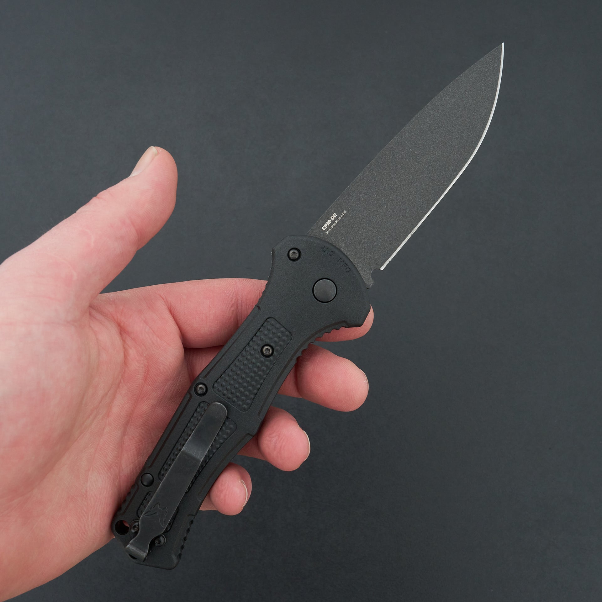 "On the heels of the explosively successful launch of the Claymore™, we heard many enthusiastic requests for a plain-edge variant, and now we're proud to present the new 9070BK Claymore™. This highly anticipated variation of an instant hit retains every crowd-pleasing feature, including the ultra-tough and laser-sharp CPM-D2 blade, robust ultralight construction, and namesake-appropriate detailing. This non serrated push-button auto fires with authority, sure to energize casual-carry and hardcore users alike.