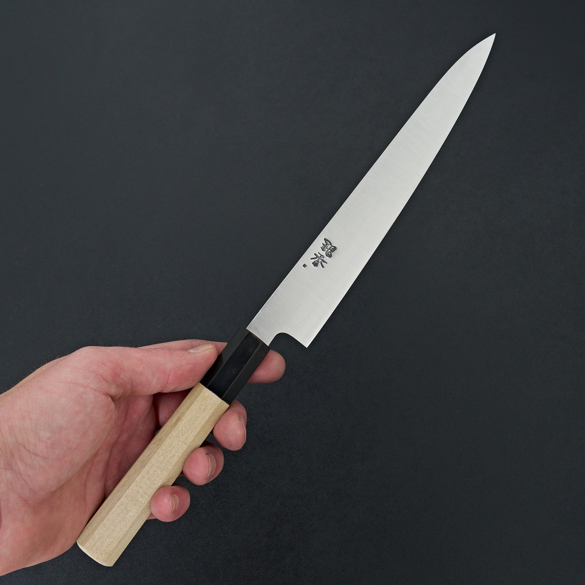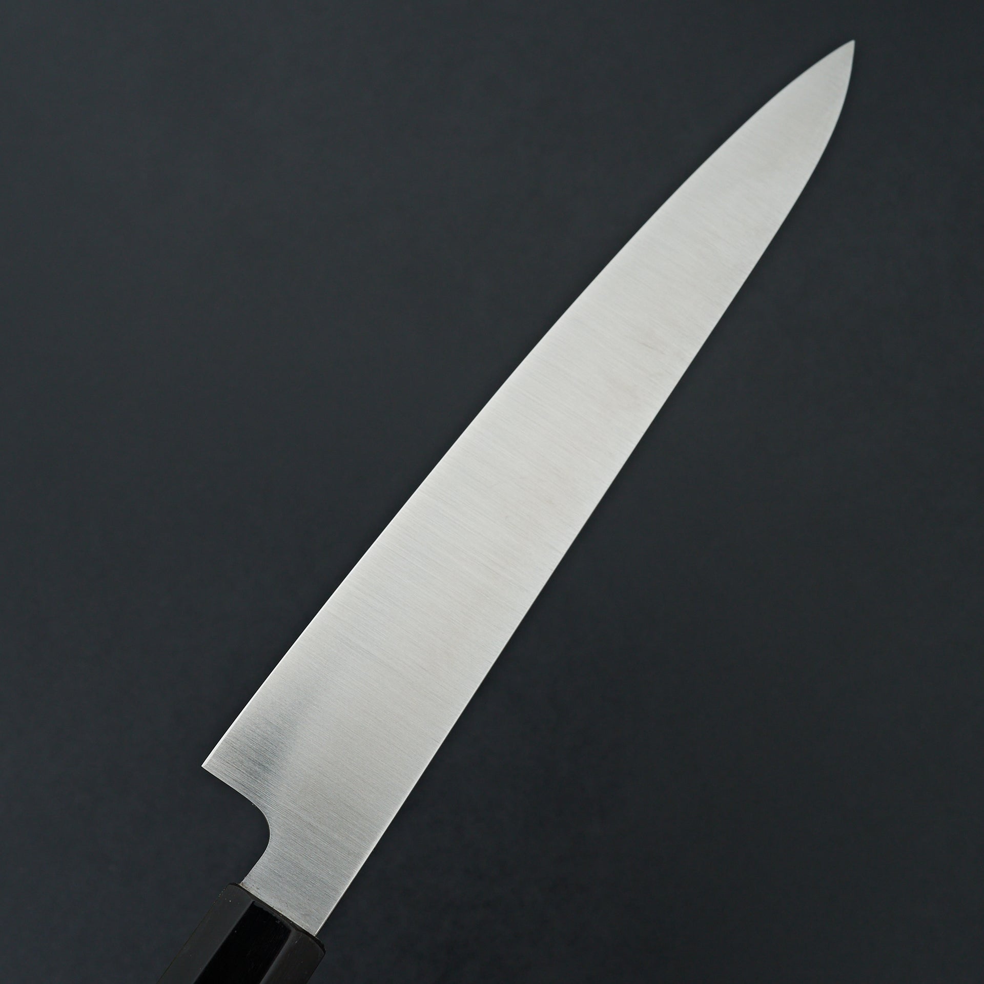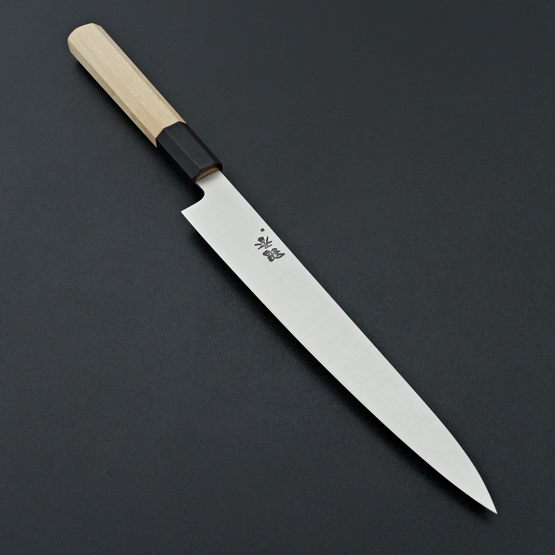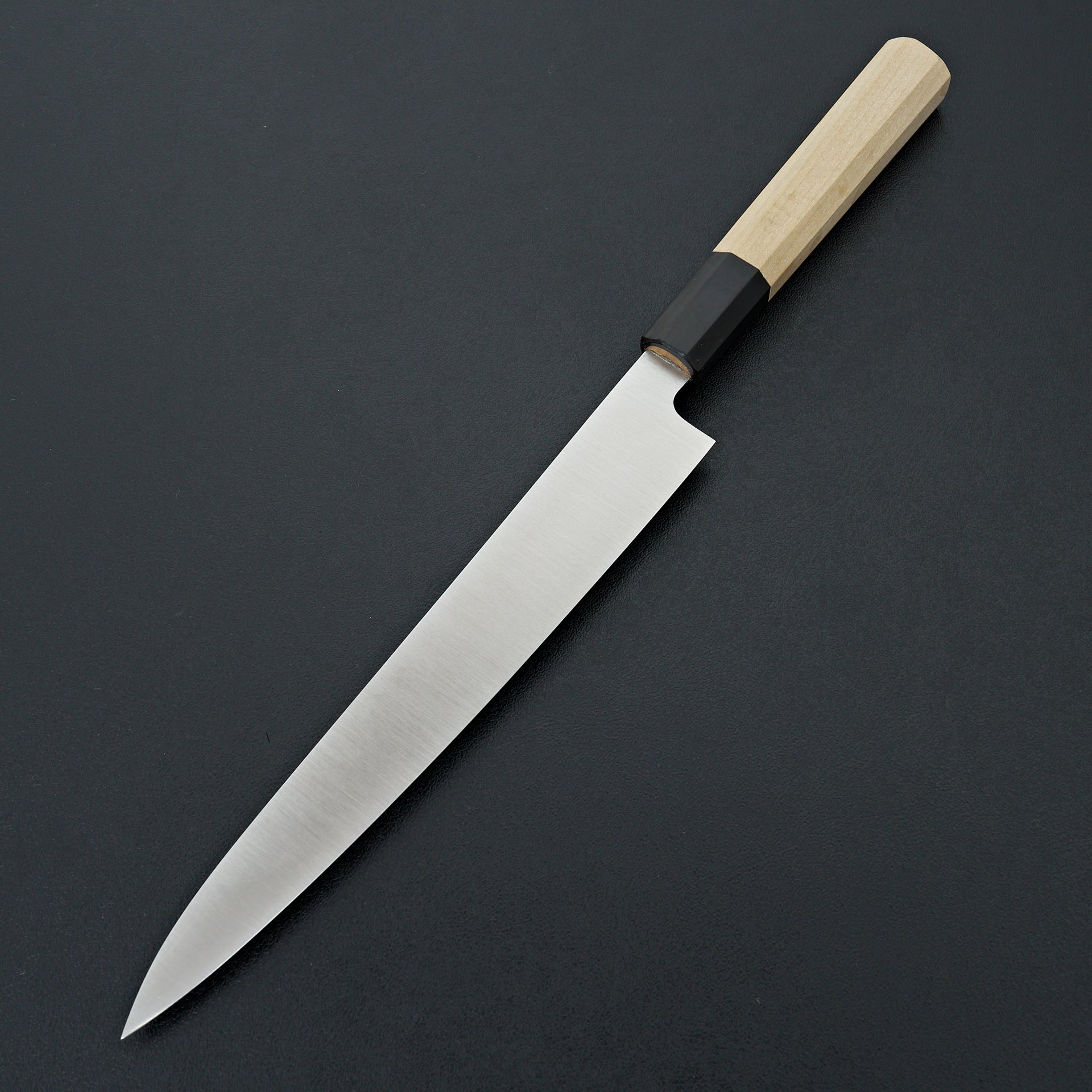 Ashi Hamono makes incredibly high performance knives out of Sakai, Japan. Their knives and known for thinness and superb geometry. These blades have a slight convexity making the cutting feel very enjoyable. Quality control is very important to Ashi. They make their blades, handles, sayas all in house.