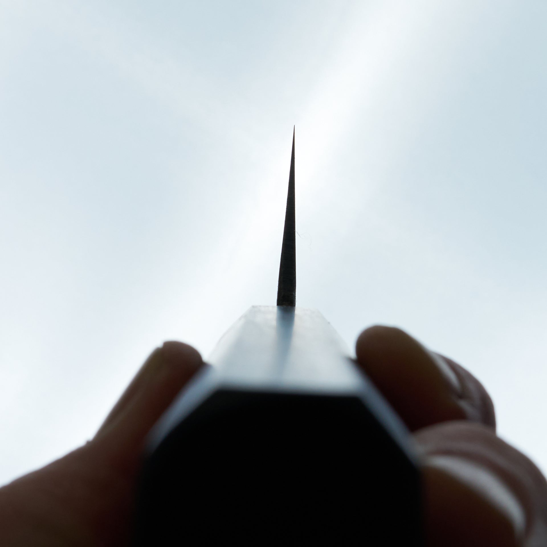 Kawamura Hamono was founded in 1926 in Sakai. Kikumori is praised for their beautiful craftsmanship utilizing traditional techniques specific to their region. Sakai Kikumori Kikuzuki is made from Shirogami #2 steel core and cladded in iron. The geometry of the kurouchi series is all forged in by the blacksmith, leaving the top of the blade with a light nashiji pattern. The handle is octagonal hoo wood with horn ferrule.