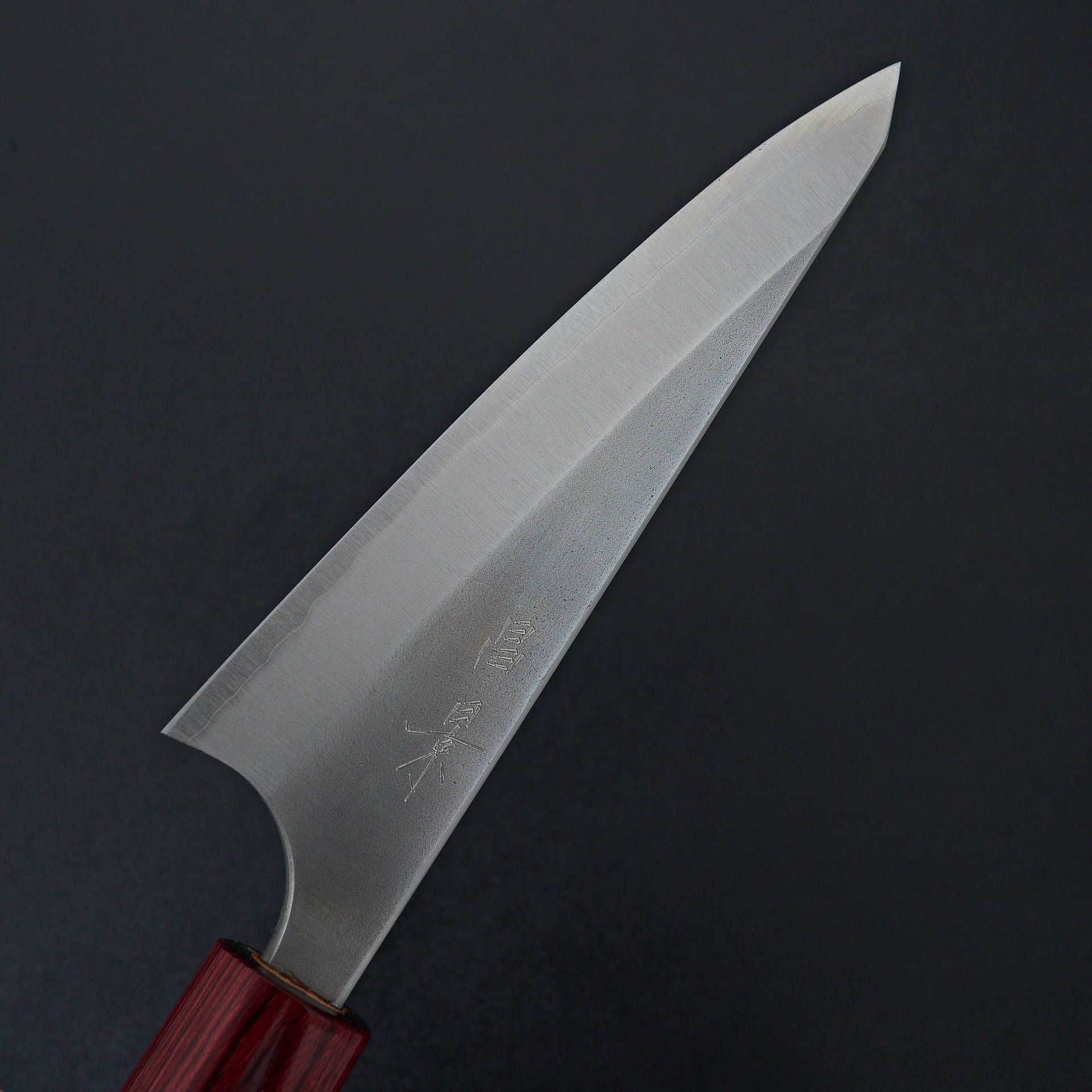 The Masakage Yuki is forged by Yoshimi Kato san out of Shirogami #2 (white) steel. Cladded with stainless steel makes these knives very low maintenance. Workhorse style grinds make this blade a perfect match for a large range of tasks. Shirogami is known for its ability to take a razor sharp edge and ease of sharpening. Hardness rated at 62-63 HRC. Handle is magnolia oval with a red pakka wood ferrule.