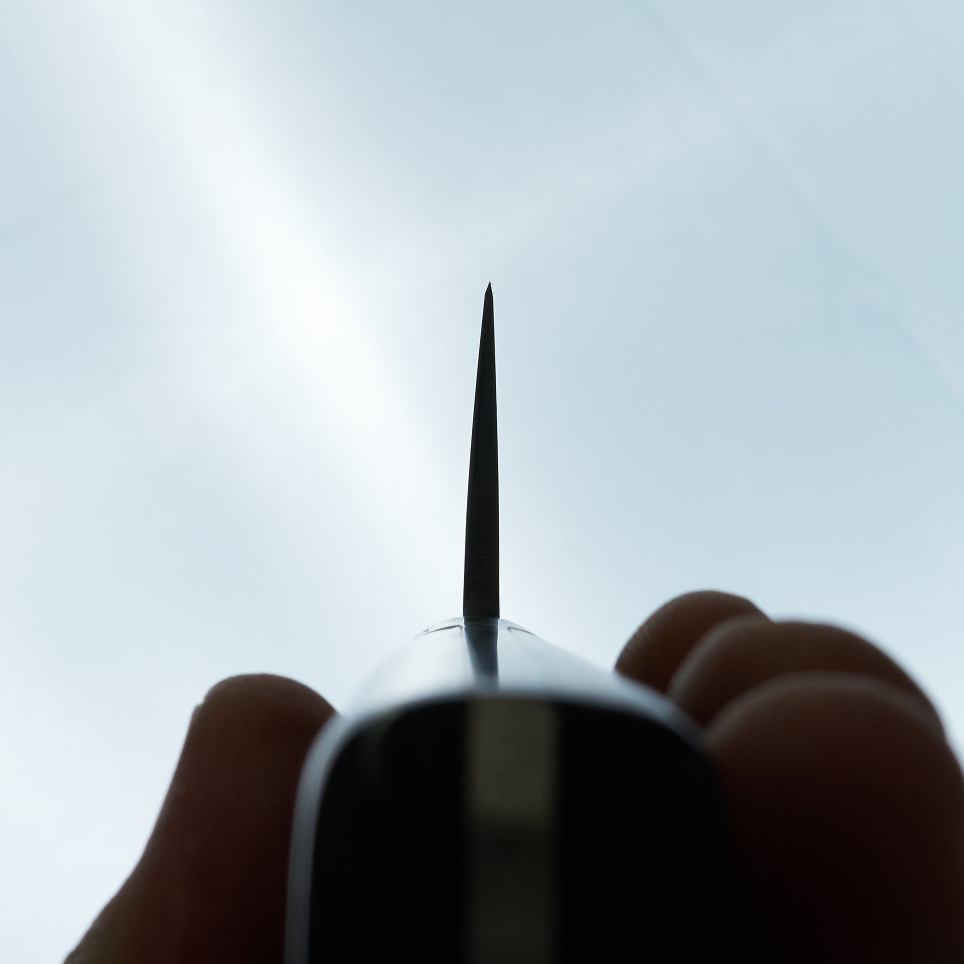 Forged in Sakai by Master Itsuo Doi using superb heat treatment and traditional techniques. Cold hammering techniques are still practiced at the Sakai Takayuki company. This strengthens and tightens the steel structure creating a tougher steel with better edge formation. The Aonikou line is forged with blue #2 steel rated at 64 HRC. The handle is ebony with horn ferrule octagonal.