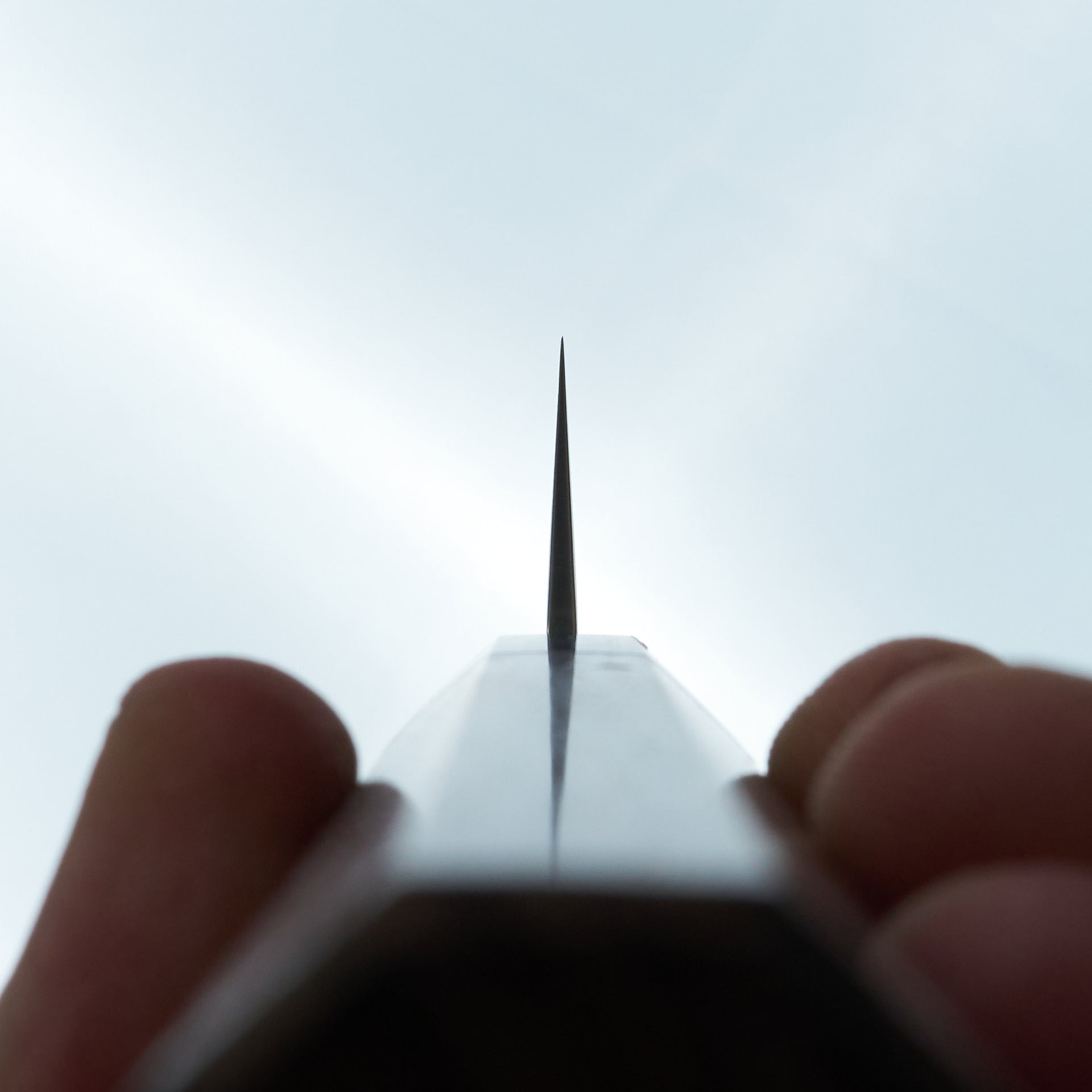 The Sakai Takayuki 33 layer damascus line is an exceptional quality knife at at great value. Forged with a core steel of VG-10 and cladded in a 33 layer stainless damascus. Rated at 60-61hrc this steel has very good toughness, edge life and ease of sharpening ability. The blade face is finished with a tsuchime (hammered) pattern that not only looks amazing but also helps with food from sticking to the blade. The octagonal handle is crafted from walnut and pakka wood.