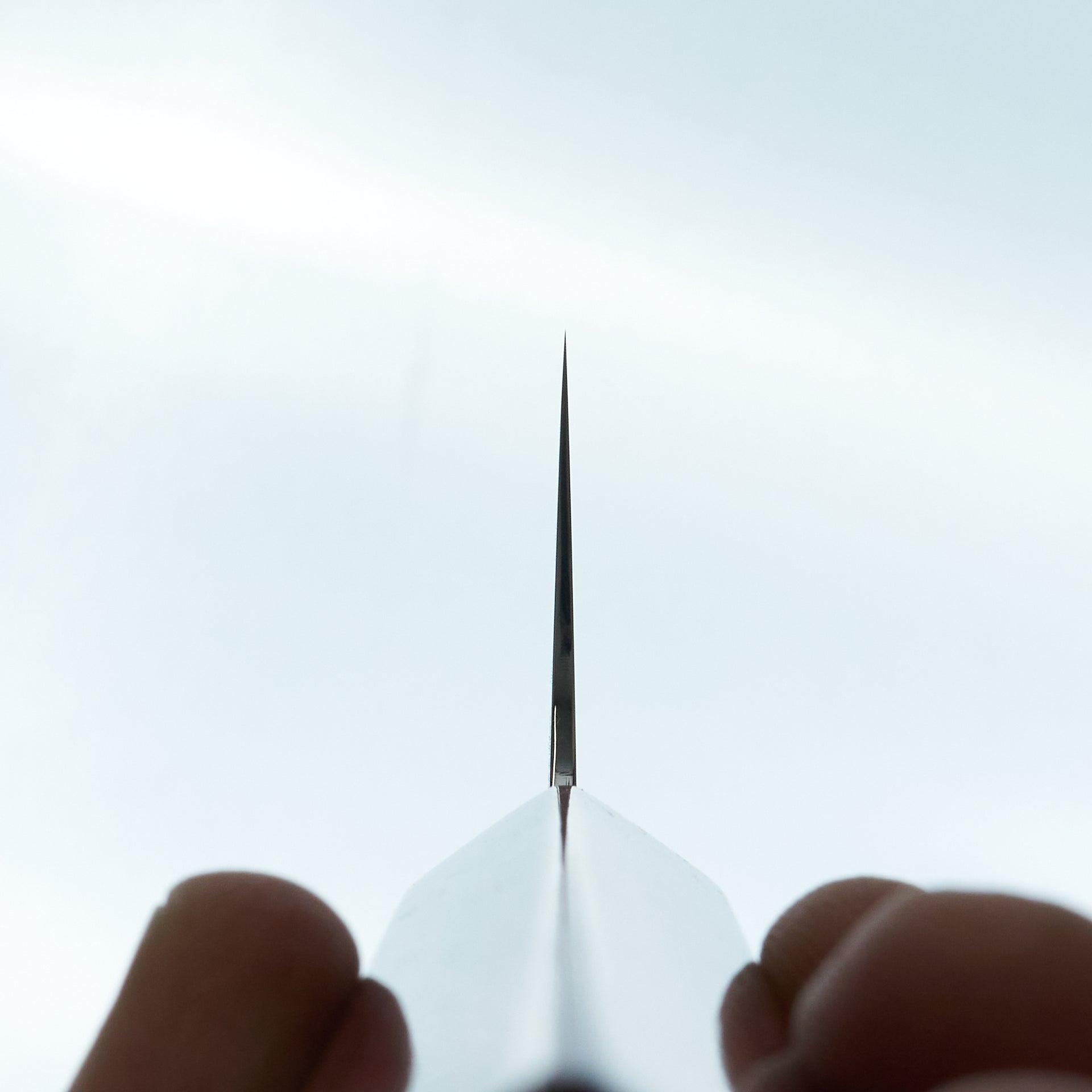 Kei Kobayashi is a young, Echizen based blacksmith and sharpener who has grown quickly in popularity for his high performance kitchen knives. This series is made using SG2/R2 powdered steel laminated in soft stainless. The blade is ground very thin for performance and the sides are lightly convexed for good food separation. The blade is fitted with an octagonal rosewood and maple handle.