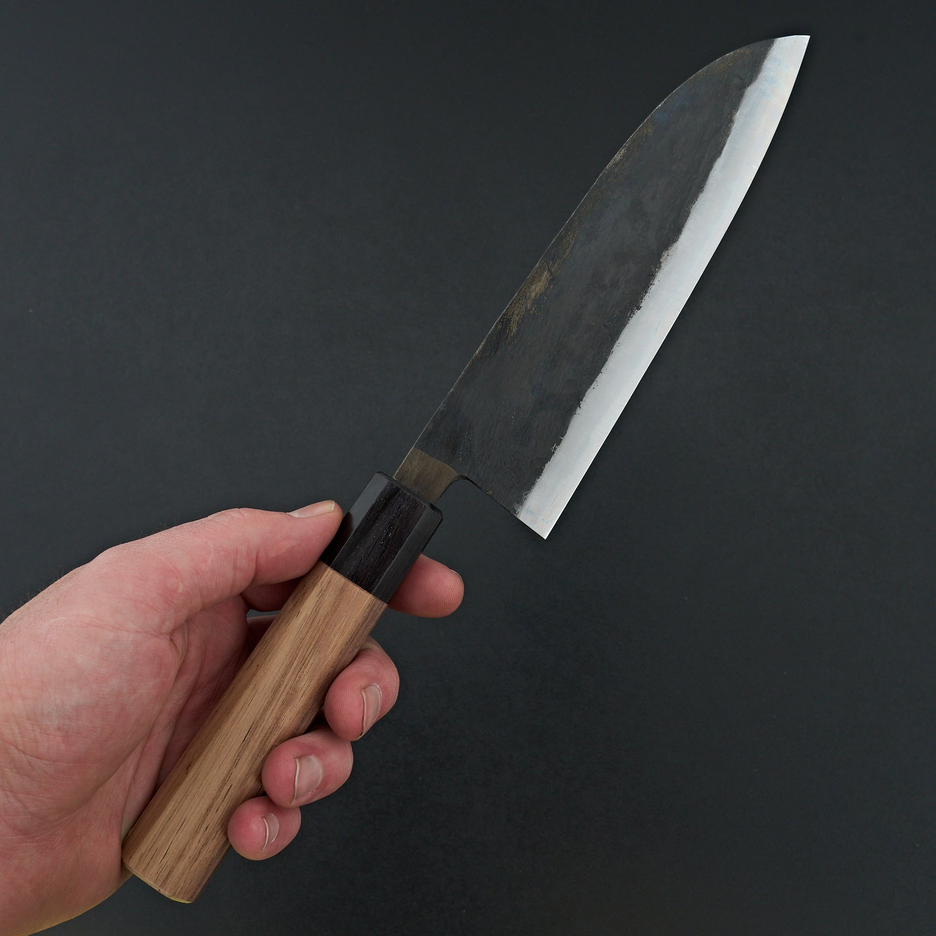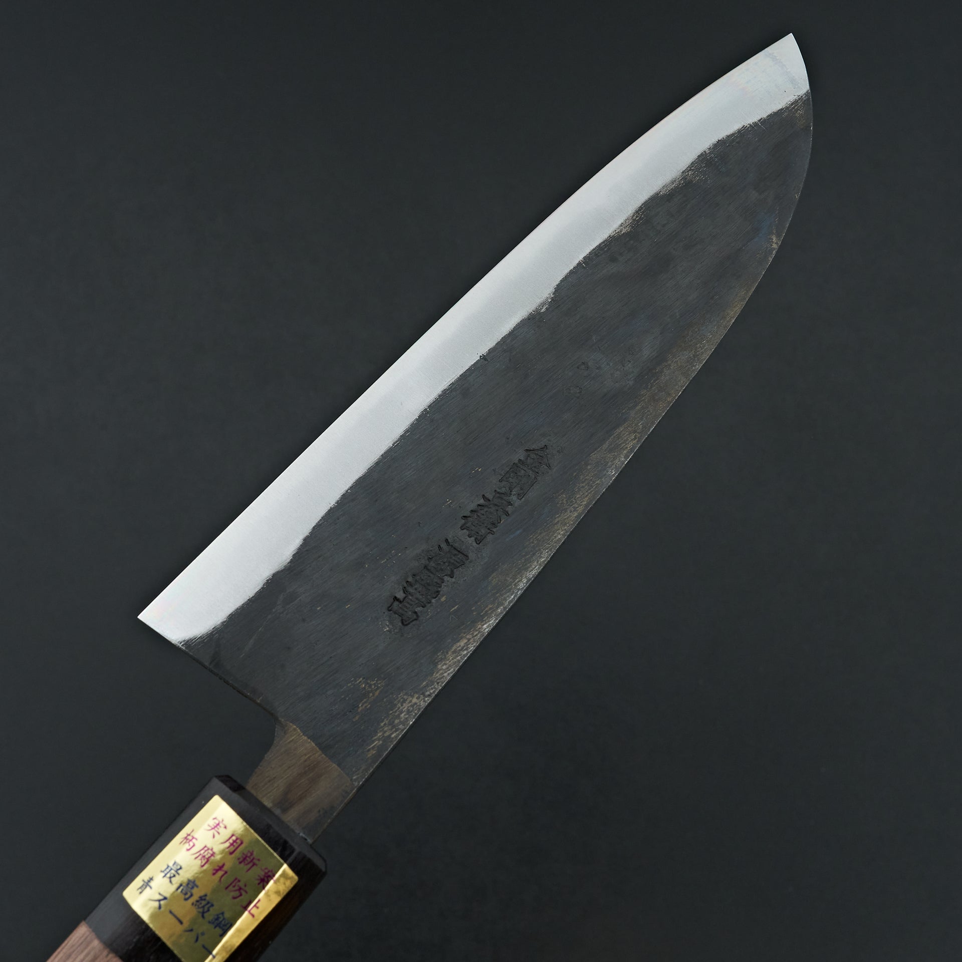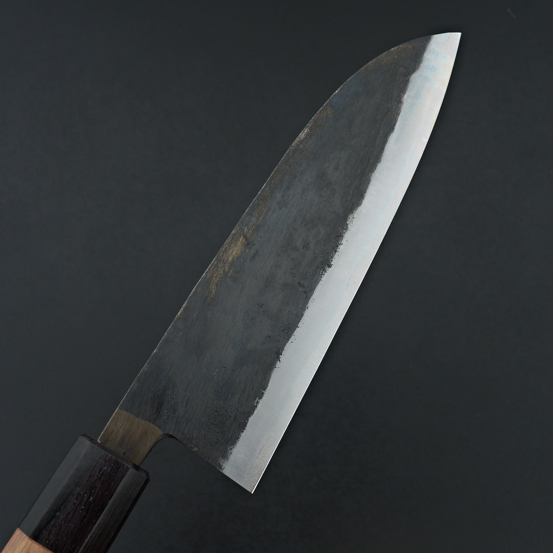 Moritaka knives today are forged with the same mentality and tradition. These knives are forged from Aogami Super steel cladded in soft iron and kurouchi finish. Moritaka forge welds a stainless tang that is a different steel from the blade to ensure longevity and hygiene of the knife for years to come.