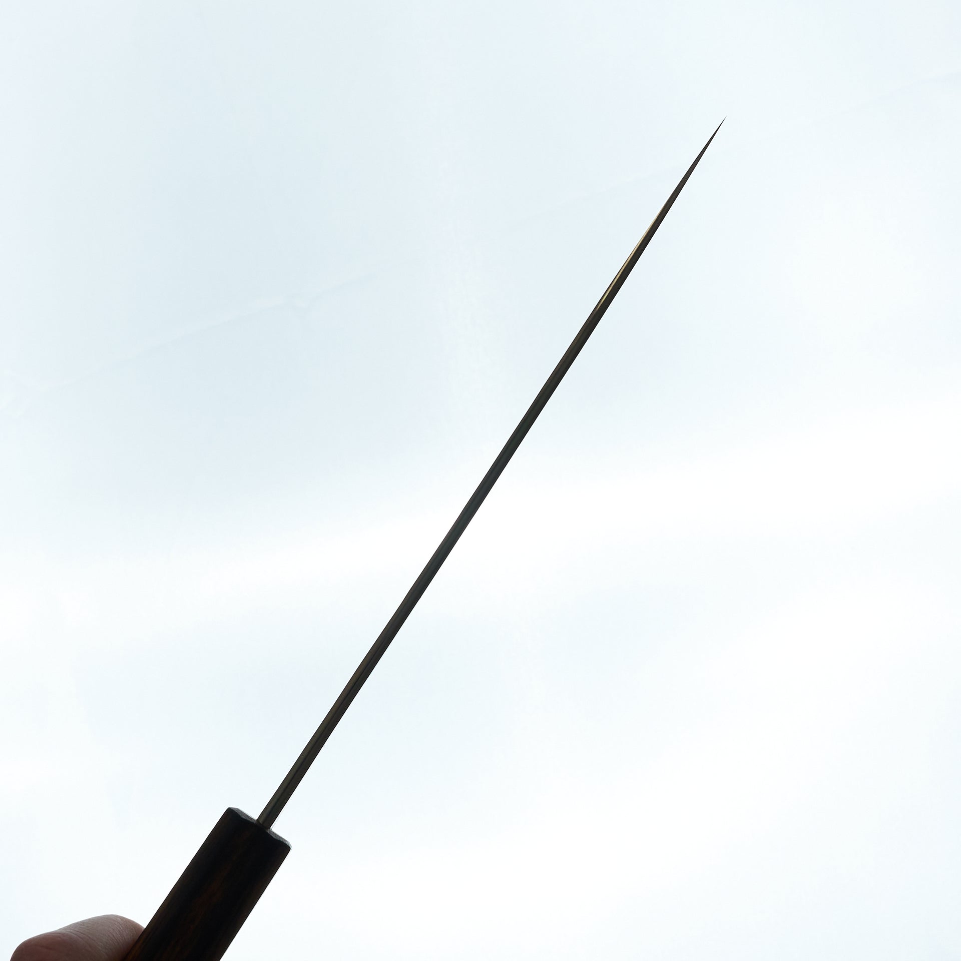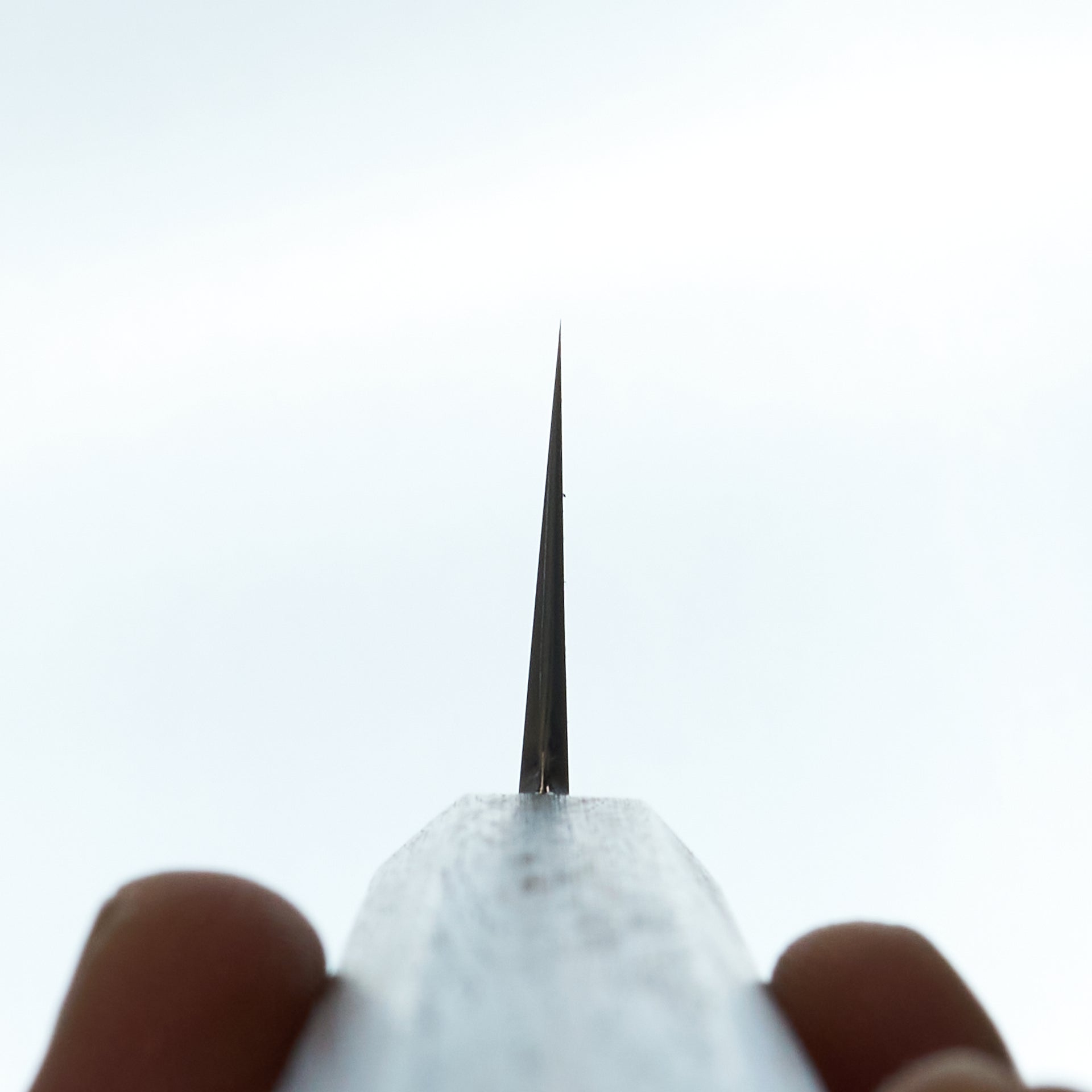 HADO knives are produced in Sakai in collaboration with master blacksmiths Yoshikazu Tanaka and Shogo Yamatsuka. HADO knives are sharpened by in house sharpener Maruyama-san who utilizes a wide style grind that has great symmetry and consistency. The fit and finish on all of HADO knives is superb with no detail spared.