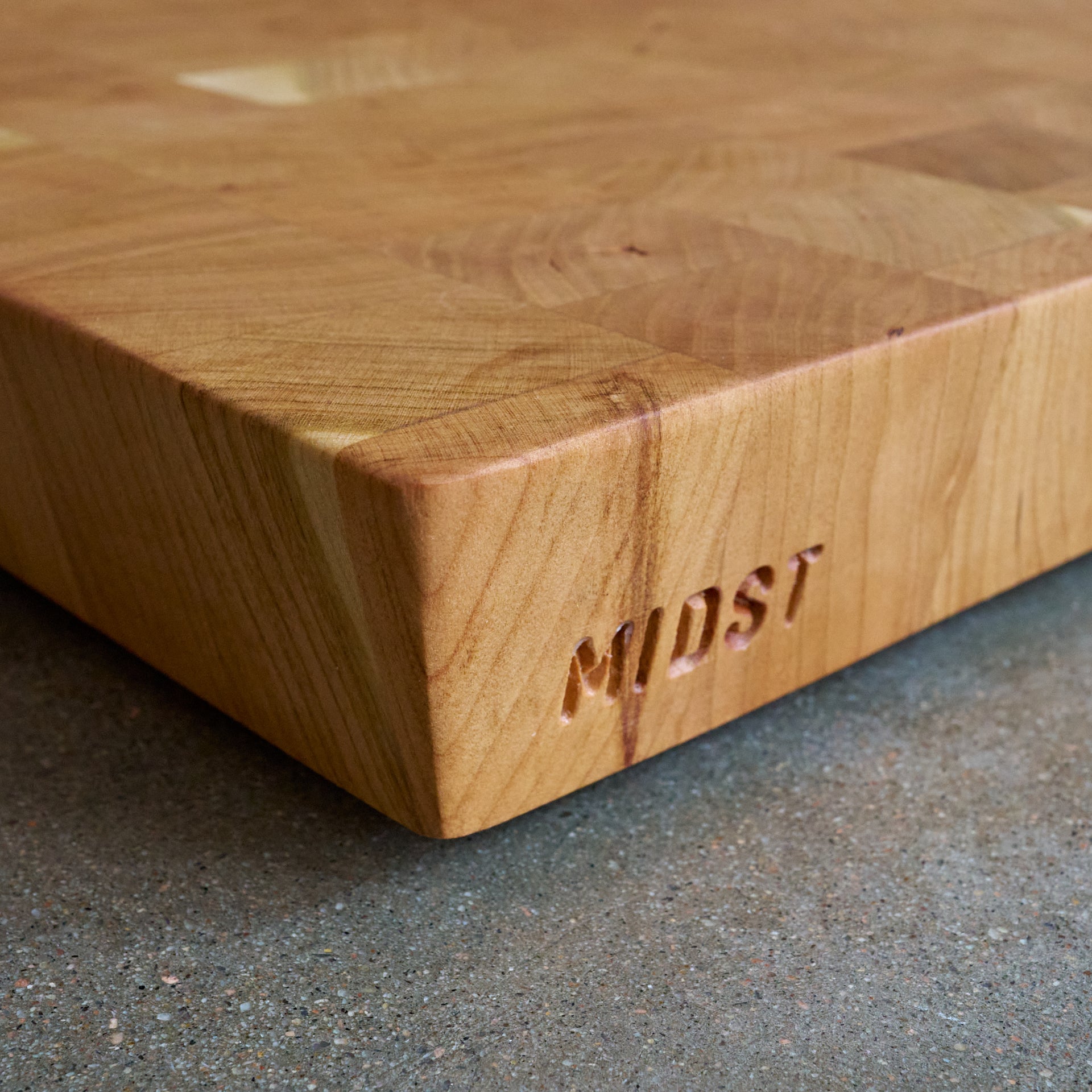 MIDST end grain cutting boards are made by a small professional woodshop, headed by Kent Townsend located in Salida, CO. These boards take a simple and very functional approach to the end grain board using Colorado stable woods. For users living in CO, ordering end grain from more humid areas can result in splitting over time. Getting a Colorado made board will last a lifetime with good care, which Kent personally guarantees.