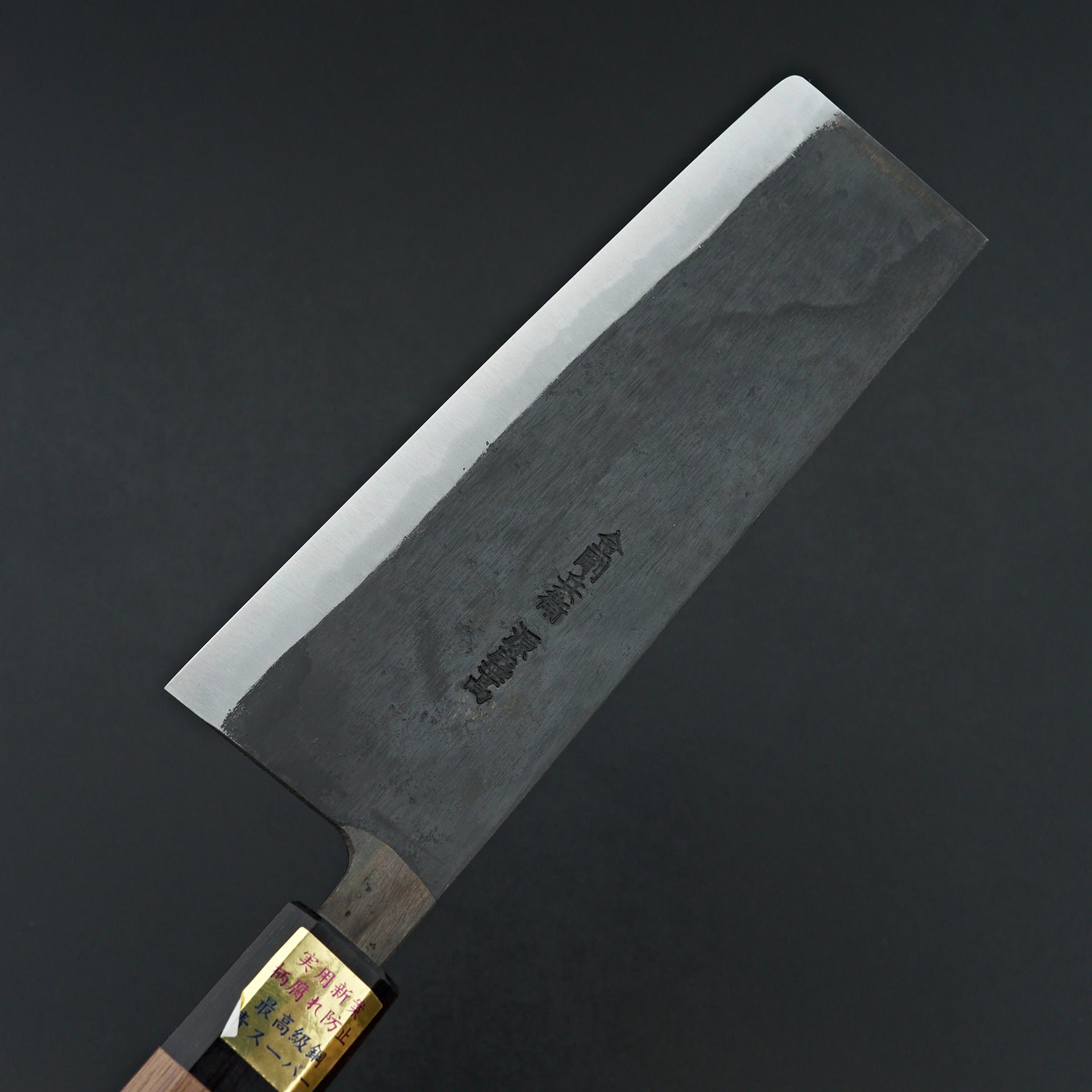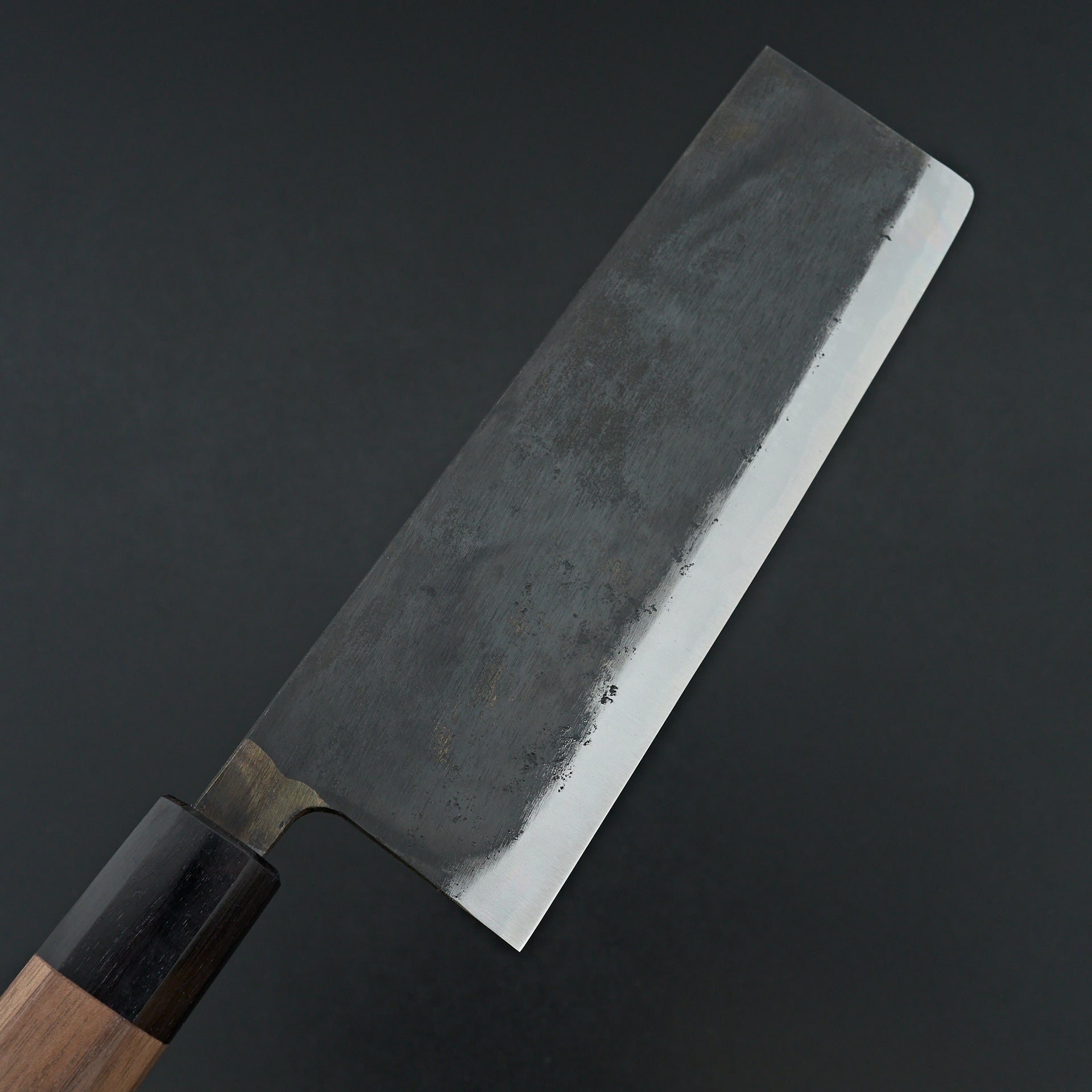 Moritaka knives today are forged with the same mentality and tradition. These knives are forged from Aogami Super steel cladded in soft iron and kurouchi finish. Moritaka forge welds a stainless tang that is a different steel from the blade to ensure longevity and hygiene of the knife for years to come.